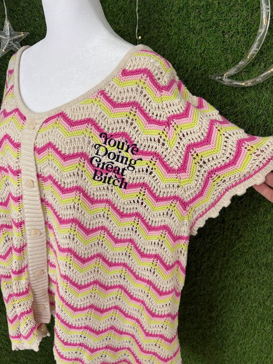 You're Doing Great Crochet Sleeveless Button Up 4XL