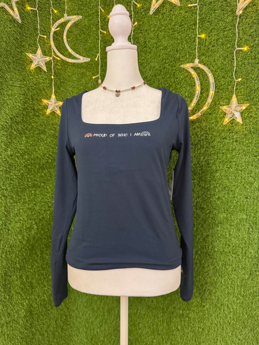 Proud of Who I Am Navy Cropped Long Sleeve L