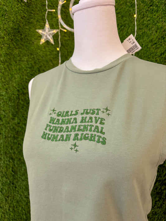 Girls Just Want Fundemental Rights Green Tank Top L