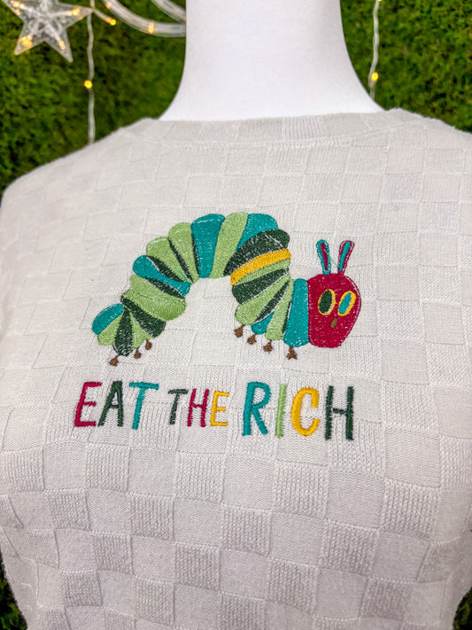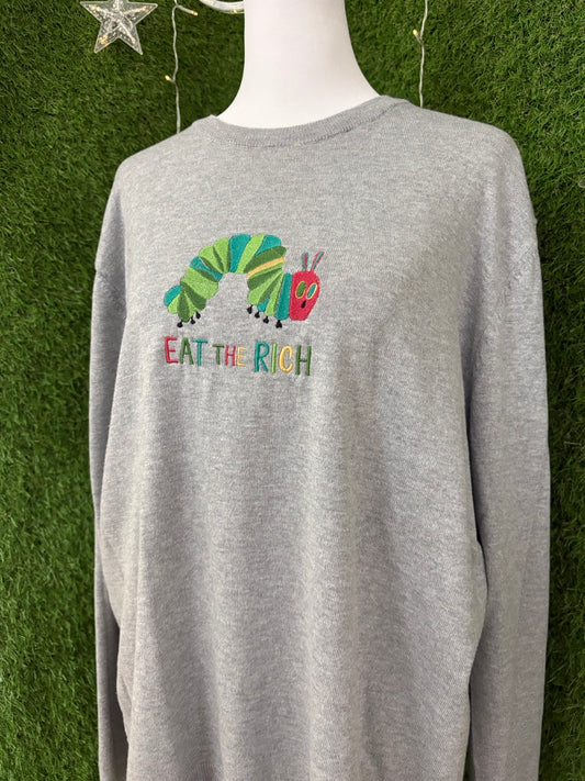 Eat the Rich Caterpillar Grey Long Sleeve Sweater L