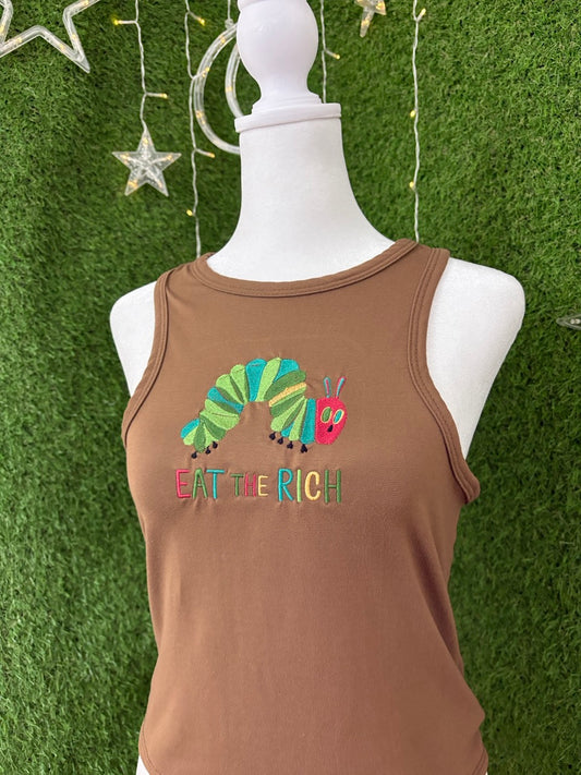 Eat the Rich Caterpillar Brown Tank Top L