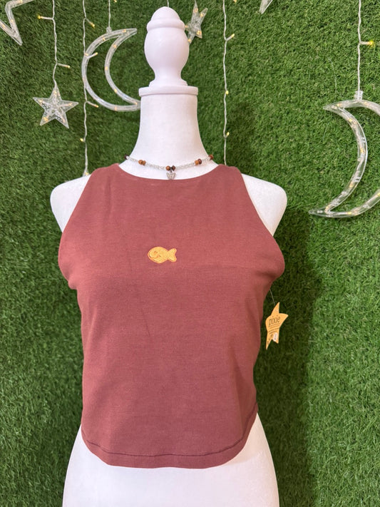 Sold outGoldfish Cropped Halter Brown Tank L