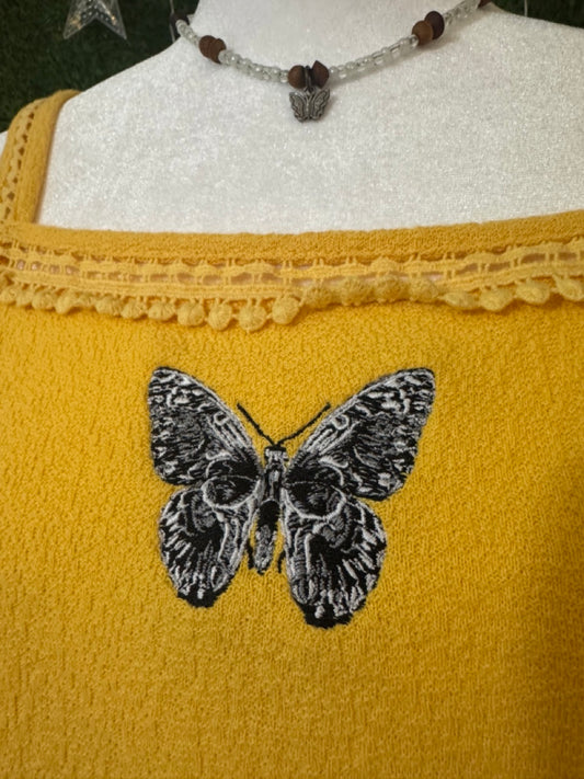 Sold outSkull Butterfly Yellow Tank L