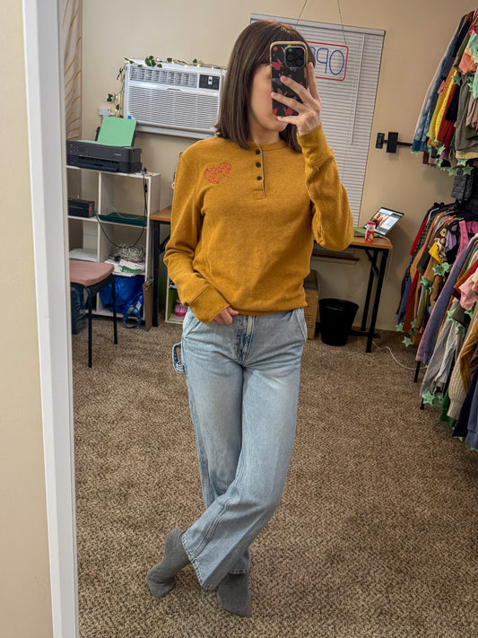 Holiday Heart Thermal Button Up Long Sleeve S