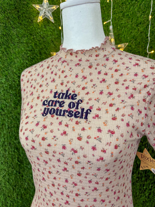 Take Care of Yourself Floral Ribbed Top S
