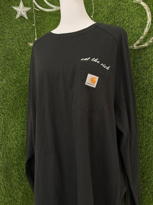 Eat the Rich Black Long Sleeve Pocket Tee 2XL