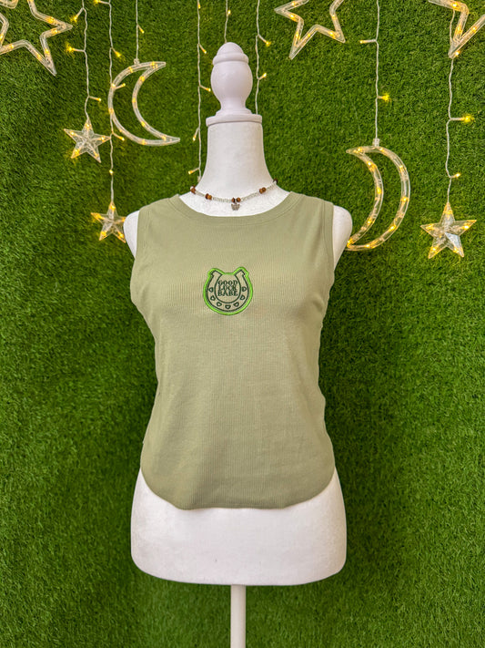 Sold outGood Luck Babe Sage Cropped Tank XL