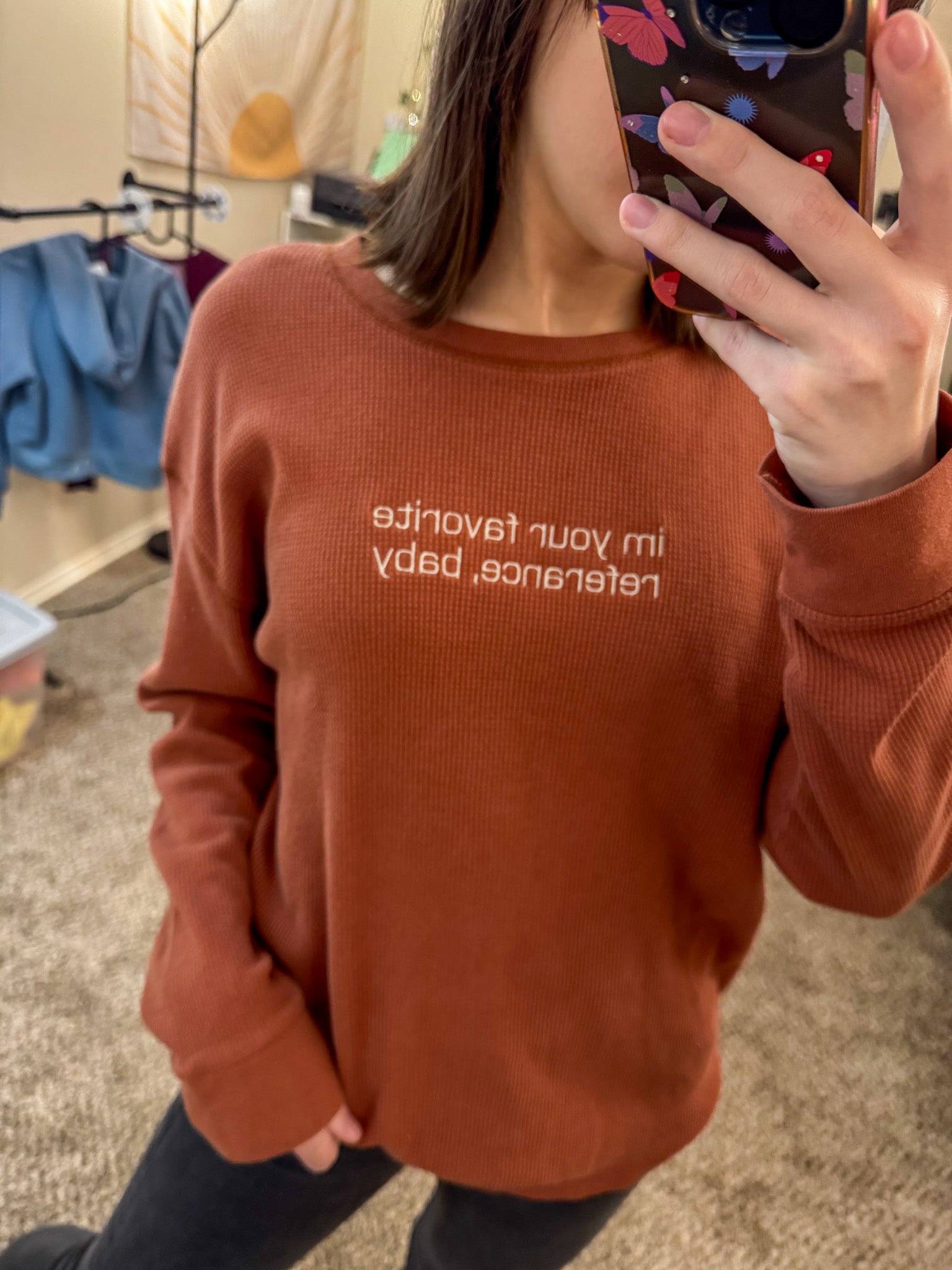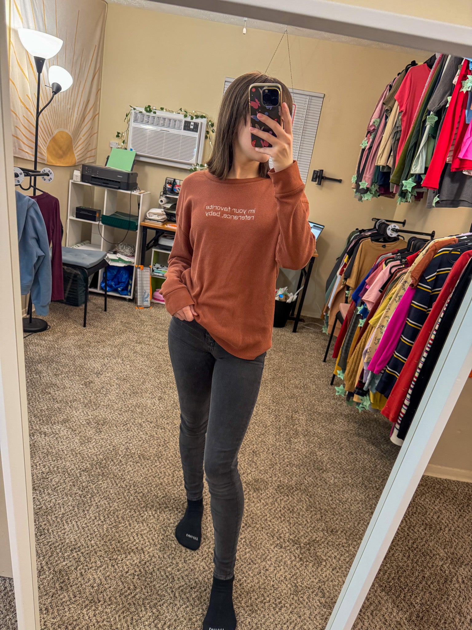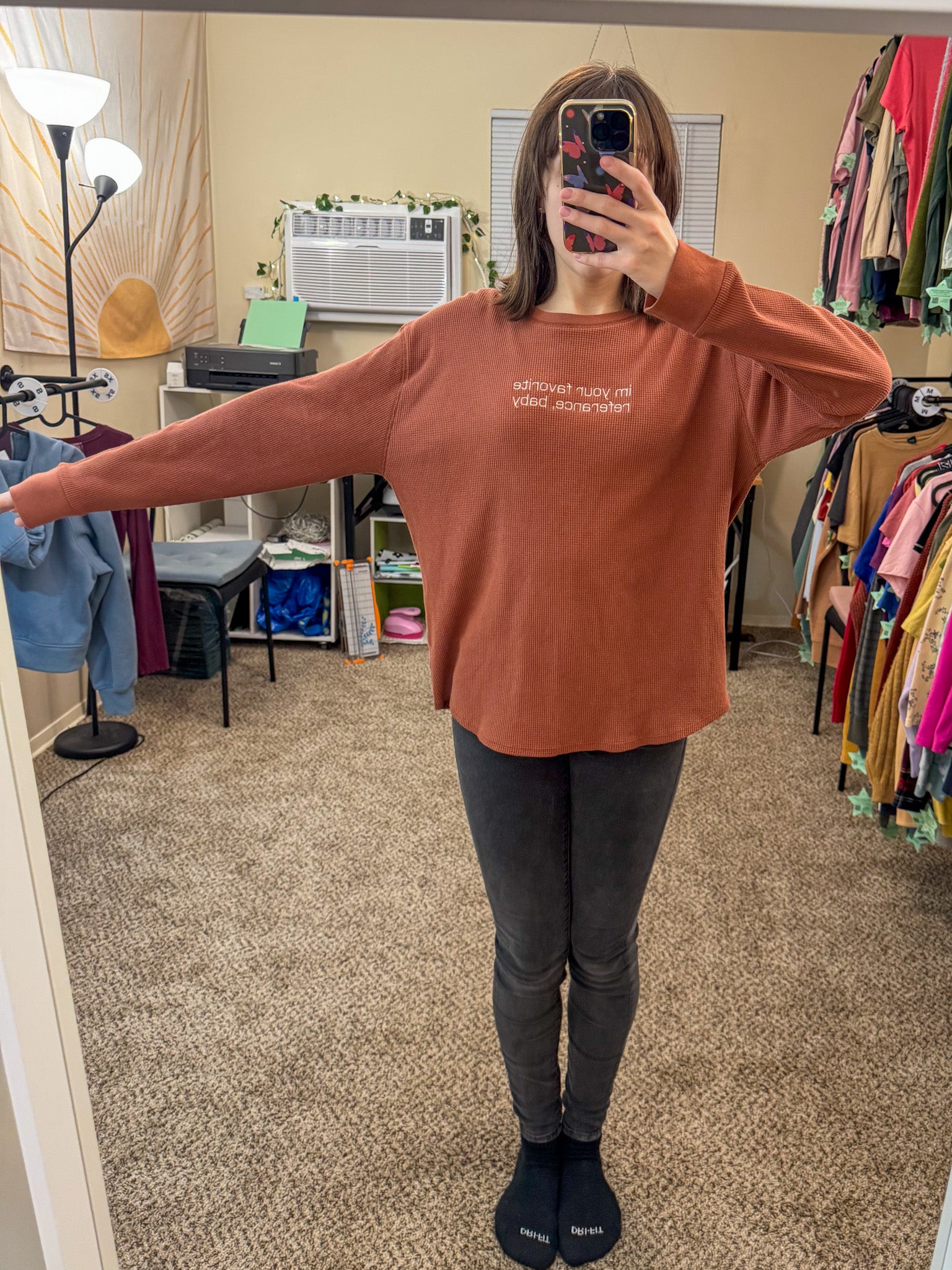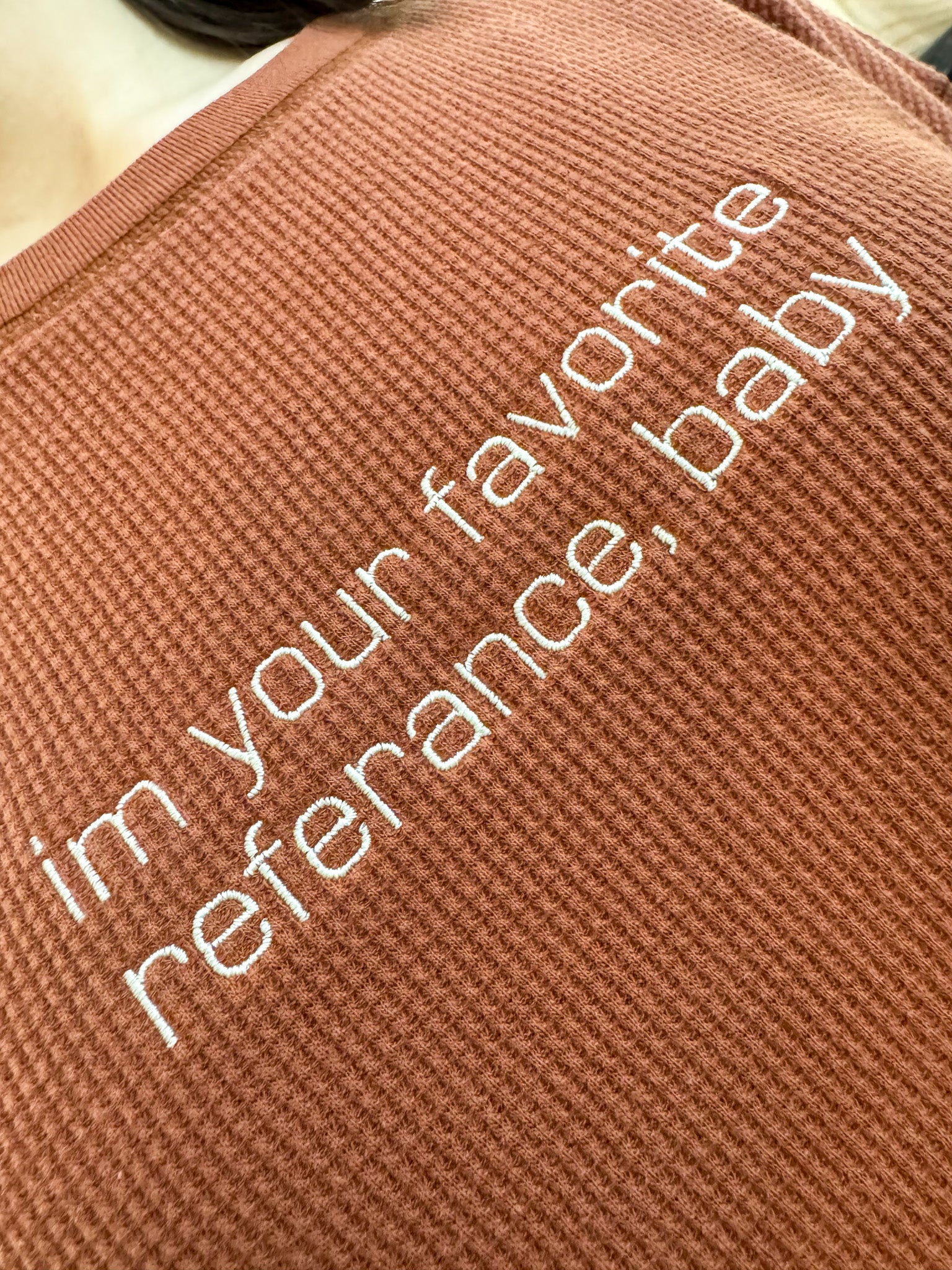 Step up your fashion game with the 360 Thermal Long Sleeve. Not only is it sustainably made from a discarded secondhand garment, but it's also upcycled and embroidered by us to support our small biz. Slow fashion never looked so good!