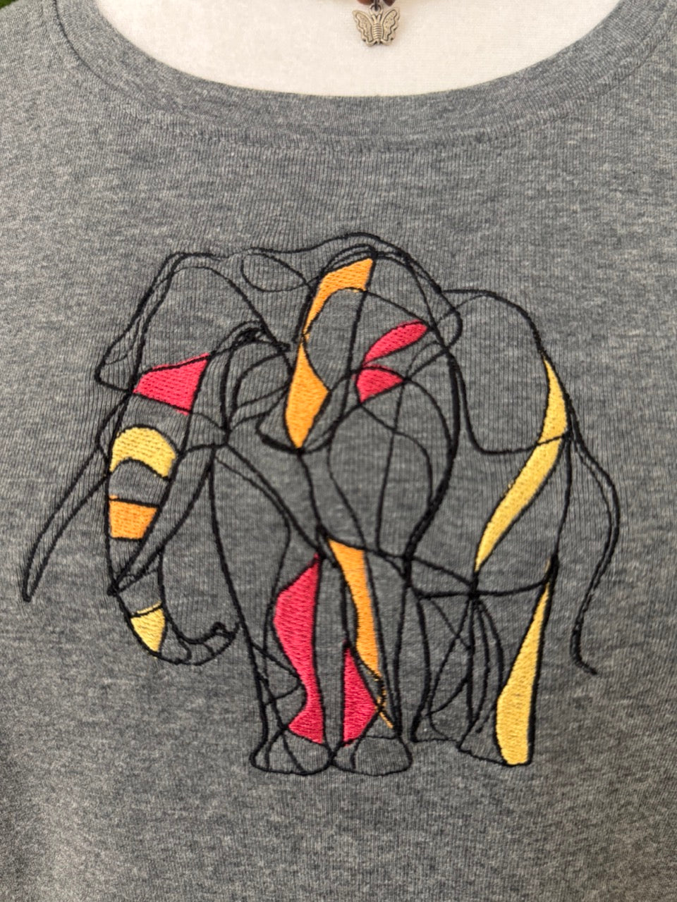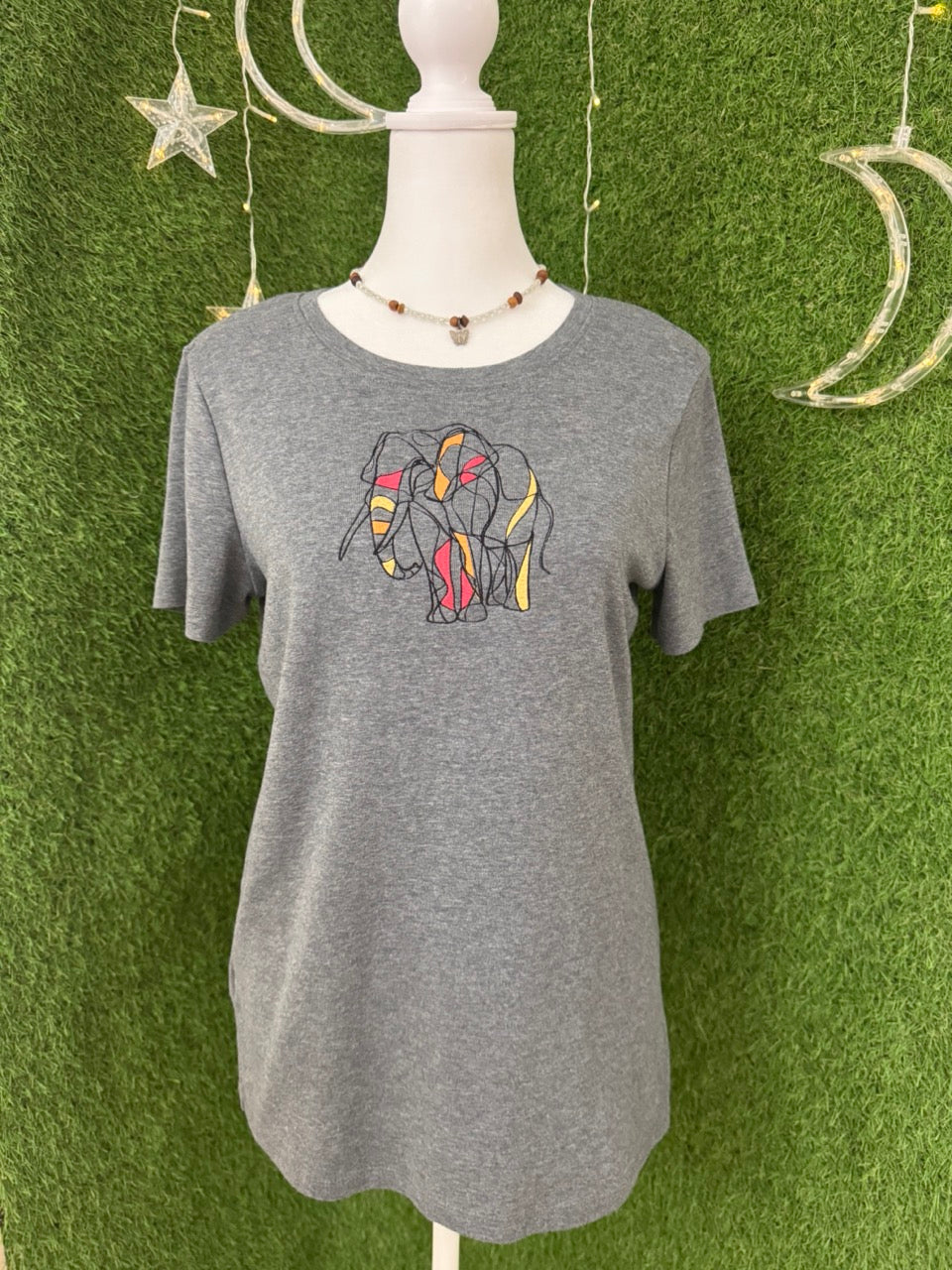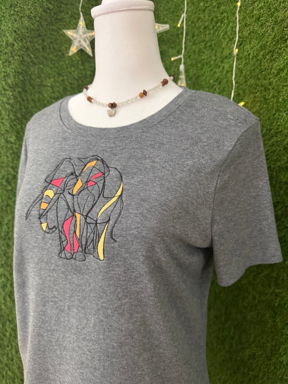Meet the Abstract Elephant Grey T-Shirt—a playful blend of art and eco-conscious style. This shirt features charming embroidered details and is lovingly upcycled, making it a unique piece that supports slow fashion values. Soft, comfy, and full of personality, it’s your new favorite way to wear creativity with a conscience!