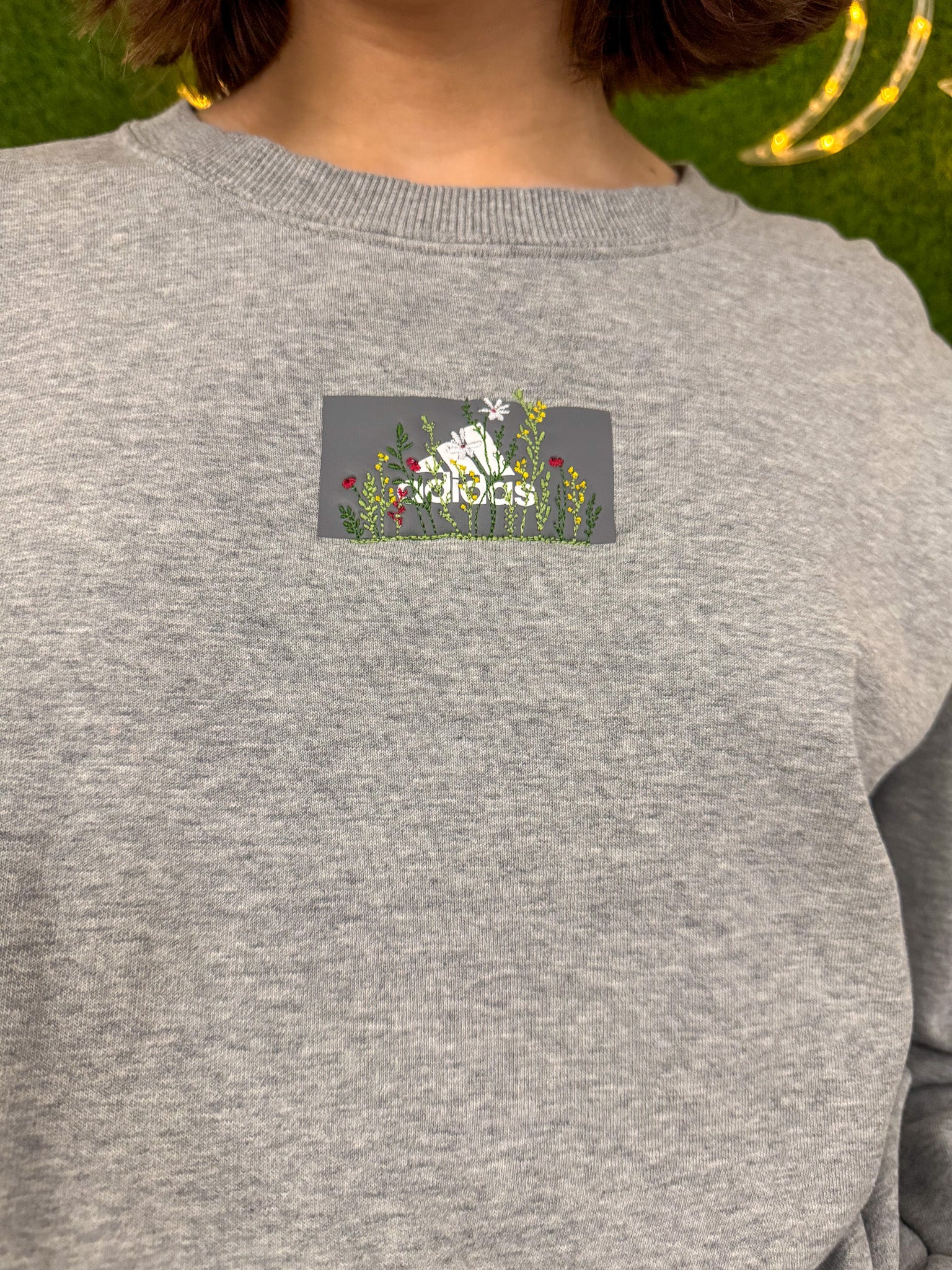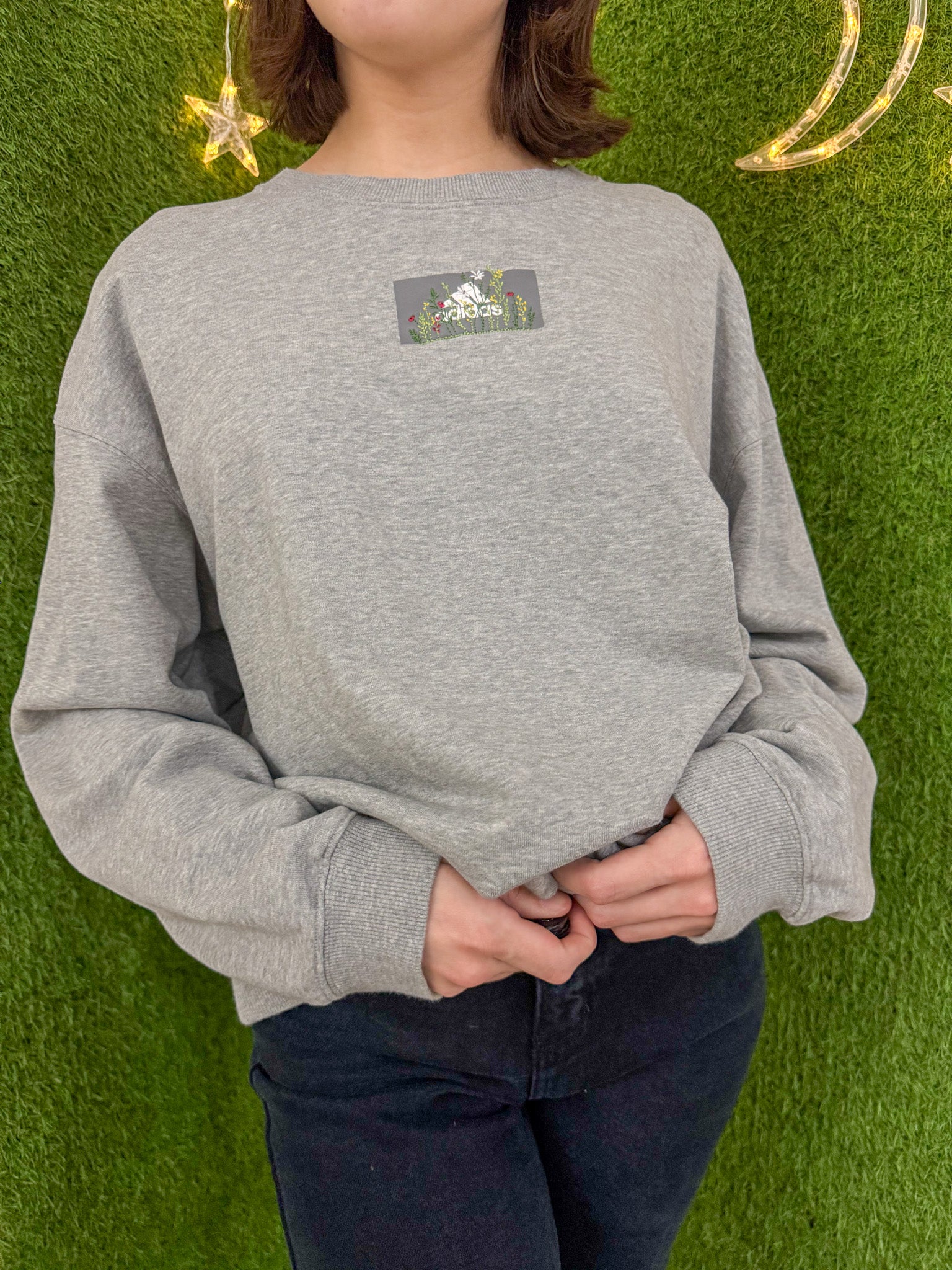Support our small biz and sustainable fashion with this embroidered Adidas crewneck. Upcycled from a secondhand garment, this grey crewneck embodies slow fashion for an environmentally-friendly choice!