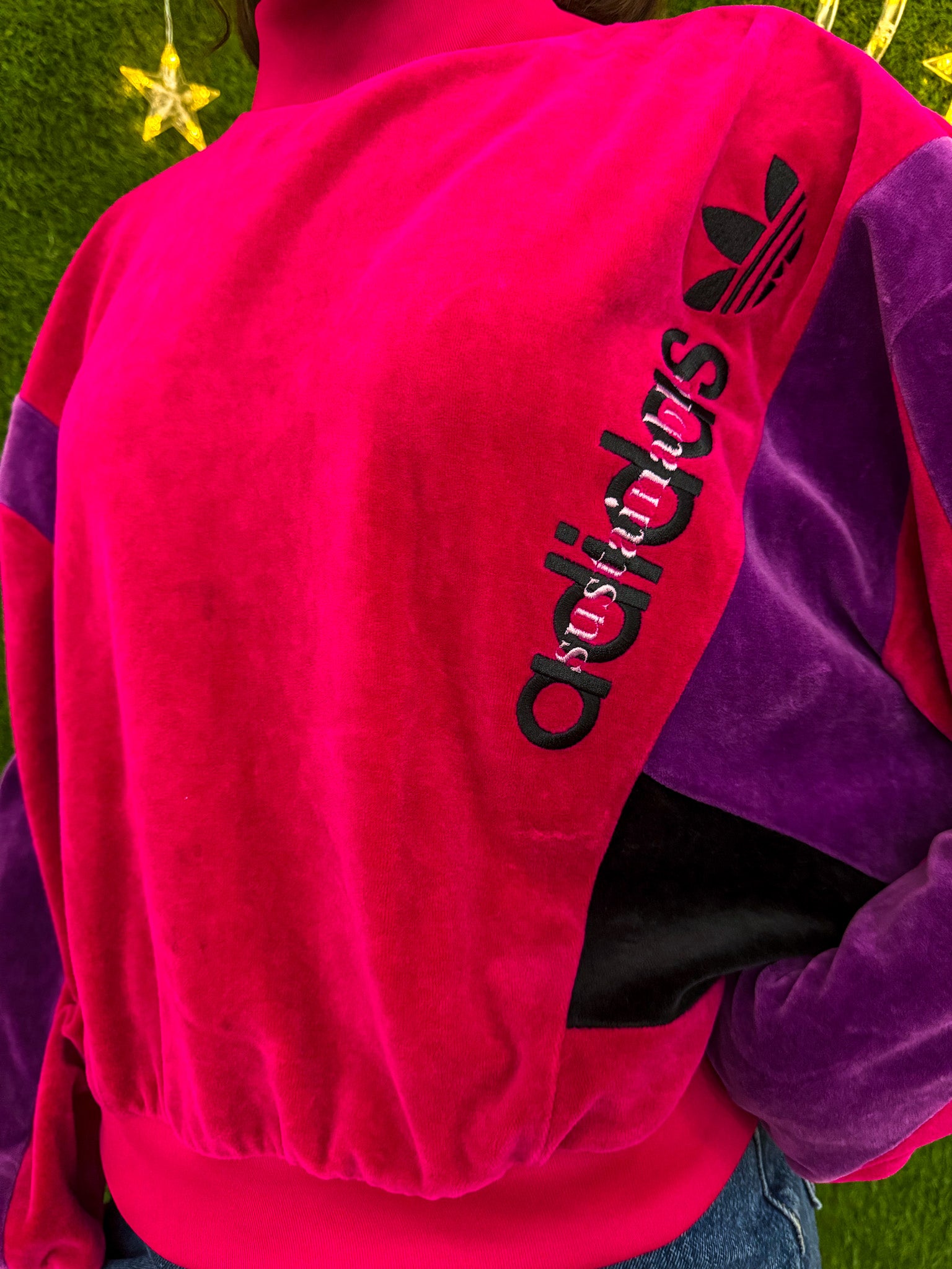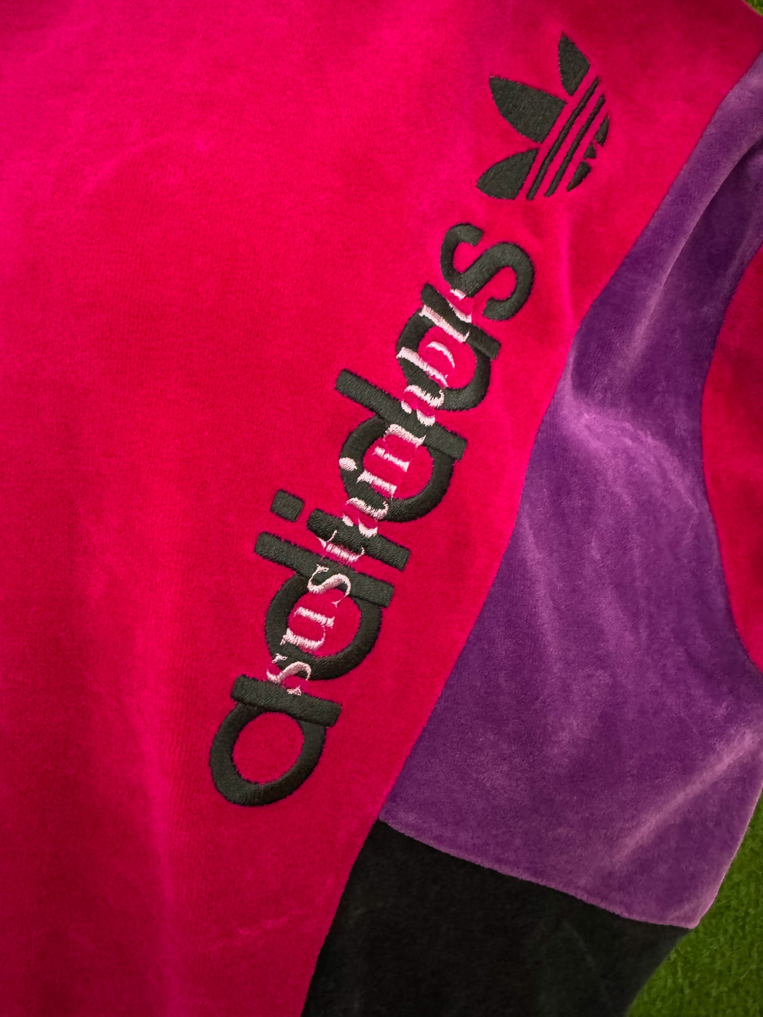 Support sustainable fashion with this eco-friendly Adidas velvet crewneck. The embroidered logo adds a touch of style to this upcycled, secondhand garment. Made with slow fashion in mind, this crewneck helps support small businesses while reducing your carbon footprint<3