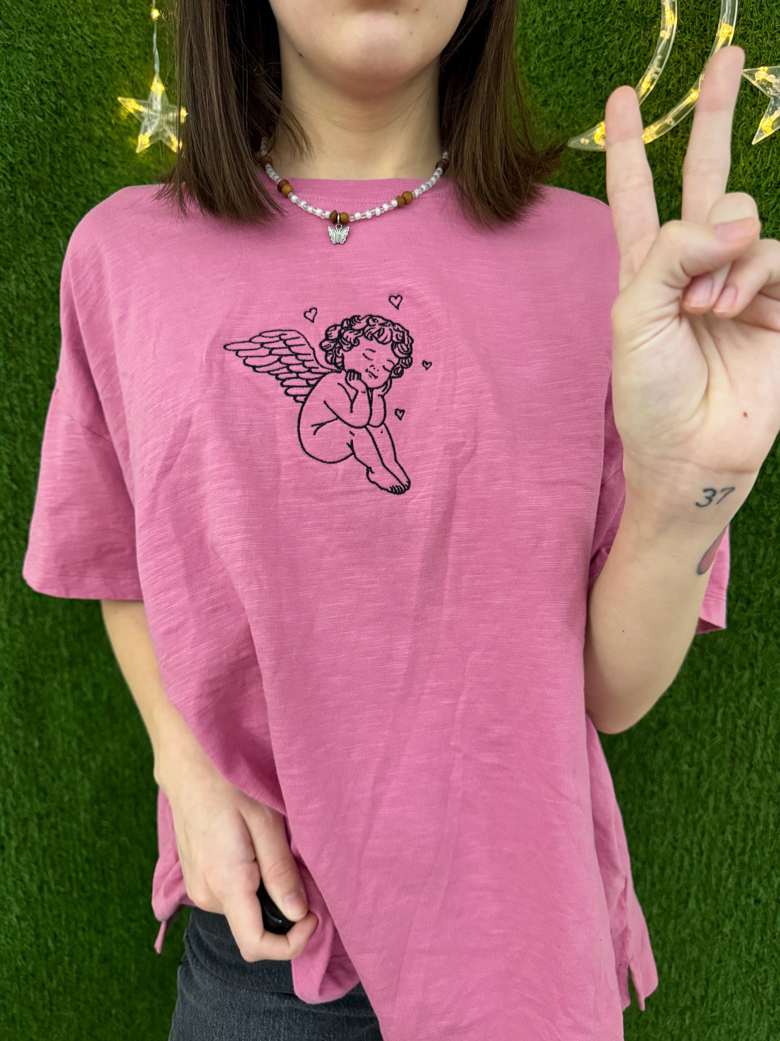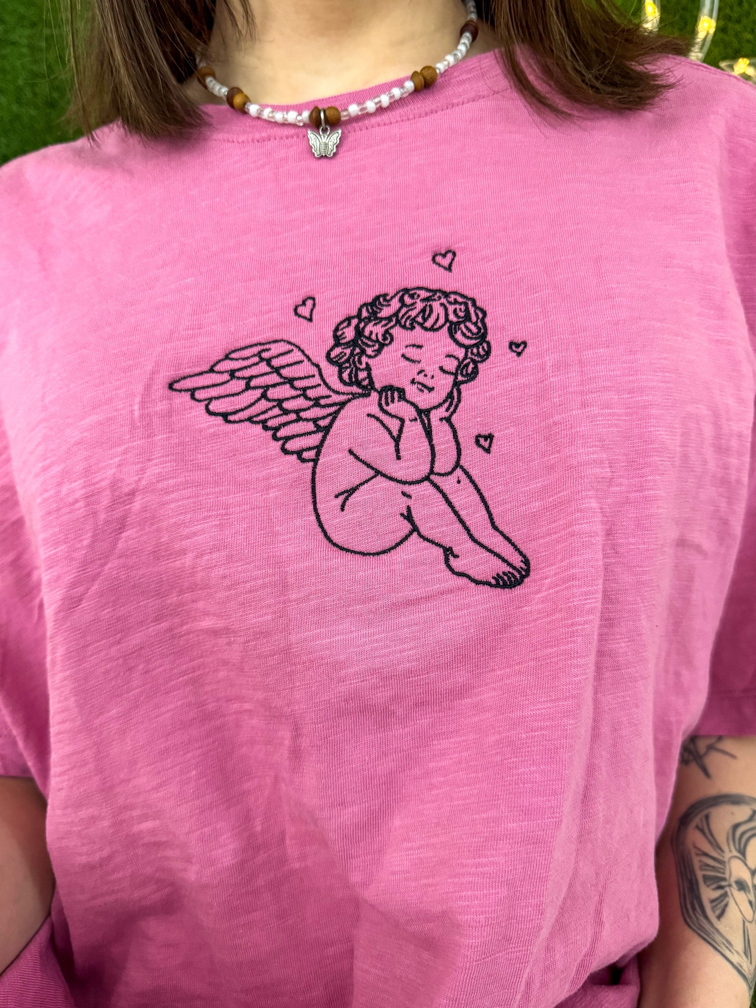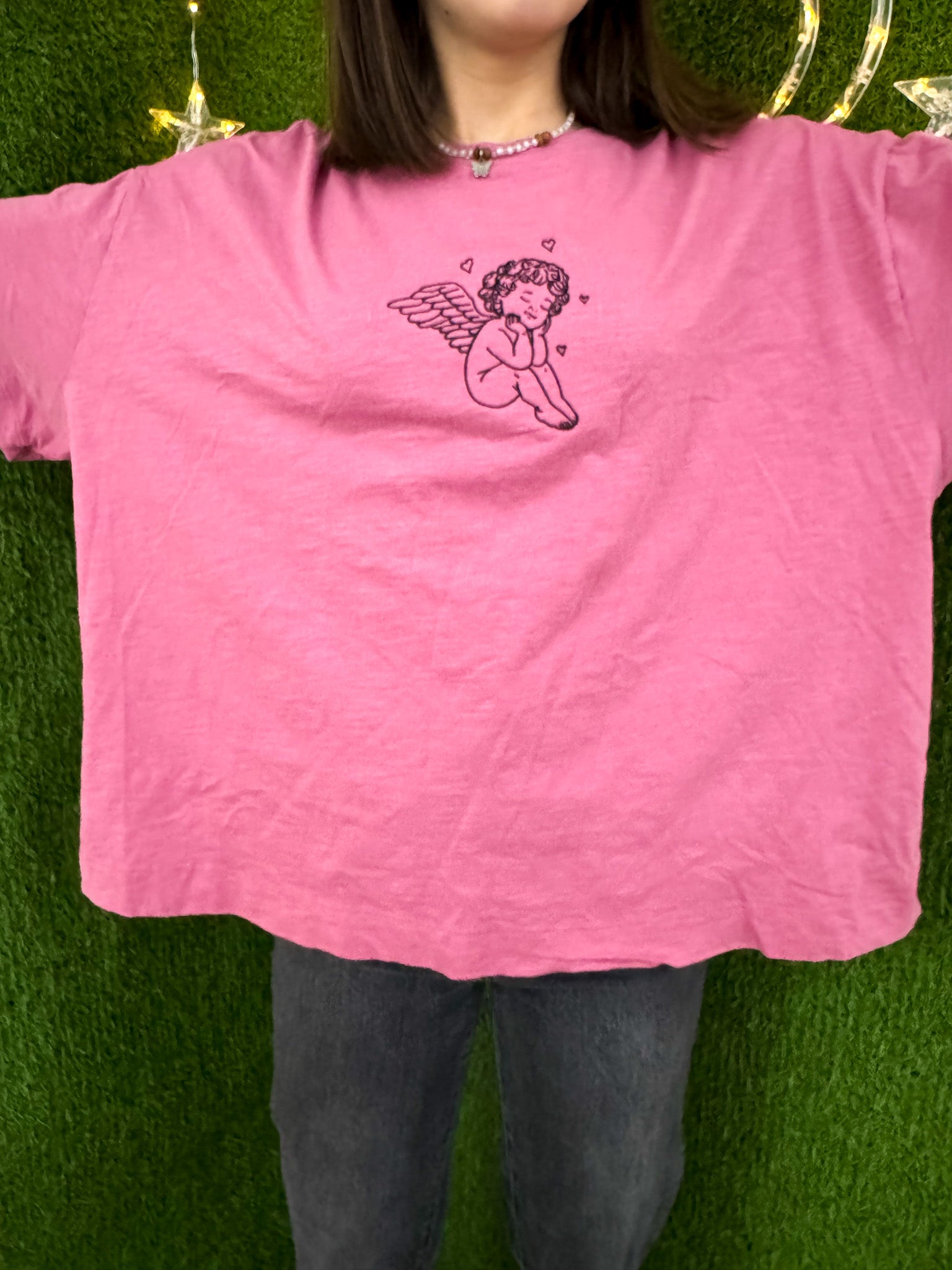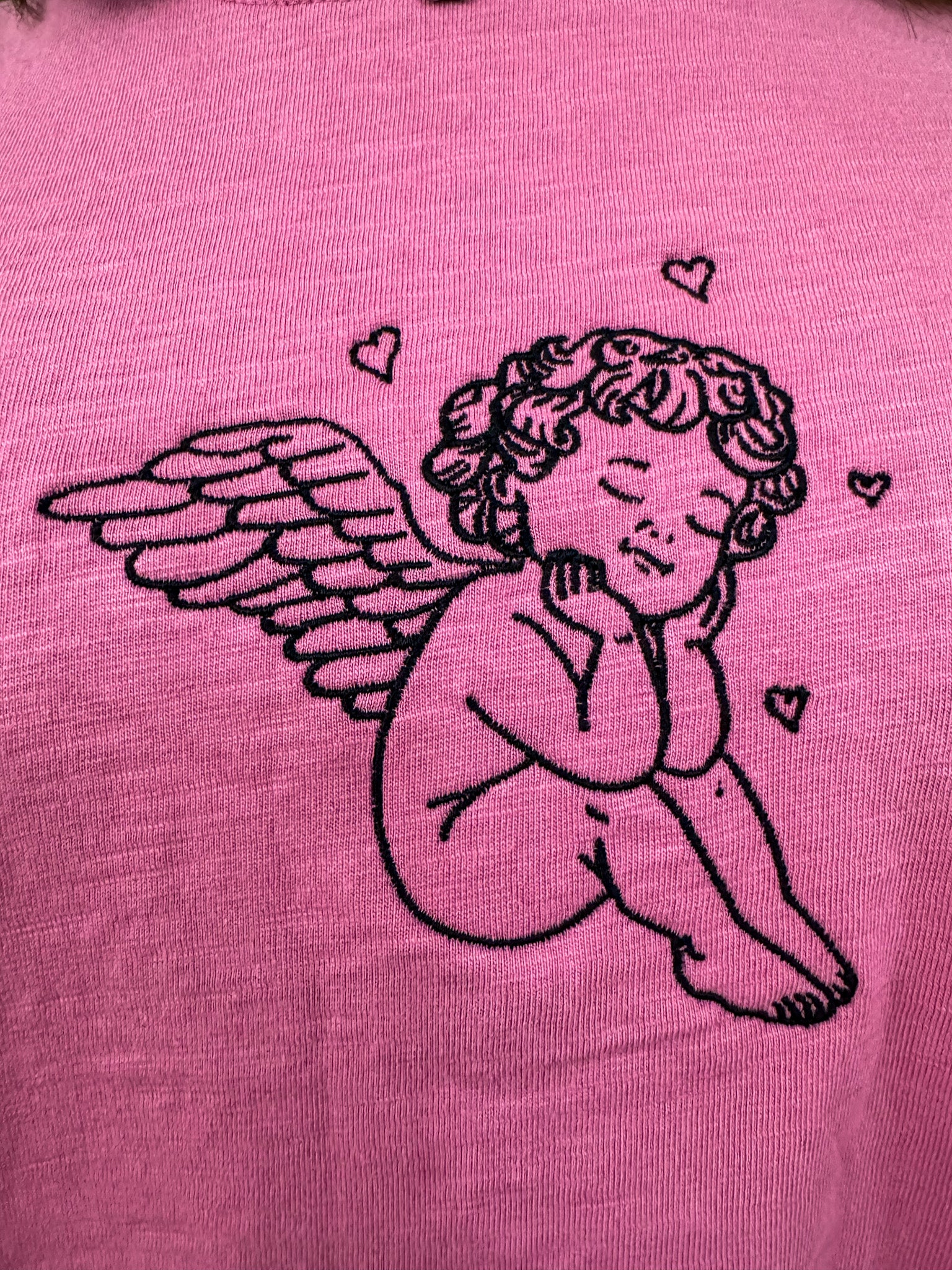 Look angelic while supporting small biz in this embroidered pink jersey tee. Made from upcycled and sustainable materials, this secondhand garment embodies the slow fashion movement. (Psst, it's also super cute!)