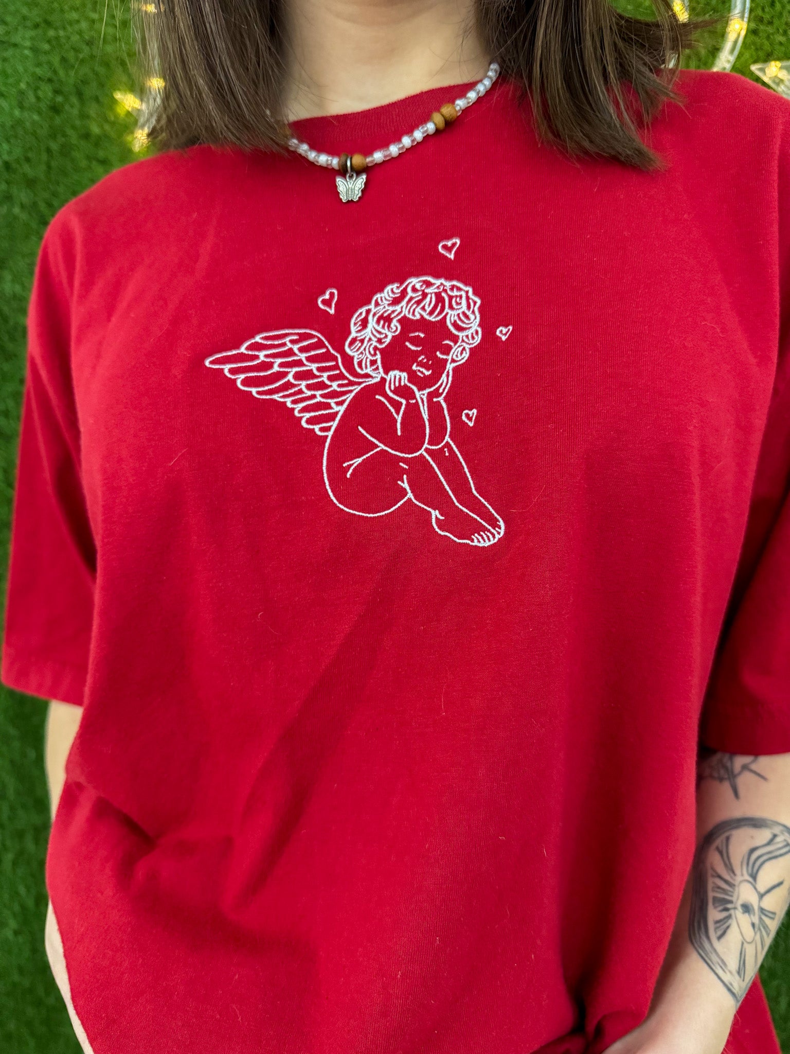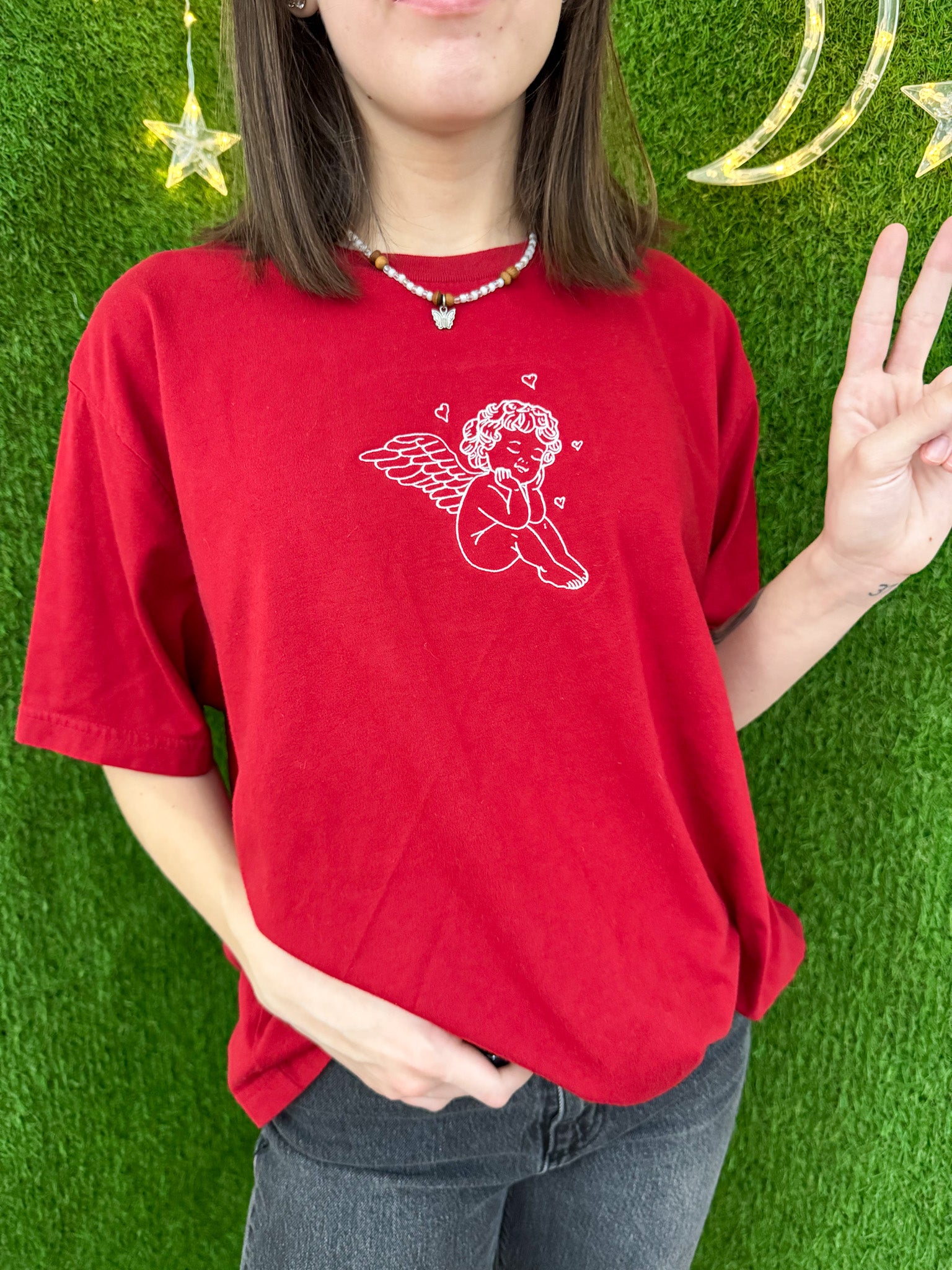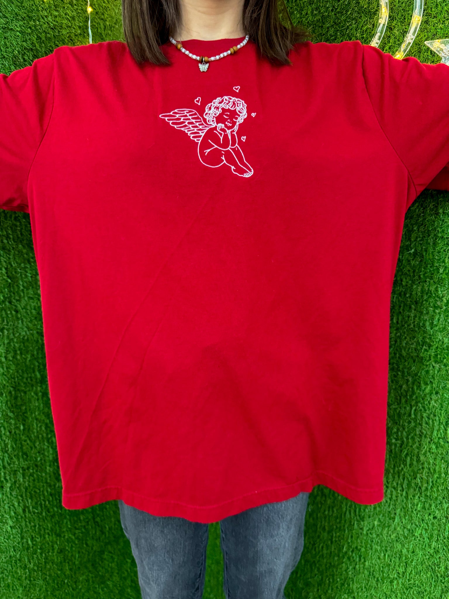 Rock this embroidered Angel Baby Red T-shirt and show your support for small businesses while staying sustainable and stylish. Upcycled with care, this secondhand garment is part of the slow fashion movement. Get yours now and join the eco-fashion revolution!