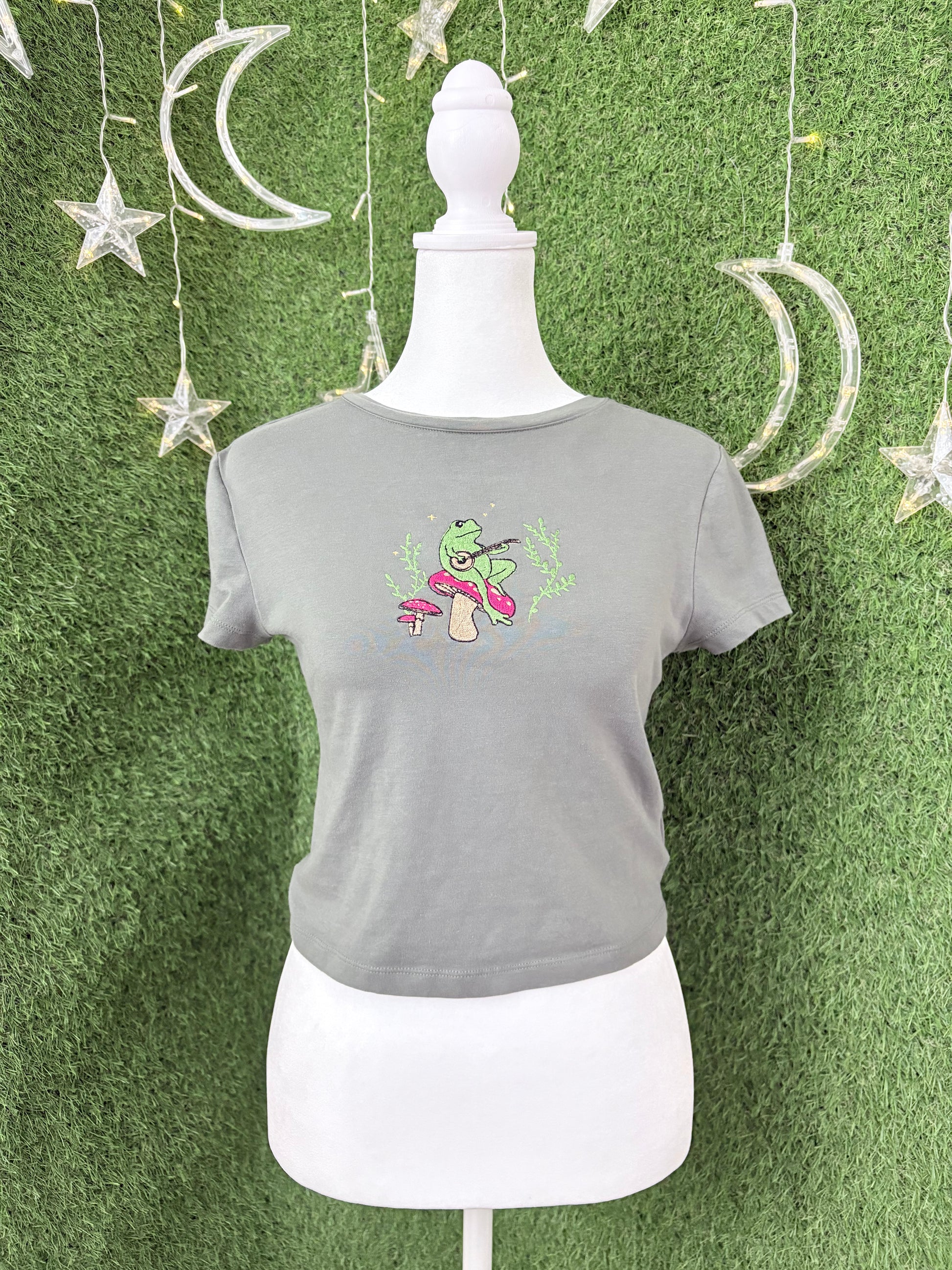 Made with care for the planet, this green crop top brings fun and eco-friendly vibes to your wardrobe. Perfect for those who love slow fashion and playful style!