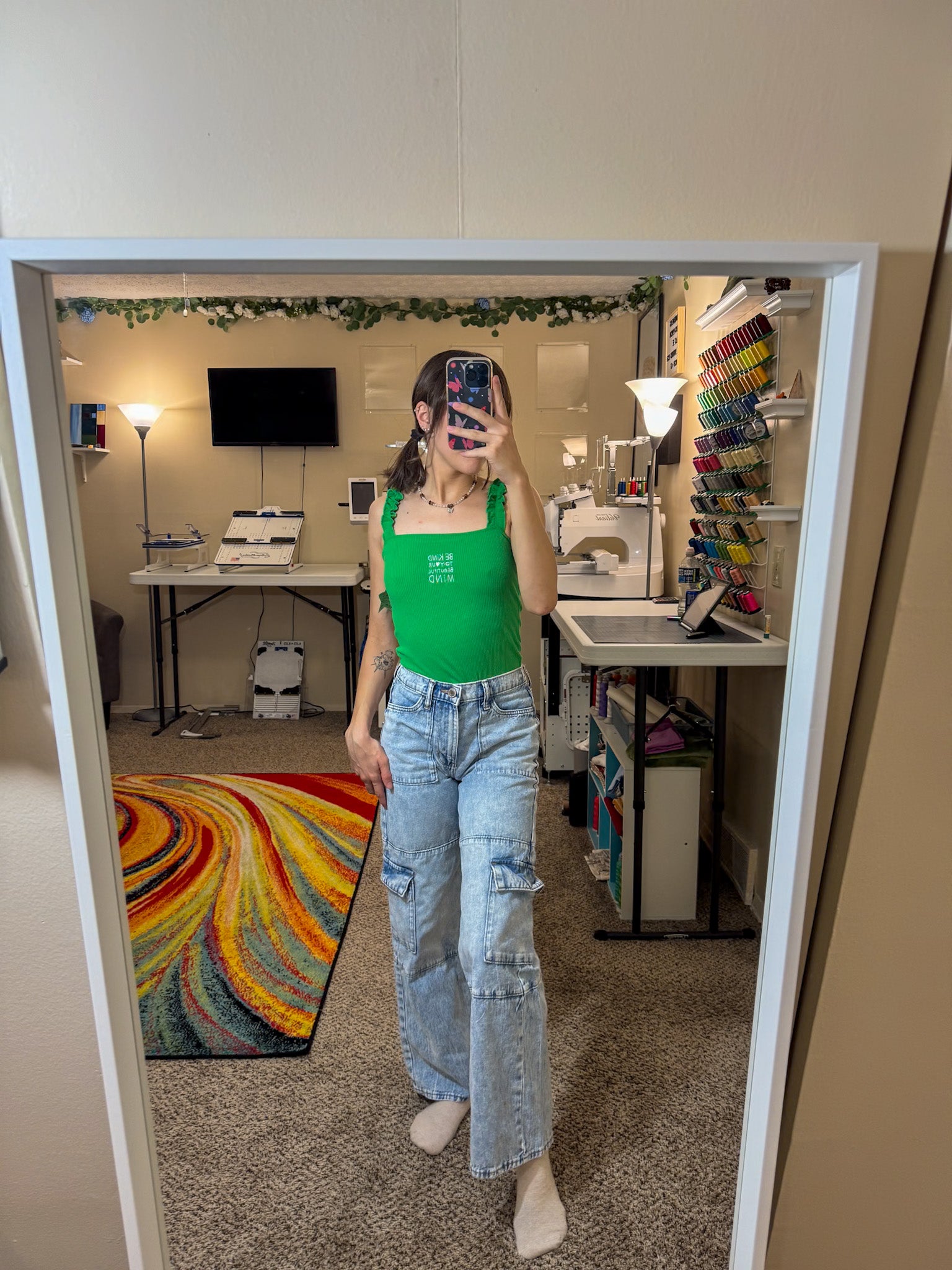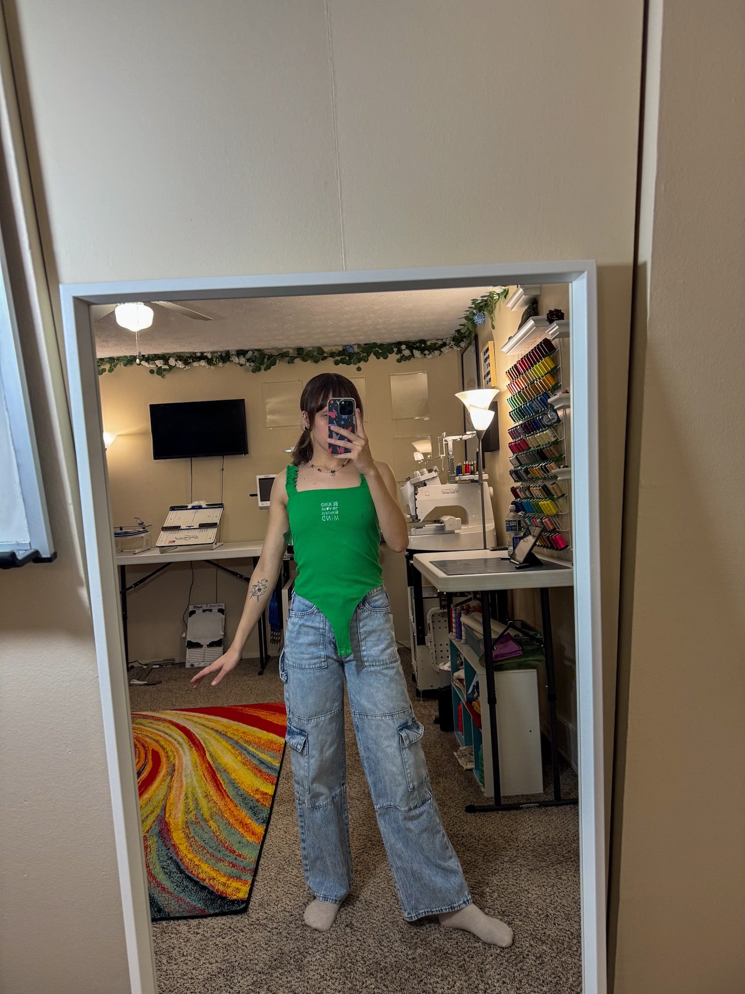 Be Kind To Your Beautiful Mind Green Ribbed Ruffled Strapped Tank Bodysuit XS
