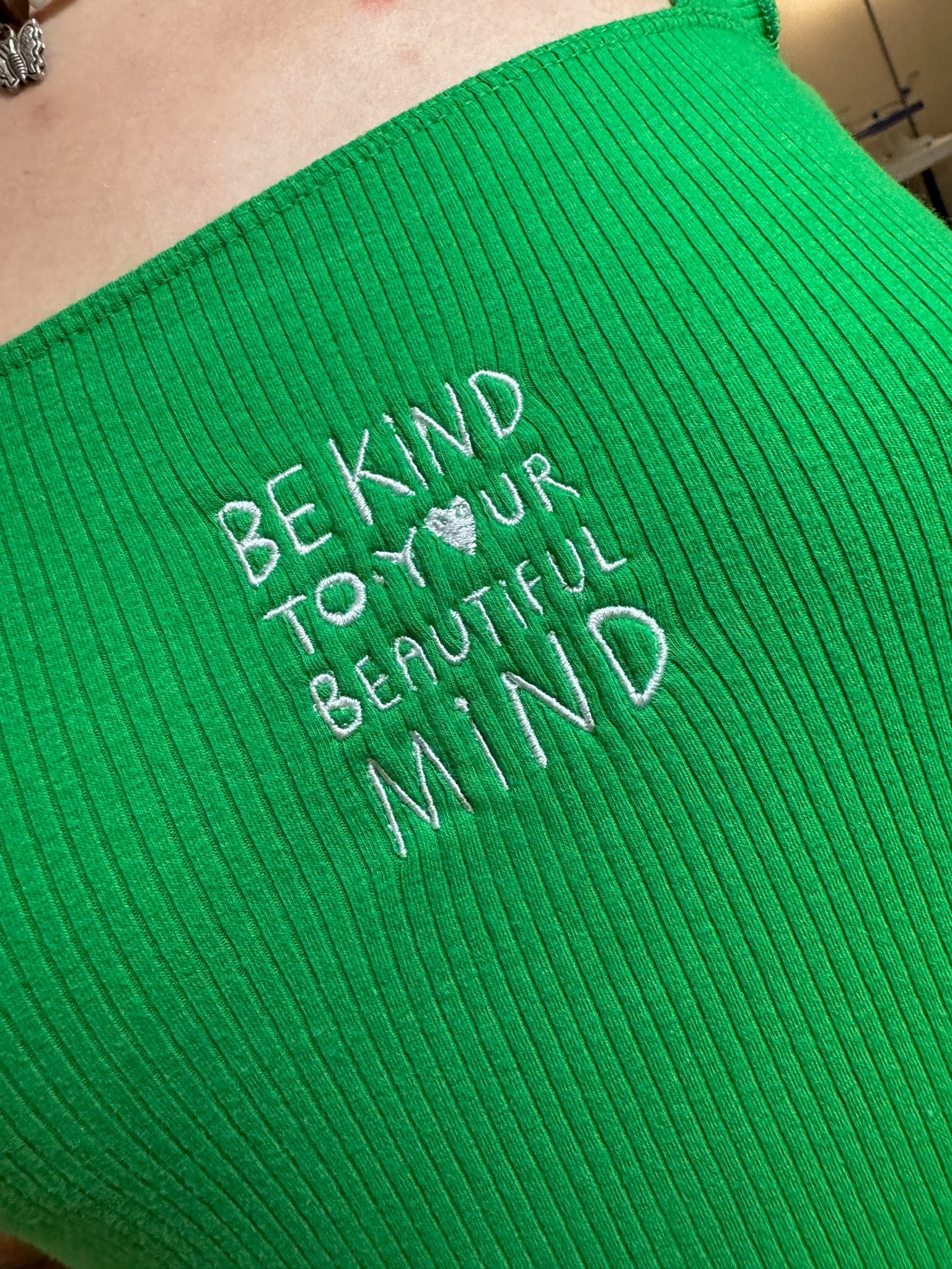 Embroidered with love and sustainability in mind, our Be Kind tank bodysuit features a ribbed design and ruffled straps. Made from discarded secondhand garments, it's a stylish and conscientious addition to your wardrobe. Not to mention, your purchase supports our small business and slow fashion efforts!