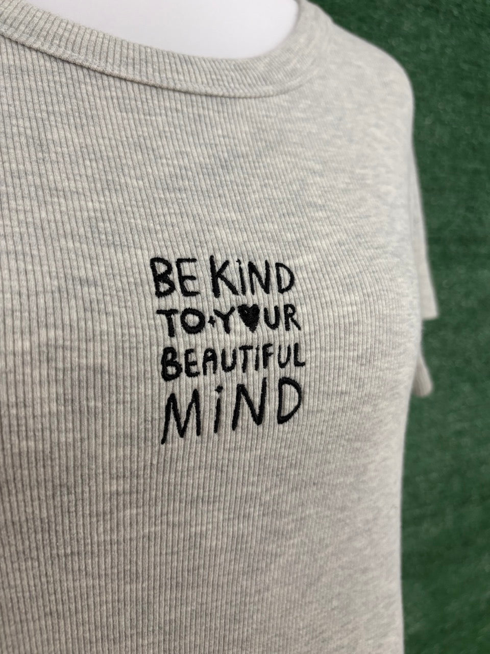 Be Kind to Your Beautiful Mind Grey Ribbed Baby Tee L