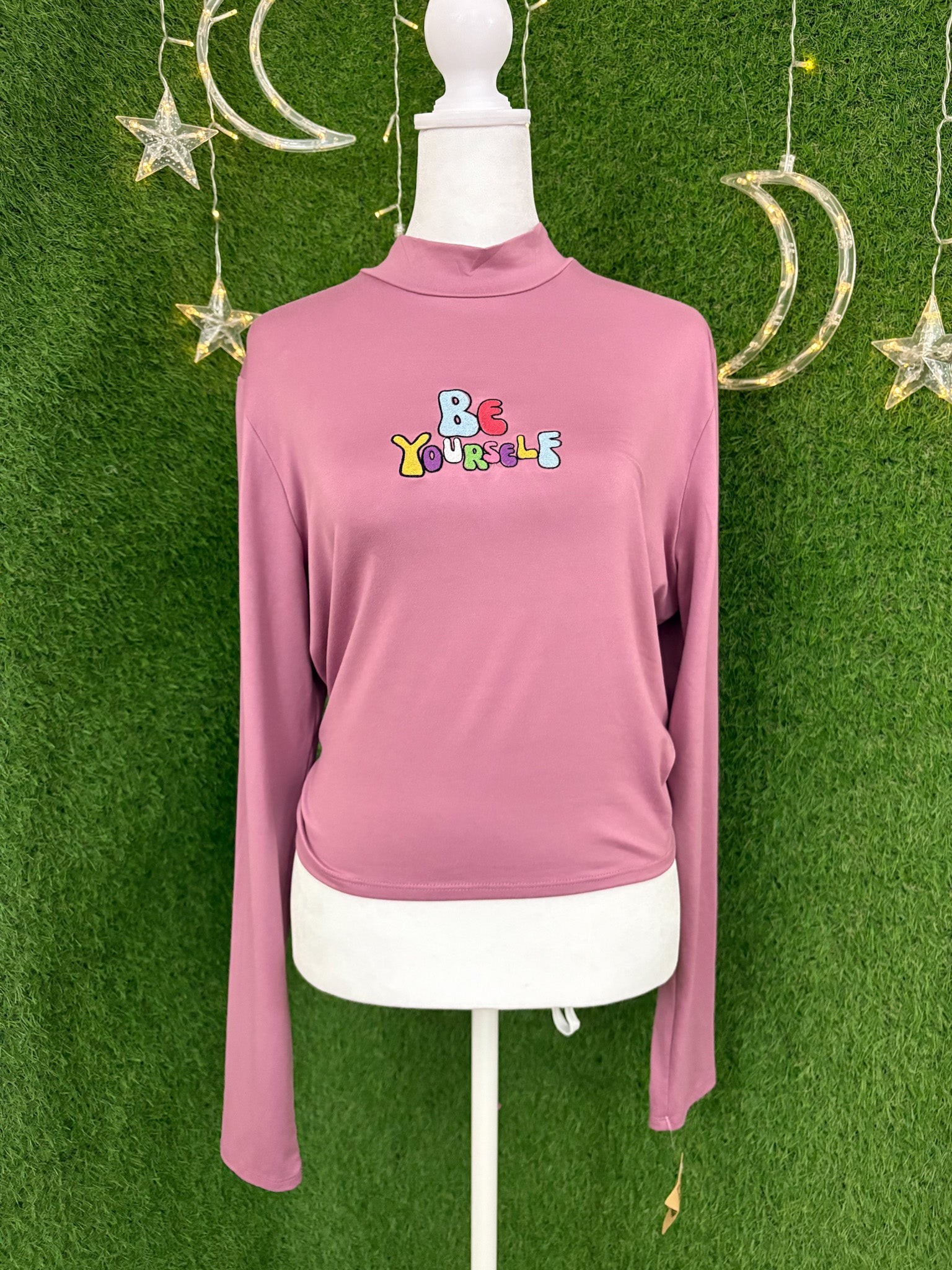 Be Yourself Cinched Back Pink Cropped Long Sleeve 2XL