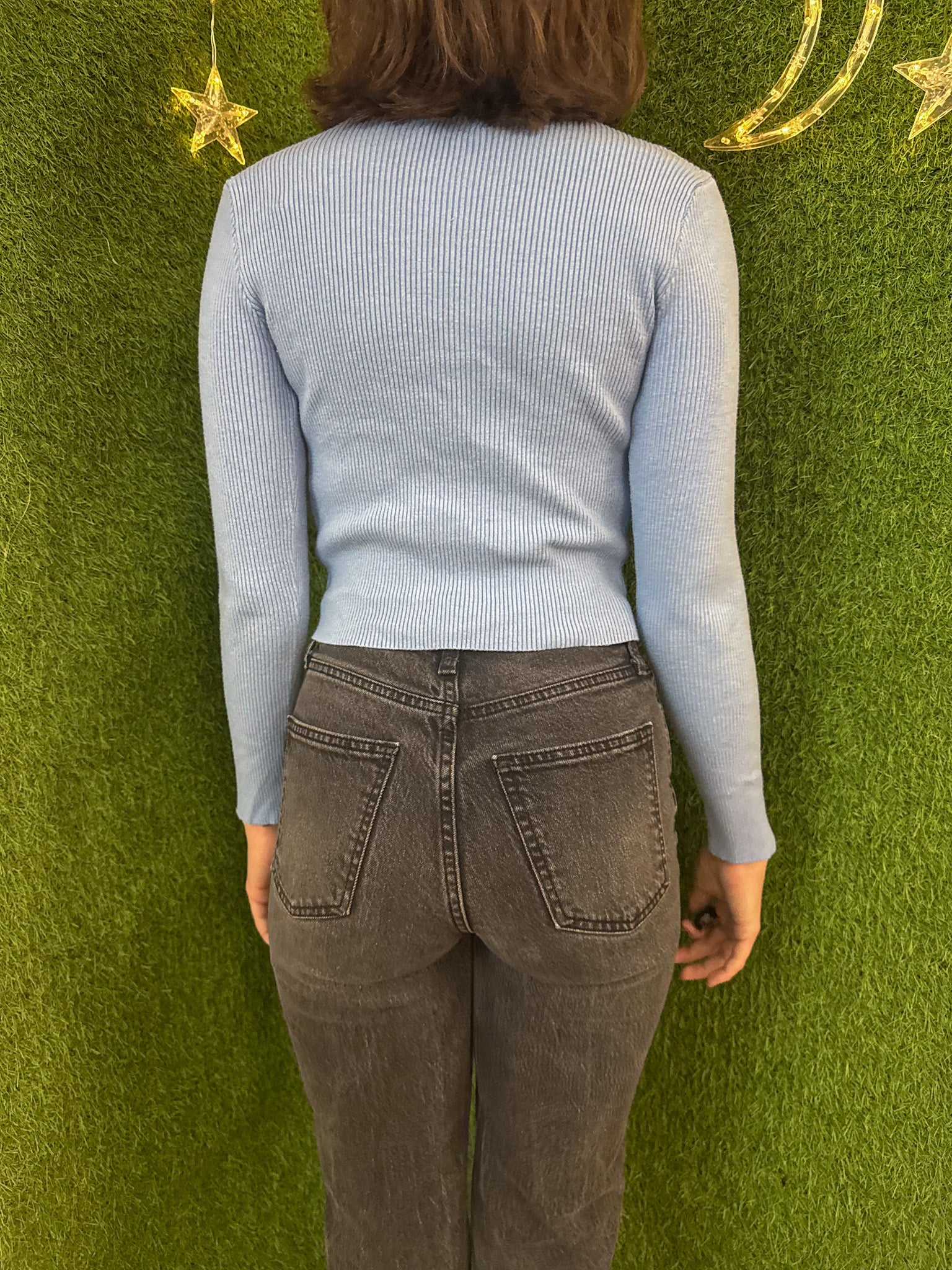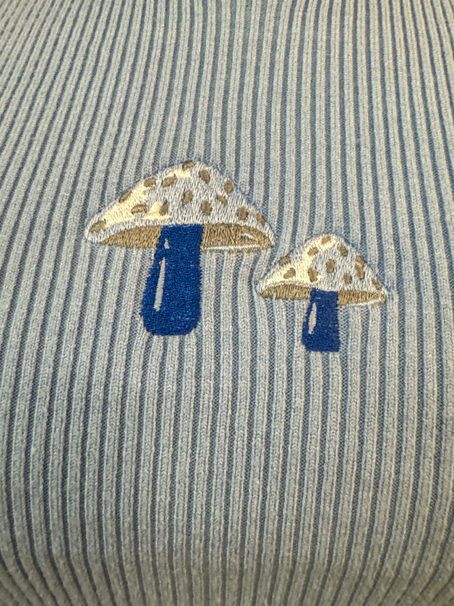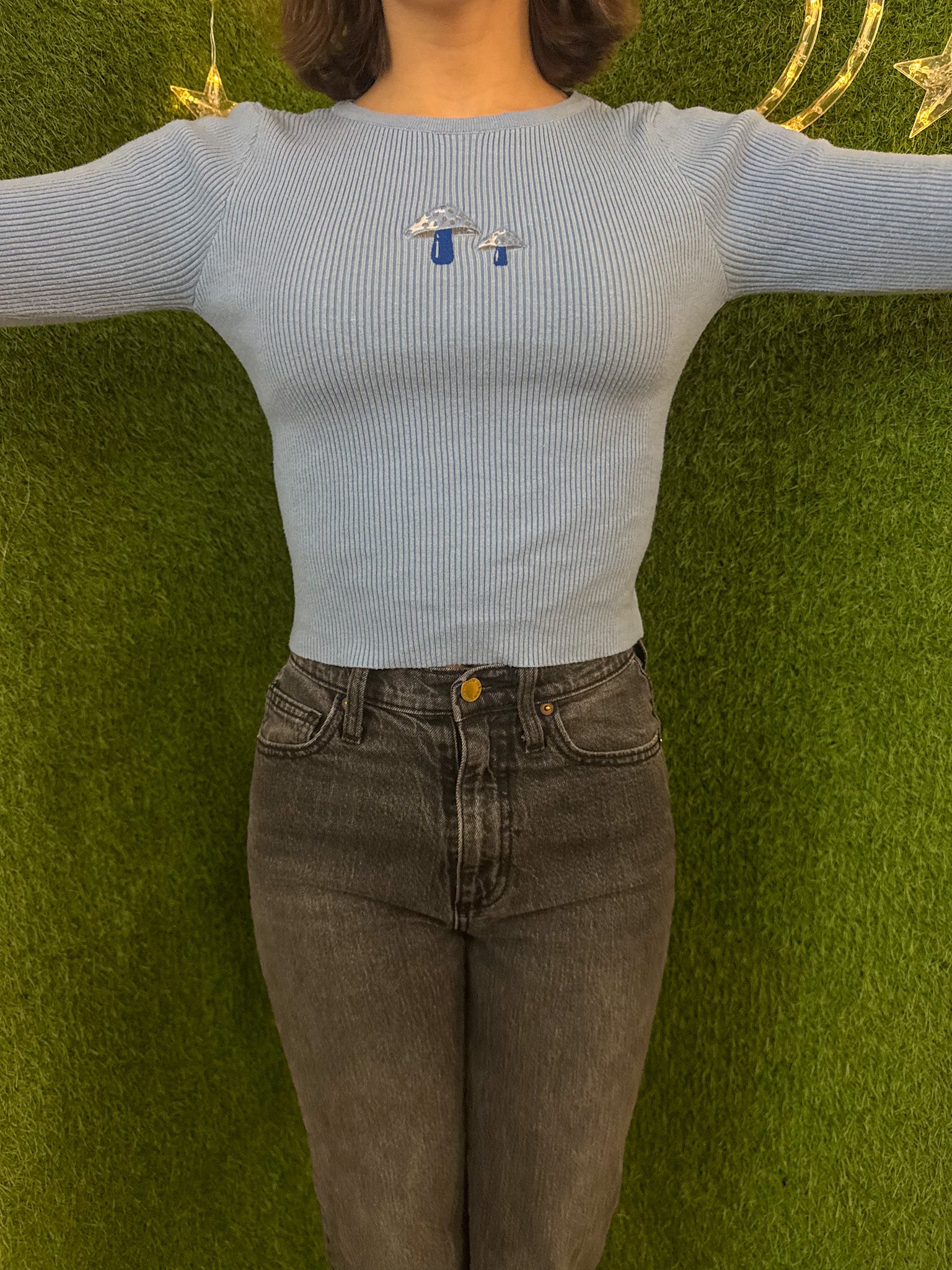 Blue Mushrooms Stretchy Ribbed Cropped Long Sleeve L