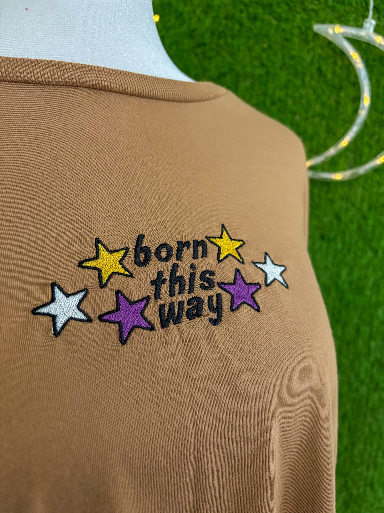 Embroidered, upcycled secondhand garment that supports small businesses and promotes sustainability>>