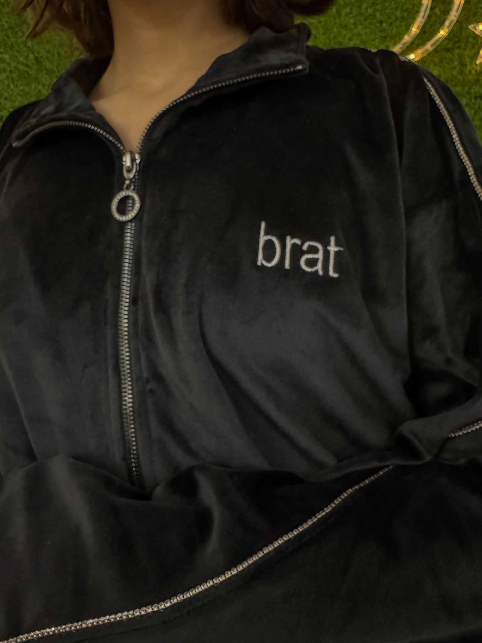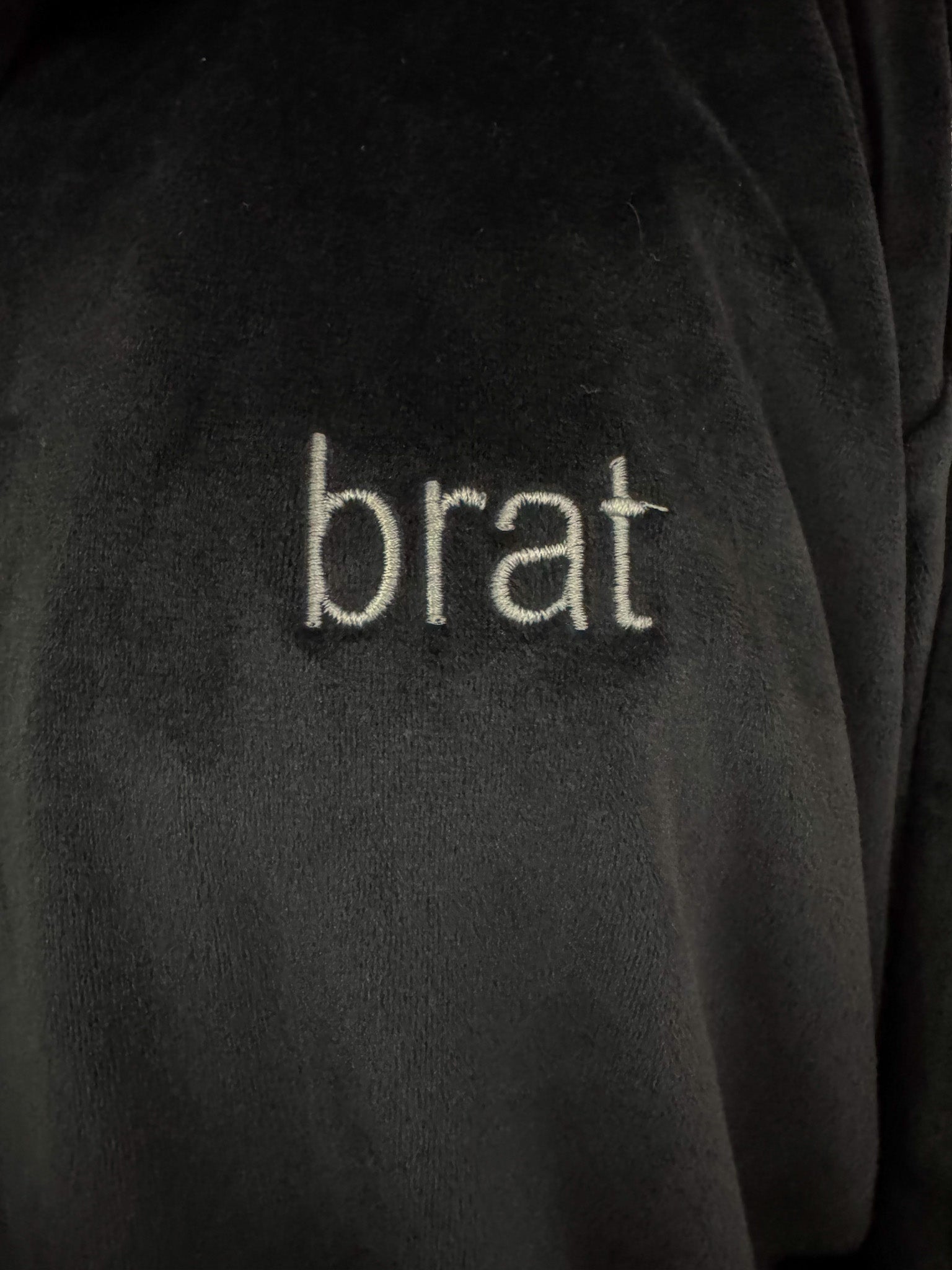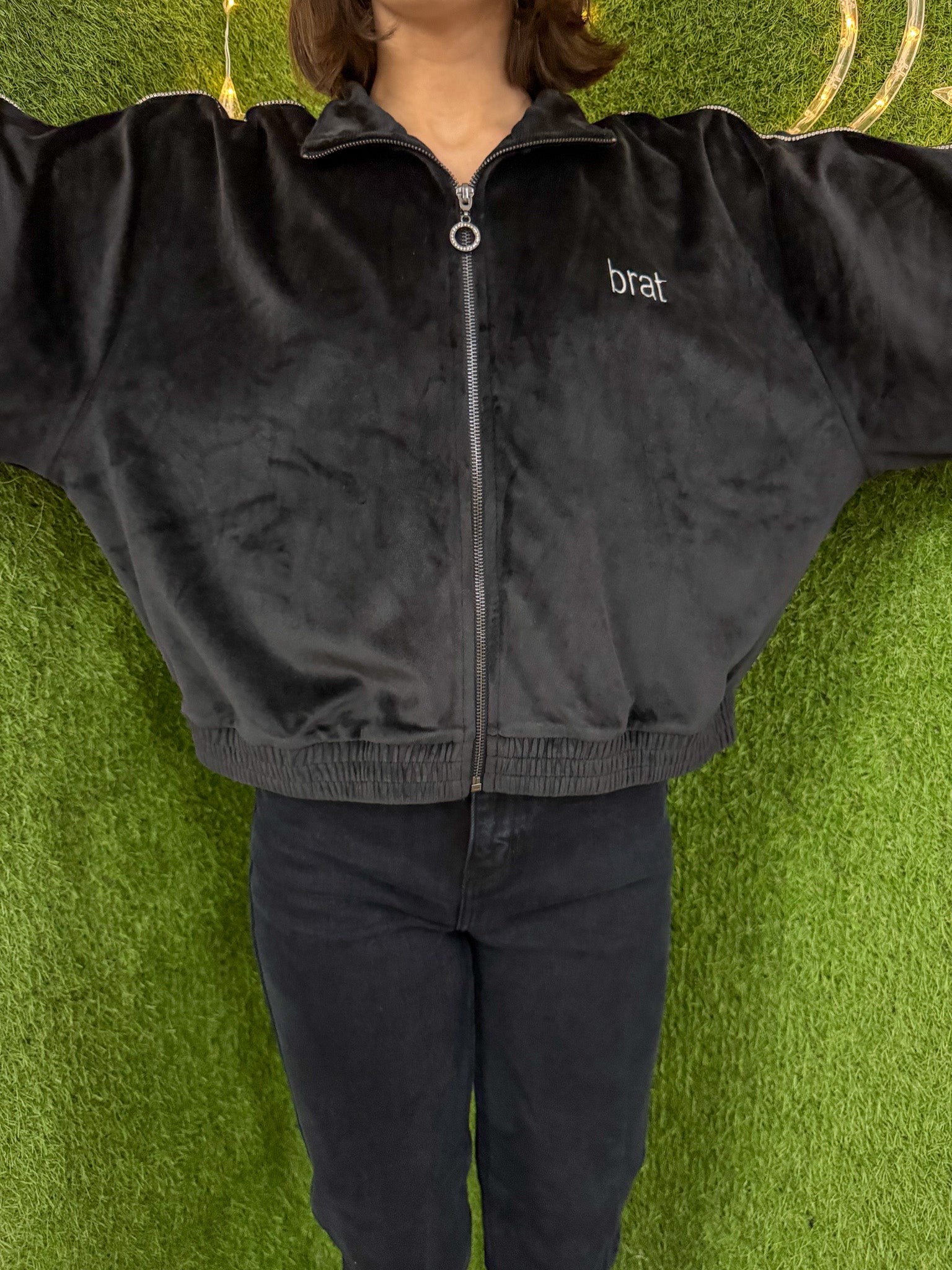 Elevate your style with our Brat Velvet Cropped Zip-up. With delicate embroidery, this sustainable, secondhand piece supports our small biz and slow fashion movement. Upcycle your wardrobe and stand out with this unique, eco-friendly item!!