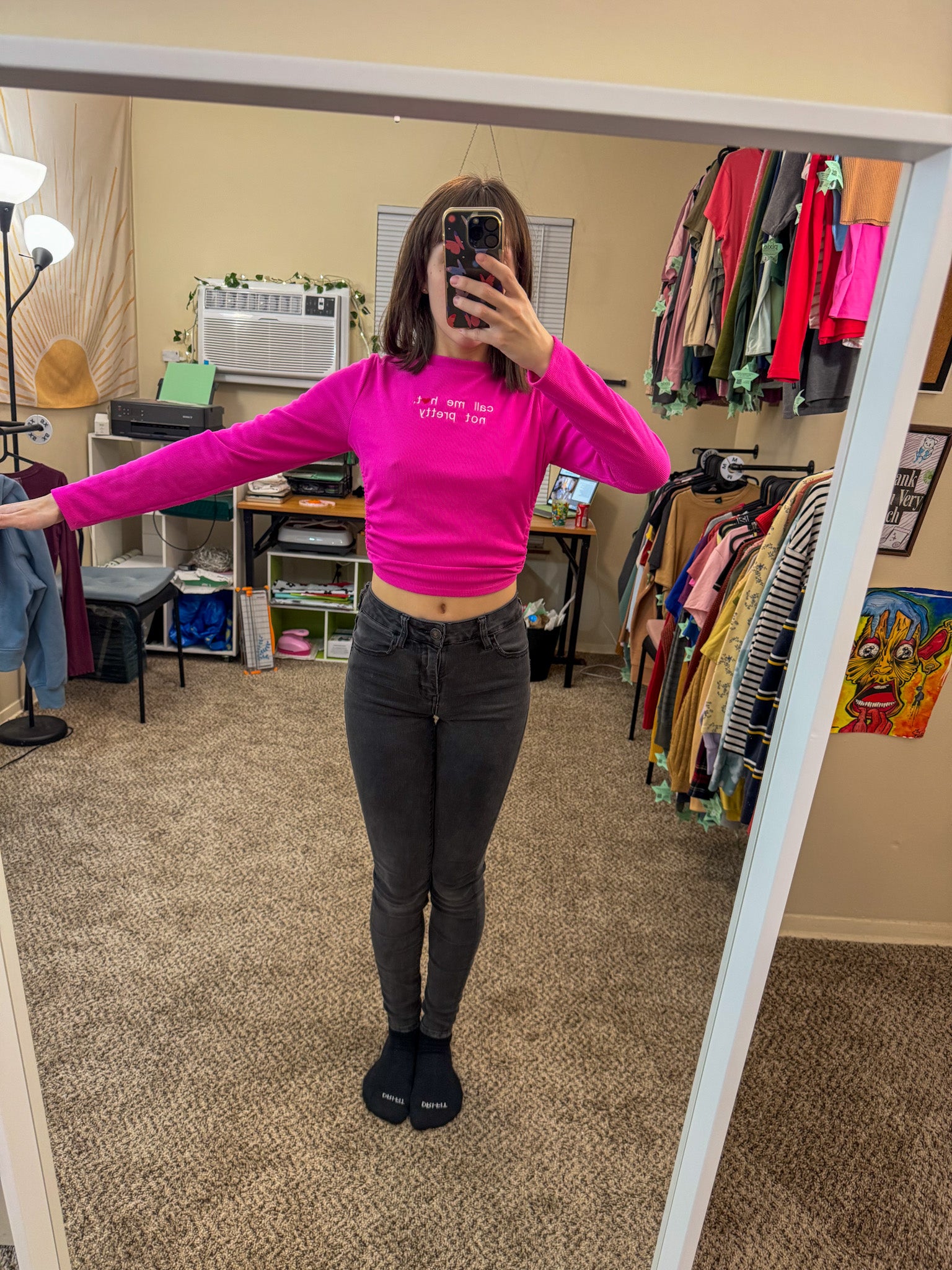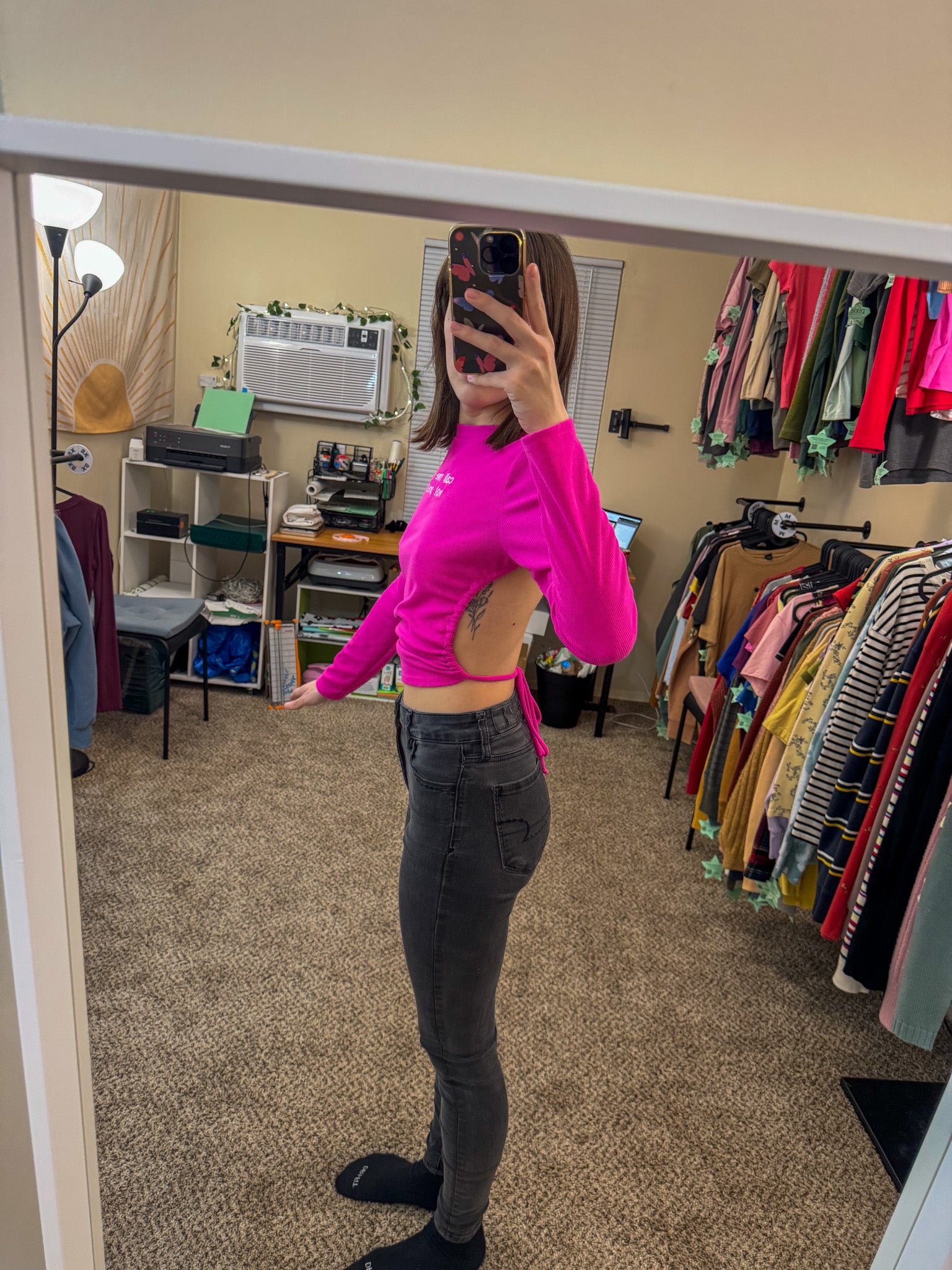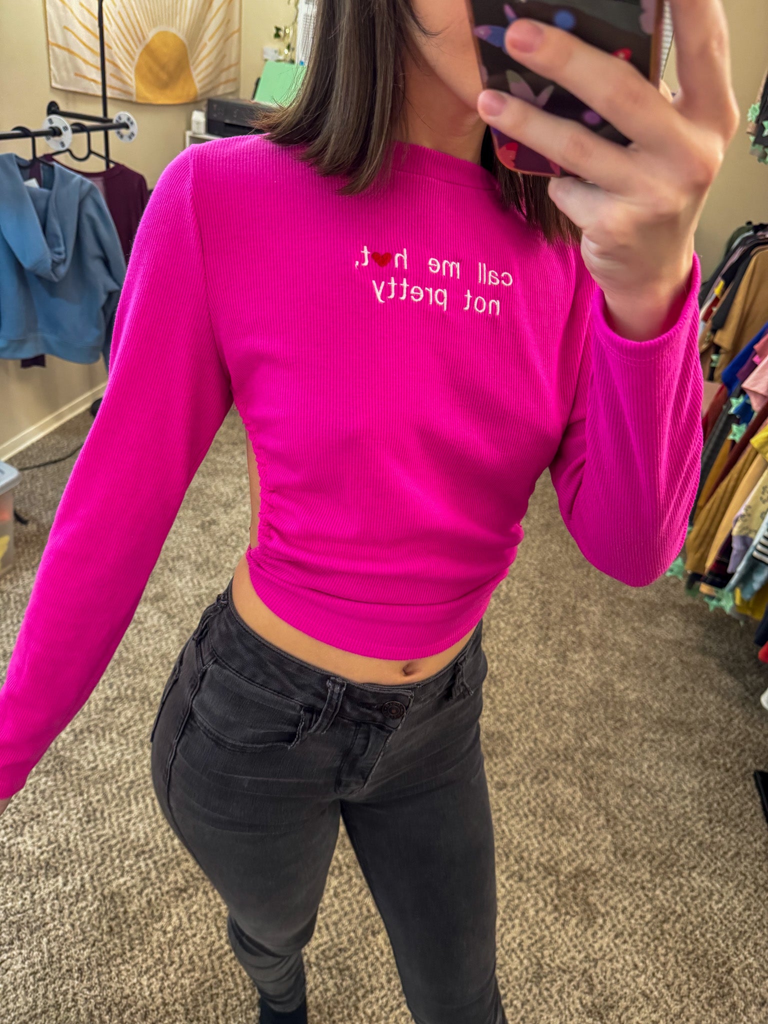 Get hot and sustainable with our Call Me Hot Open Back Cropped Long Sleeve! This unique piece is not only embroidered by us, but also upcycled from a discarded secondhand garment, supporting our small biz. Be a part of the slow fashion movement in style. Eco-friendly never looked so good!