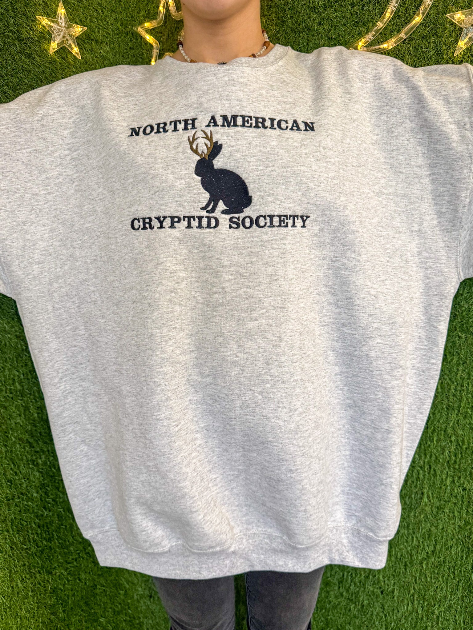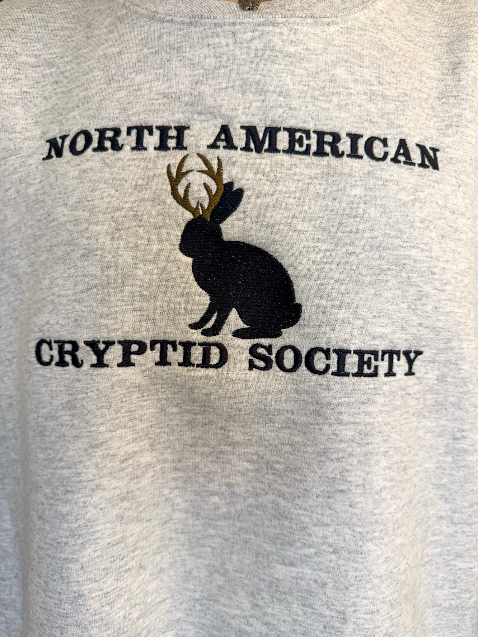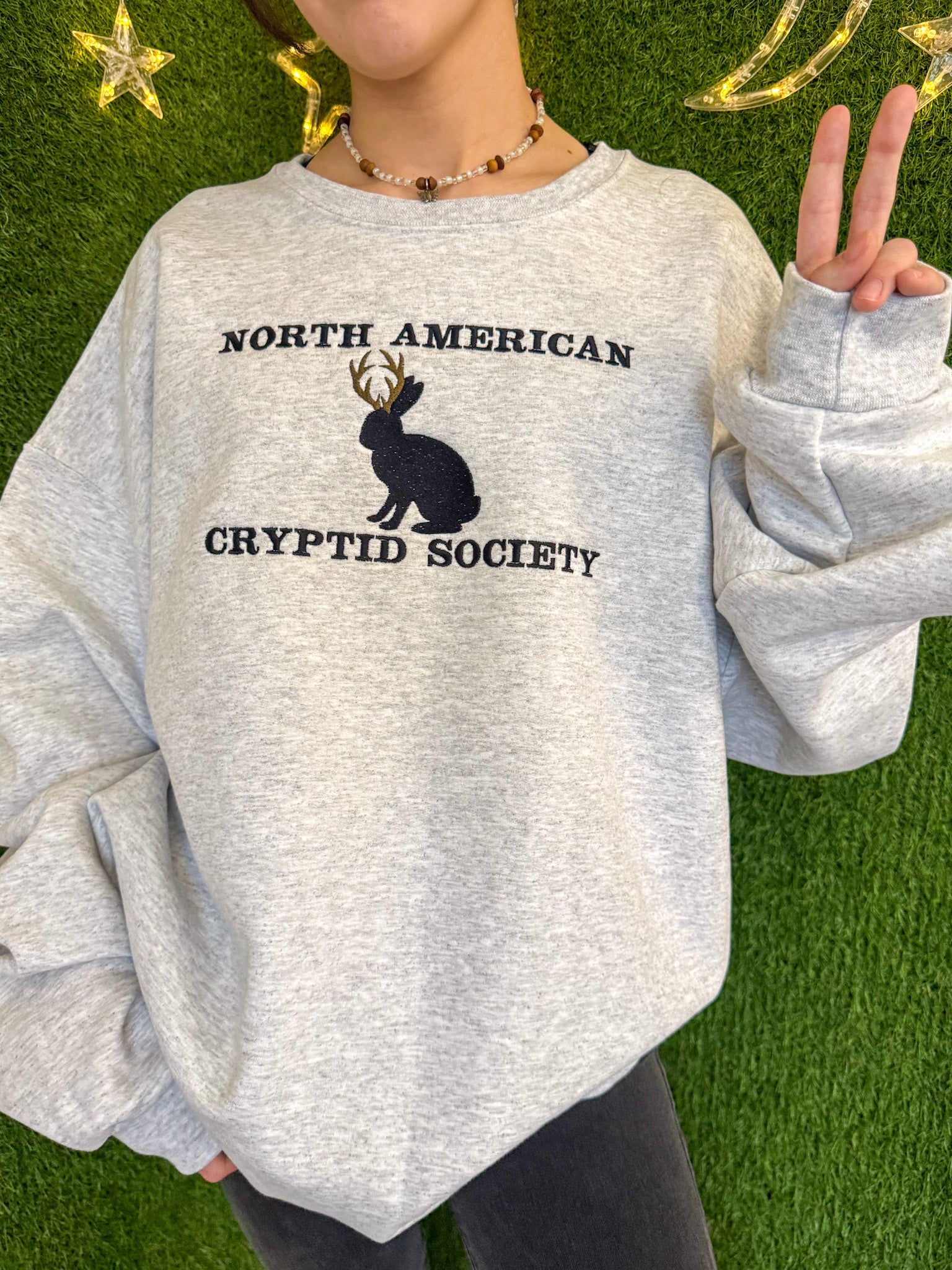 Support our small biz and the environment with our embroidered Jackalope Grey Crewneck. This sustainable and upcycled secondhand garment is a perfect addition to your slow fashion wardrobe. Look stylish while making an eco-conscious choice<3