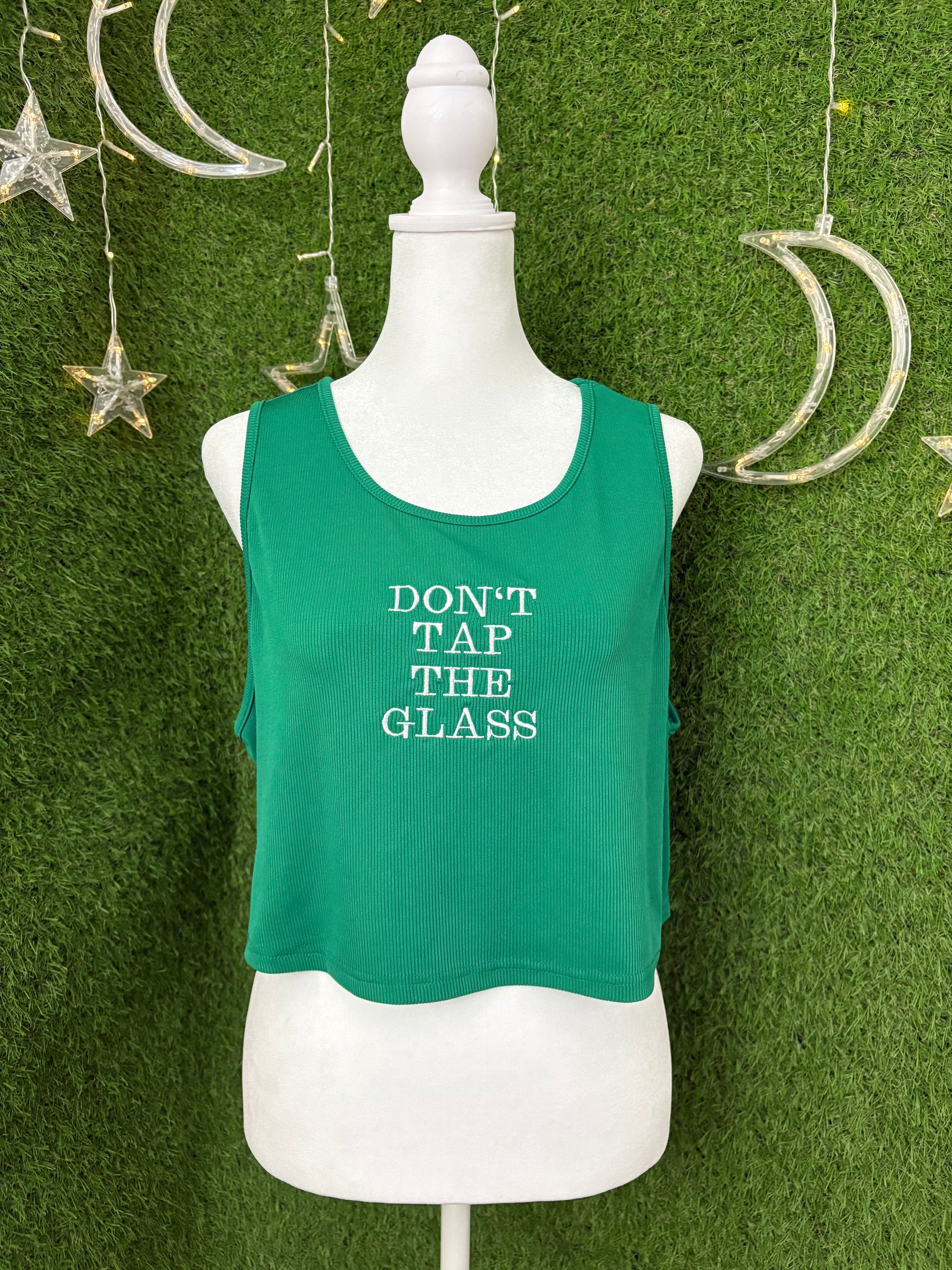 This green tank top features embroidered detials and is made from an upcycled garment, promoting sustainability and slow fashion for an eco-conscious wardrobe<3