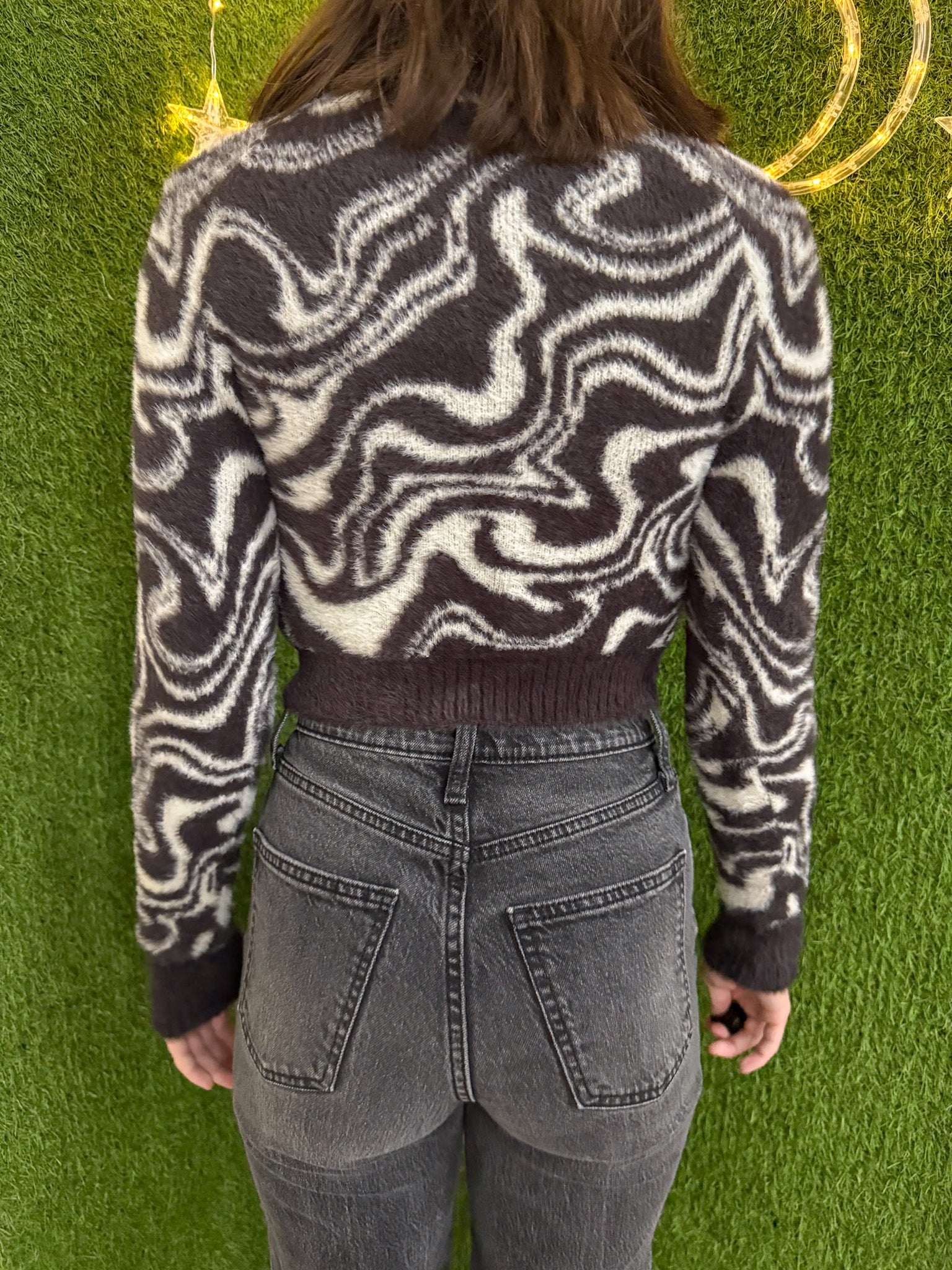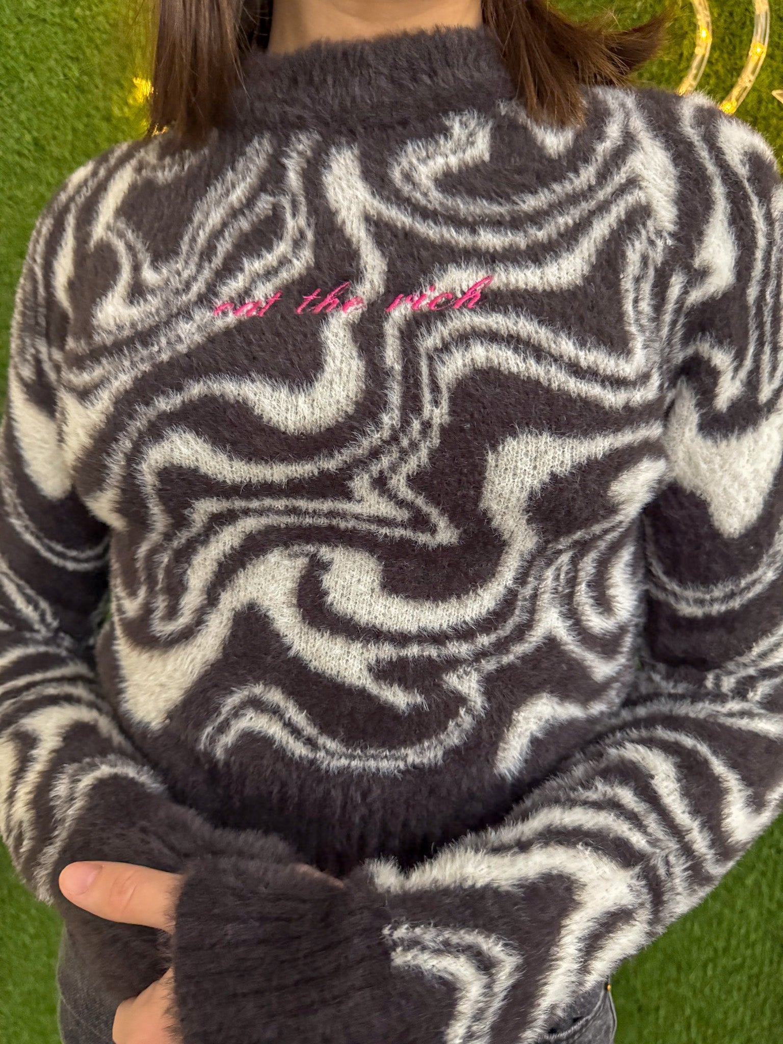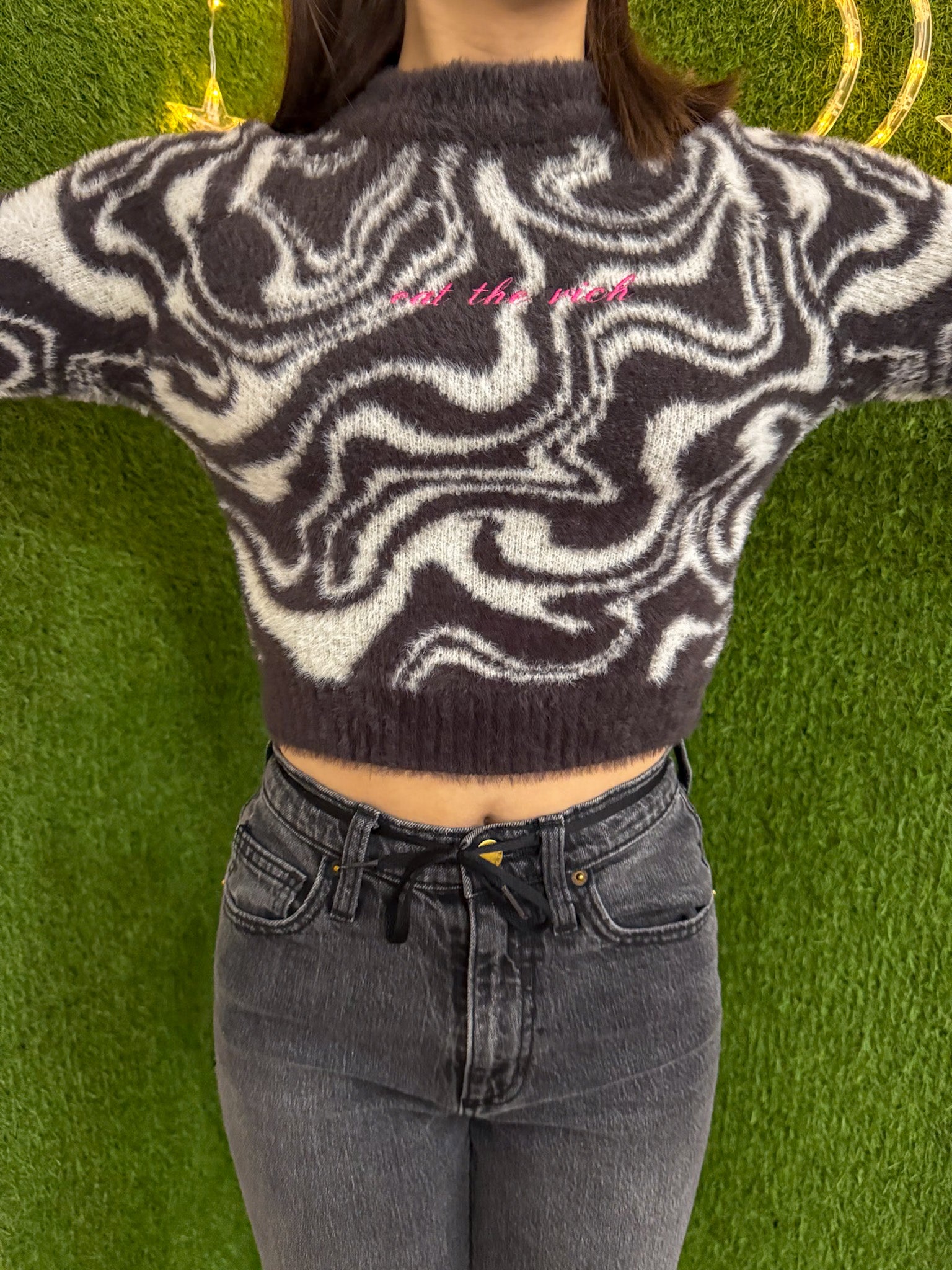 Eat the Rich Black and White Funky Cropped Sweater XS