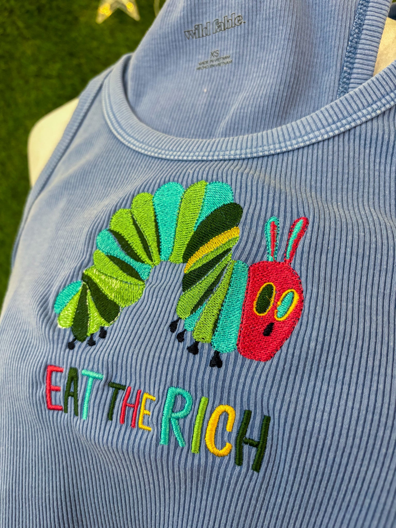Made from upcycled secondhand fabric, this embroidered tank top supports and promotes sustainable, slow fashion!!