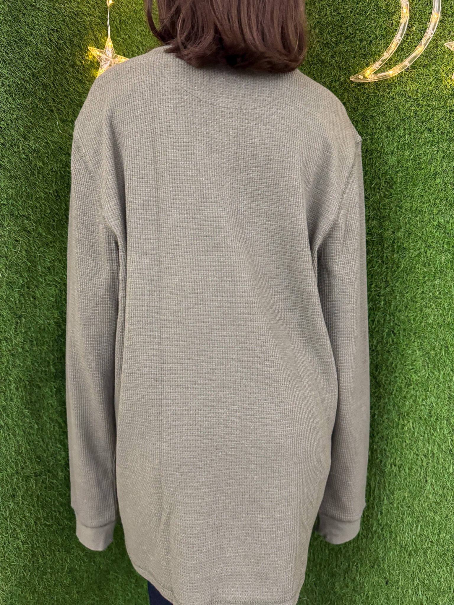 Eat the Rich Green Thermal Button Up Long Sleeve XL