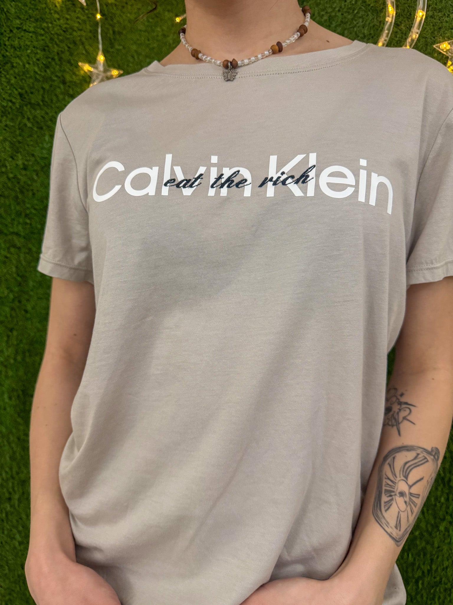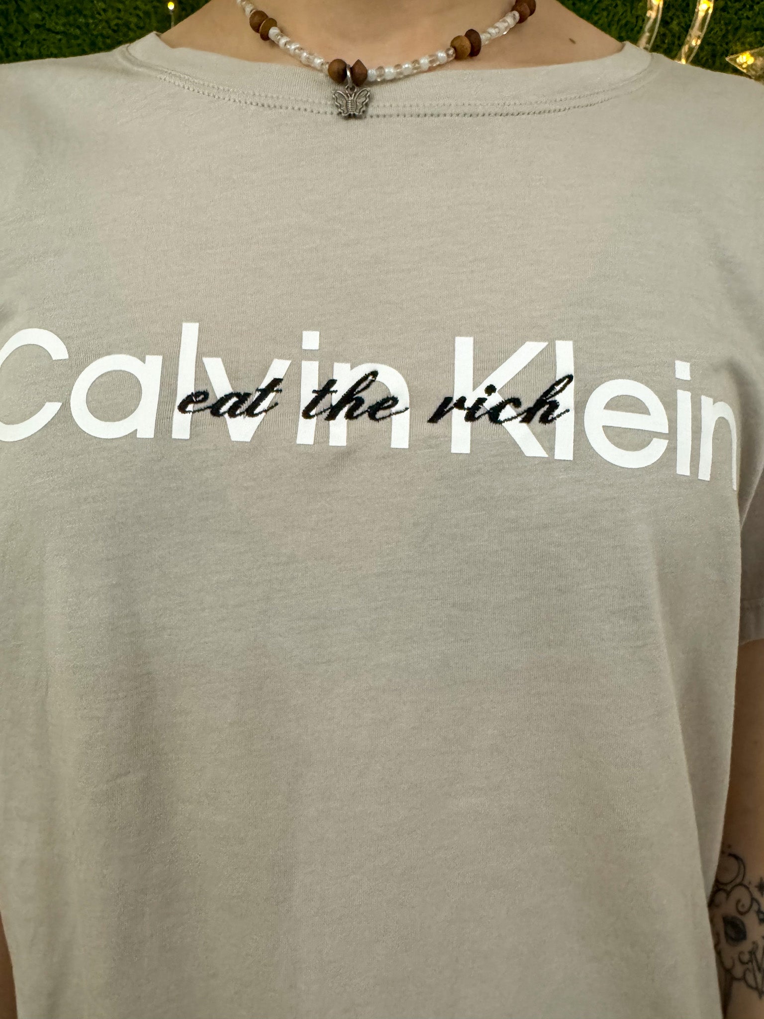 Support sustainable fashion with our embroidered Eat the Rich Khaki T-Shirt, upcycled from a secondhand garment. Show your love for small businesses while also being environmentally conscious. Slow fashion never looked so good!