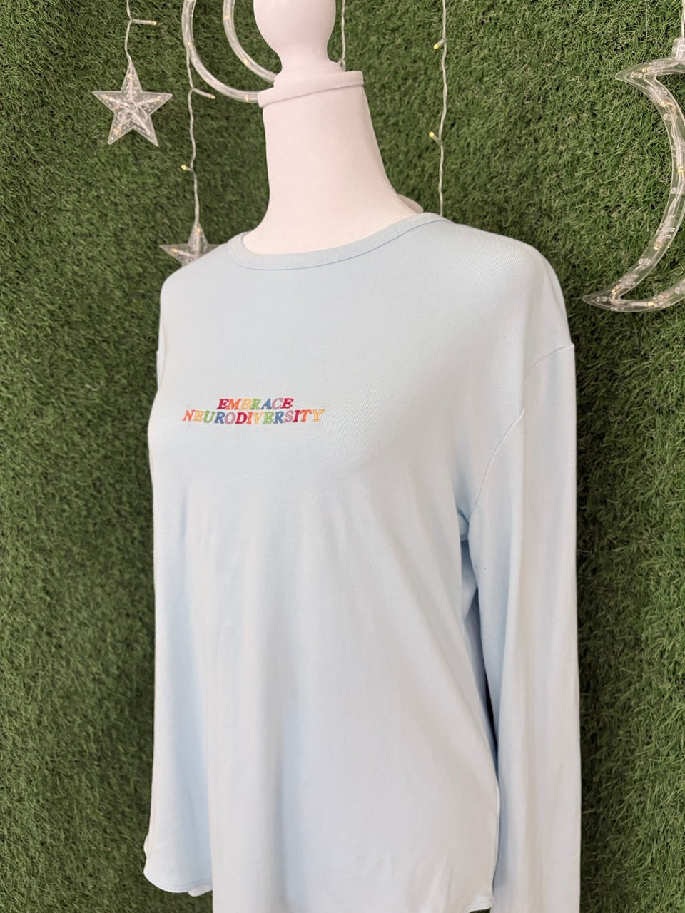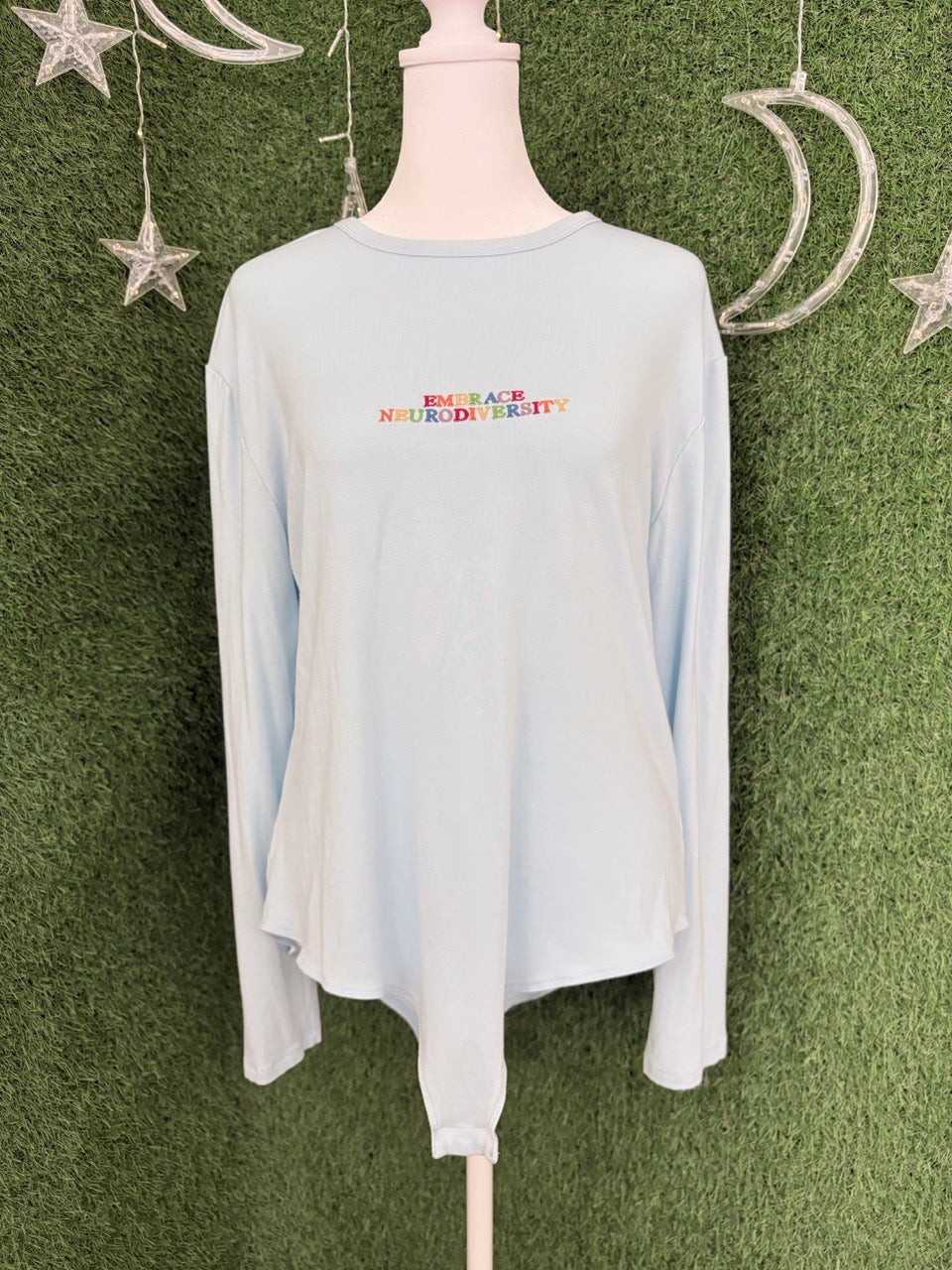 Made with care for the planet, this comfy blue bodysuit celebrates neurodiversity in style. Embrace slow fashion and spread joy with every wear!
