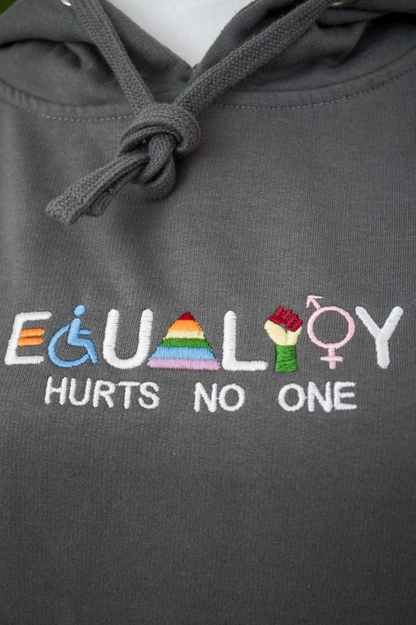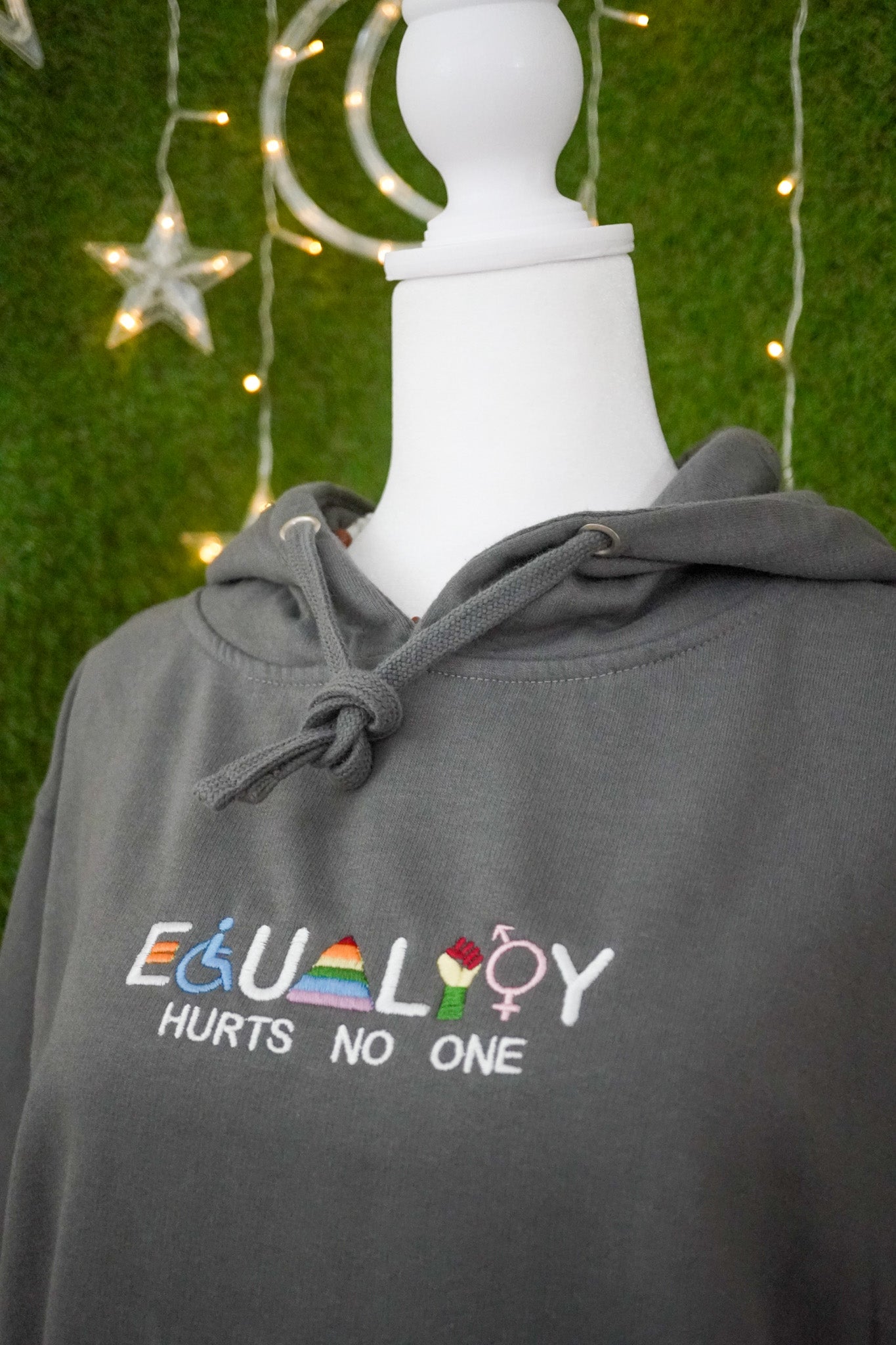 This upcycled grey hoodie, embroidered with care, supports small businesses and slow fashion. Made from a secondhand garment, it offers a sustainable choice that promotes equality and reduces waste!!