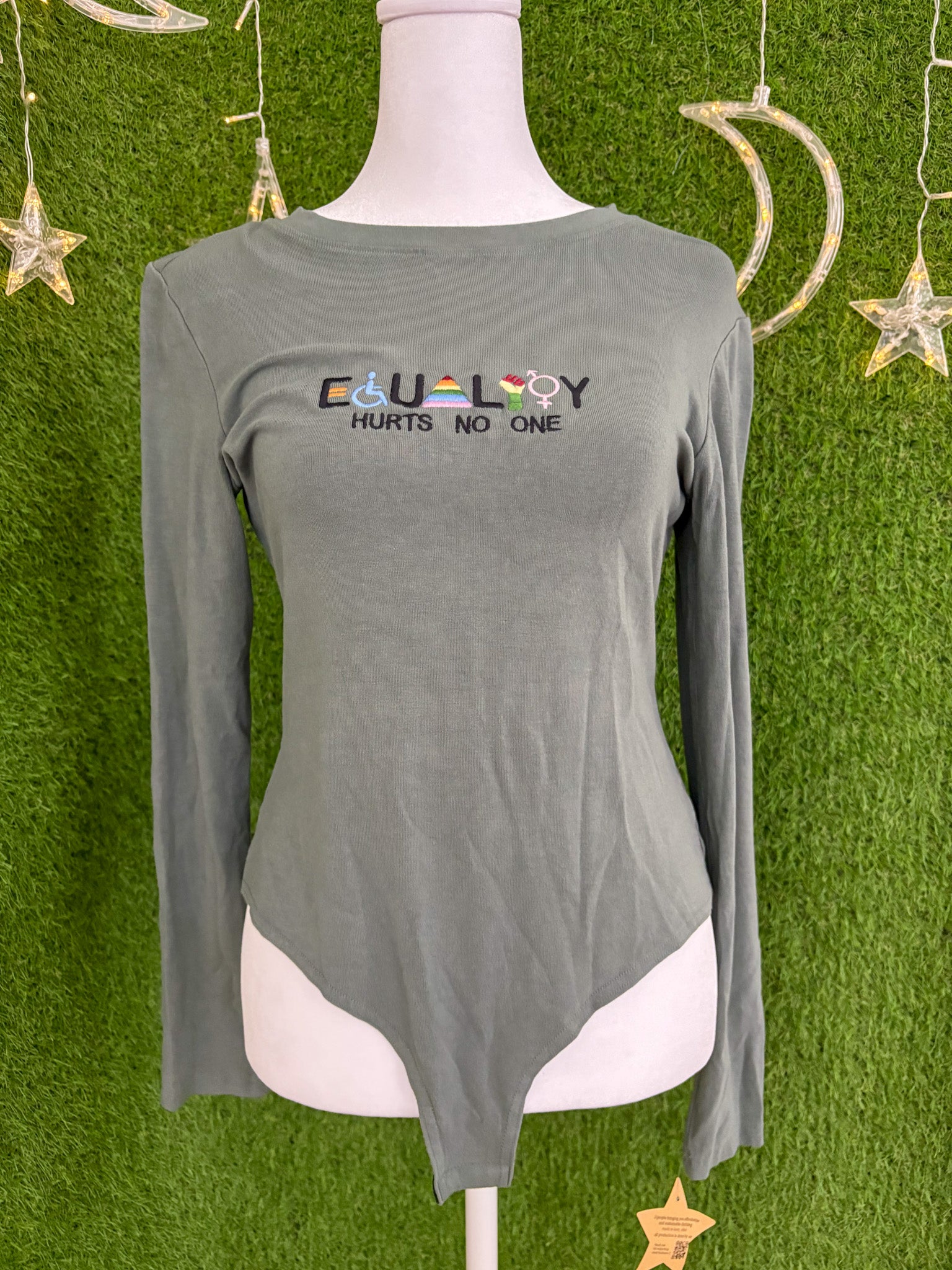 This embroidered long sleeve bodysuit is made from upcycled, secondhand fabric, supporting slow fashion and our small business with a sustainable touch<3