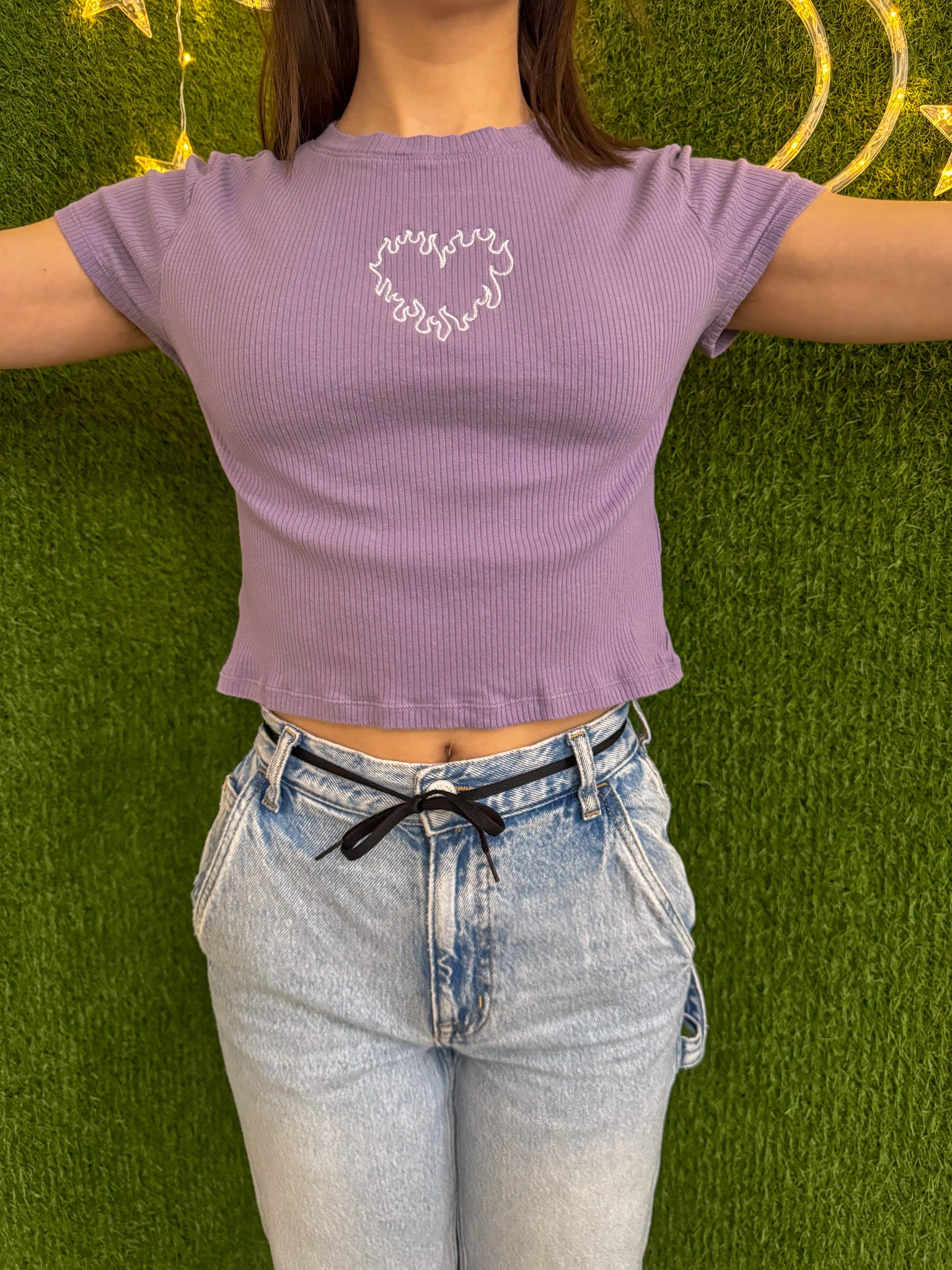 Flame Heart Purple Baby Tee M