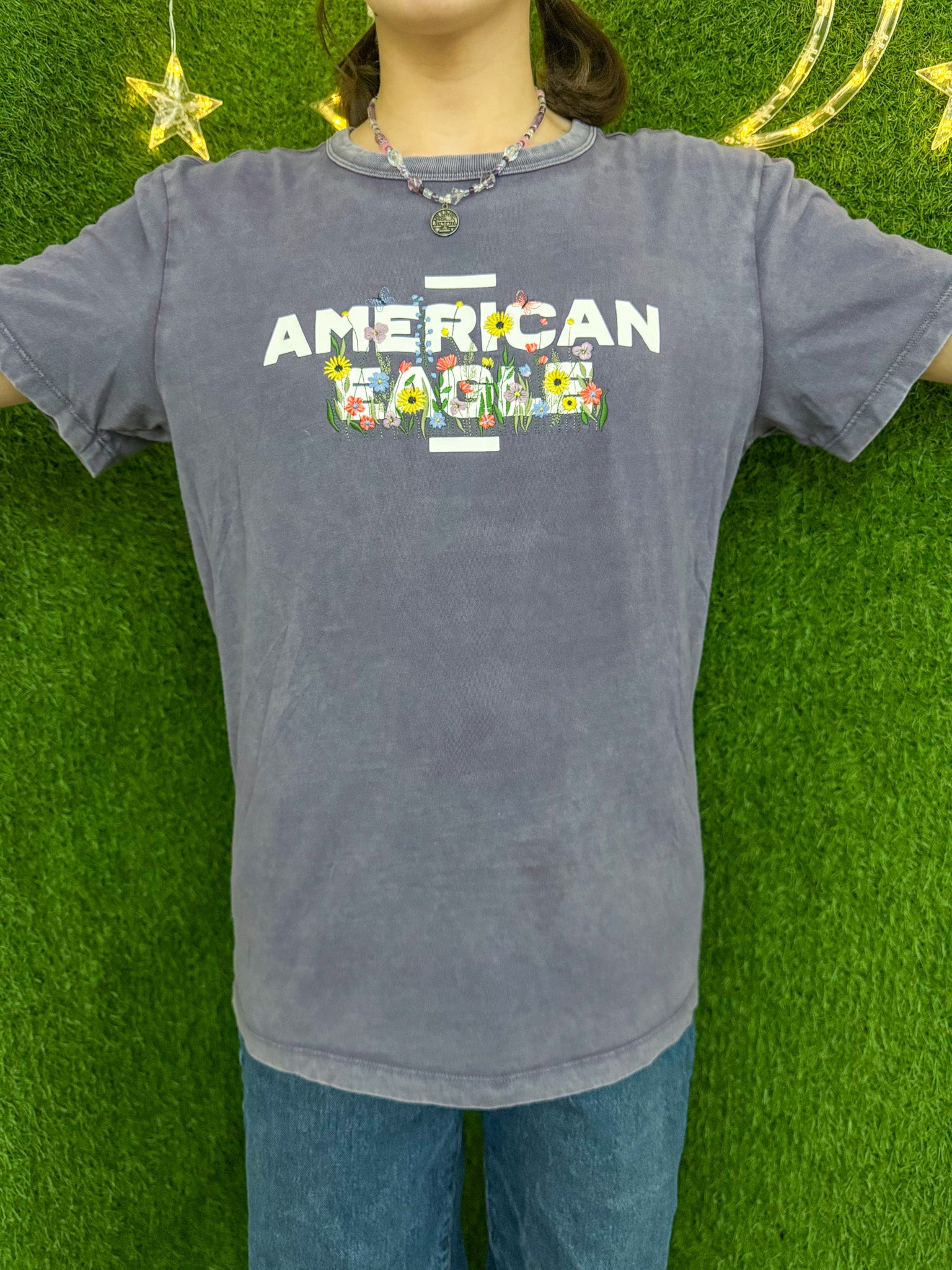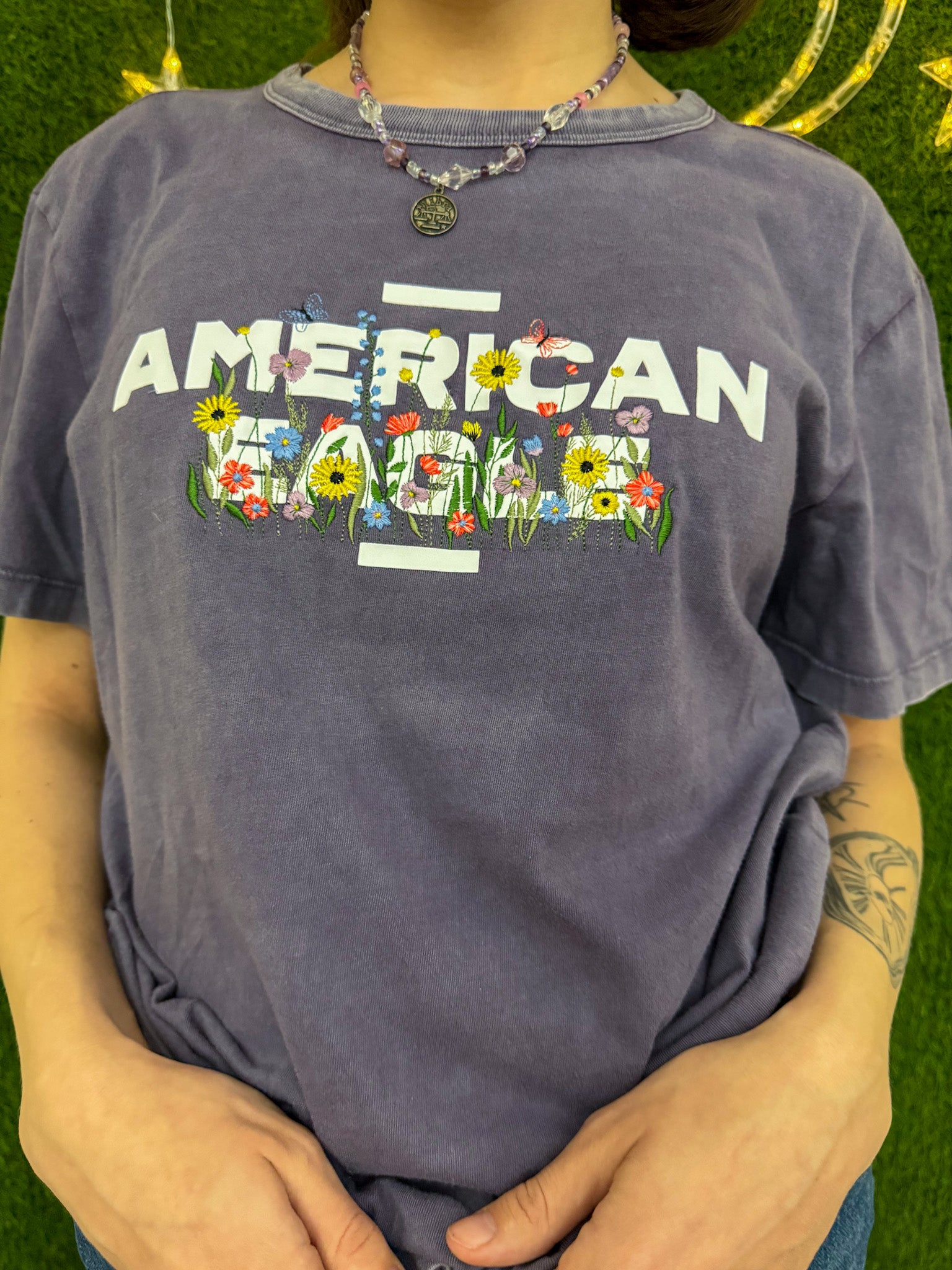 Support our small biz and the planet with this upcycled embroidered Floral American Eagle Purple T-Shirt. Not only is it a sustainable choice, but also a stylish and unique piece of slow fashion. Get yours now and make a positive impact!