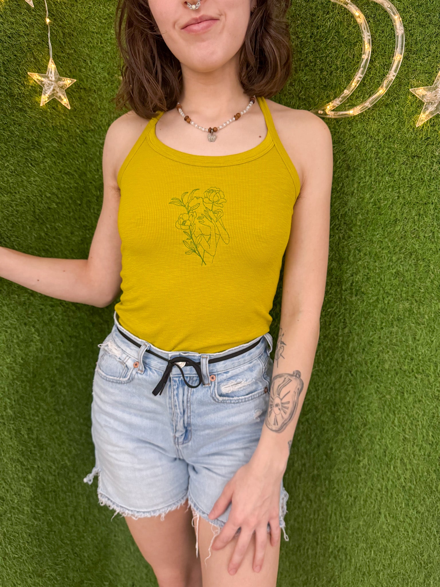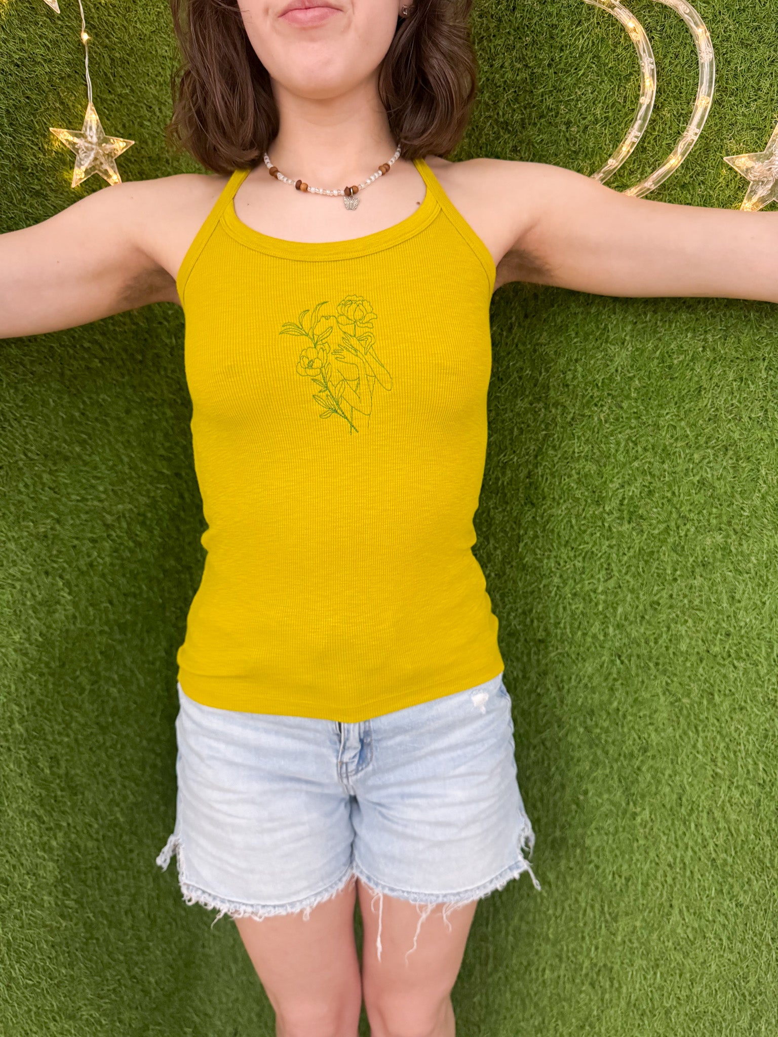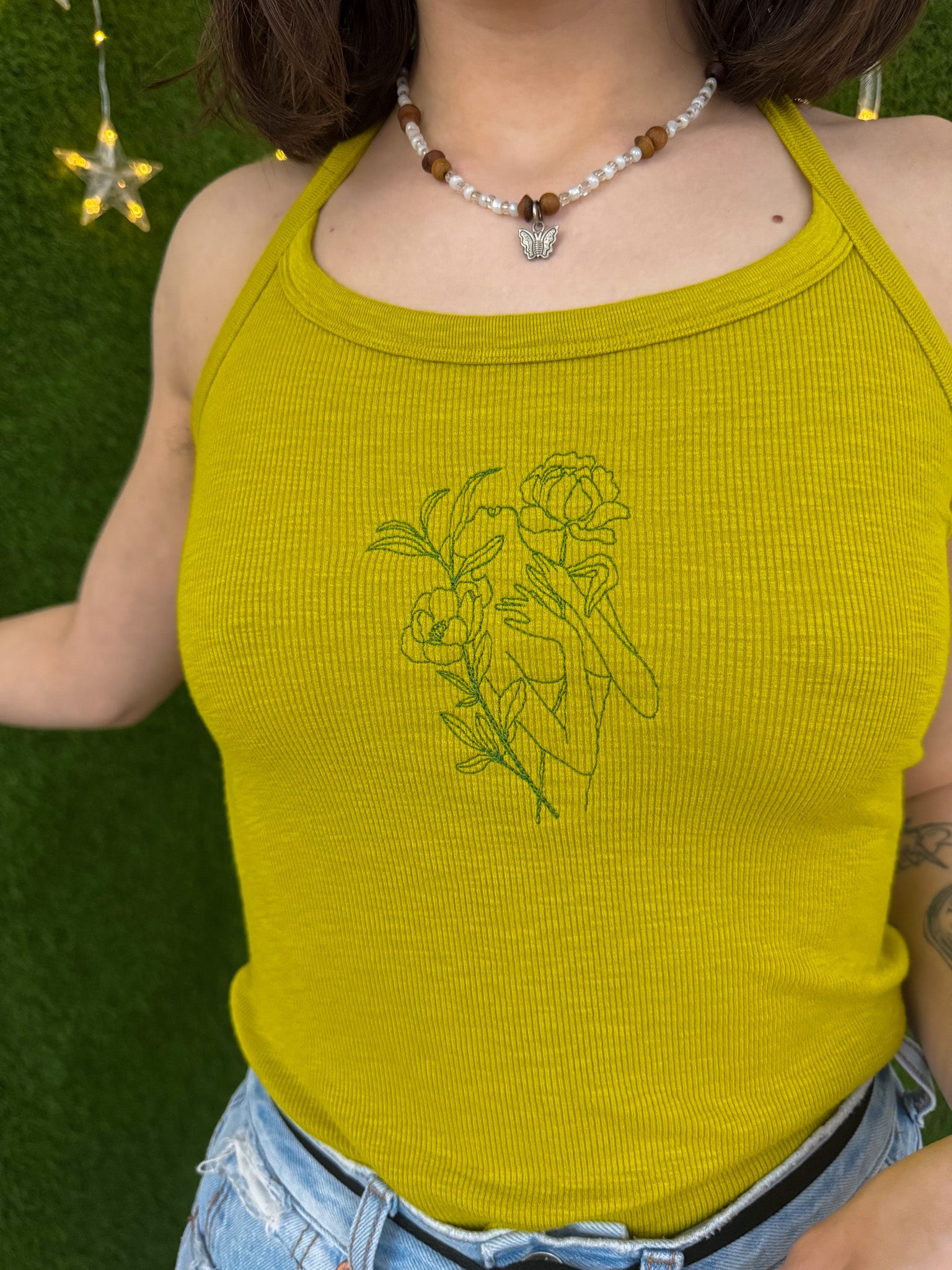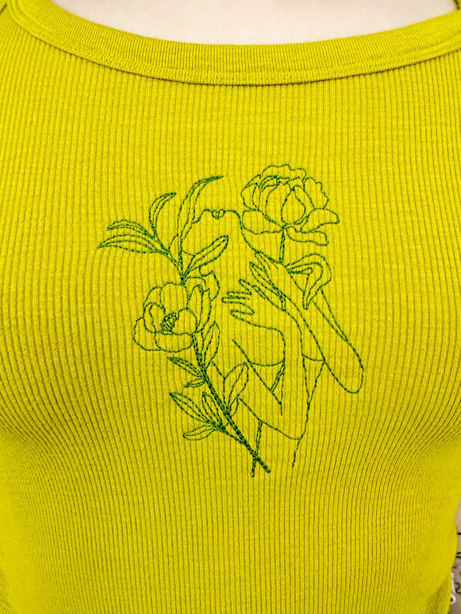 Stay stylish and sustainable with our Floral Woman Neck Tied Tank. Embroidered with care, this upcycled secondhand garment supports our small biz and promotes slow fashion. Choose eco-friendly fashion without compromising on style<3