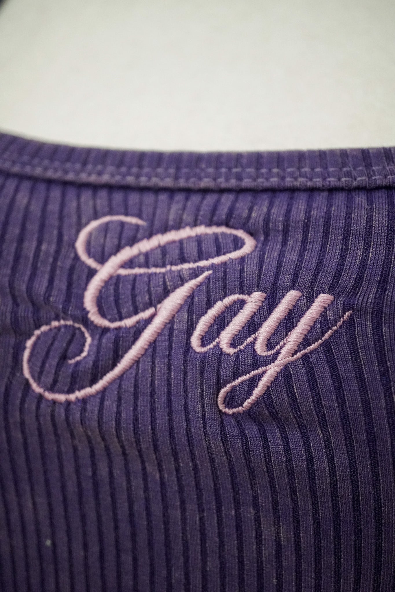 Embrace sustainability with this embroidered Gay Purple Tank Top, crafted from upcycled secondhand top! Support small businesses and slow fashion with this eco-friendly, unique piece<3