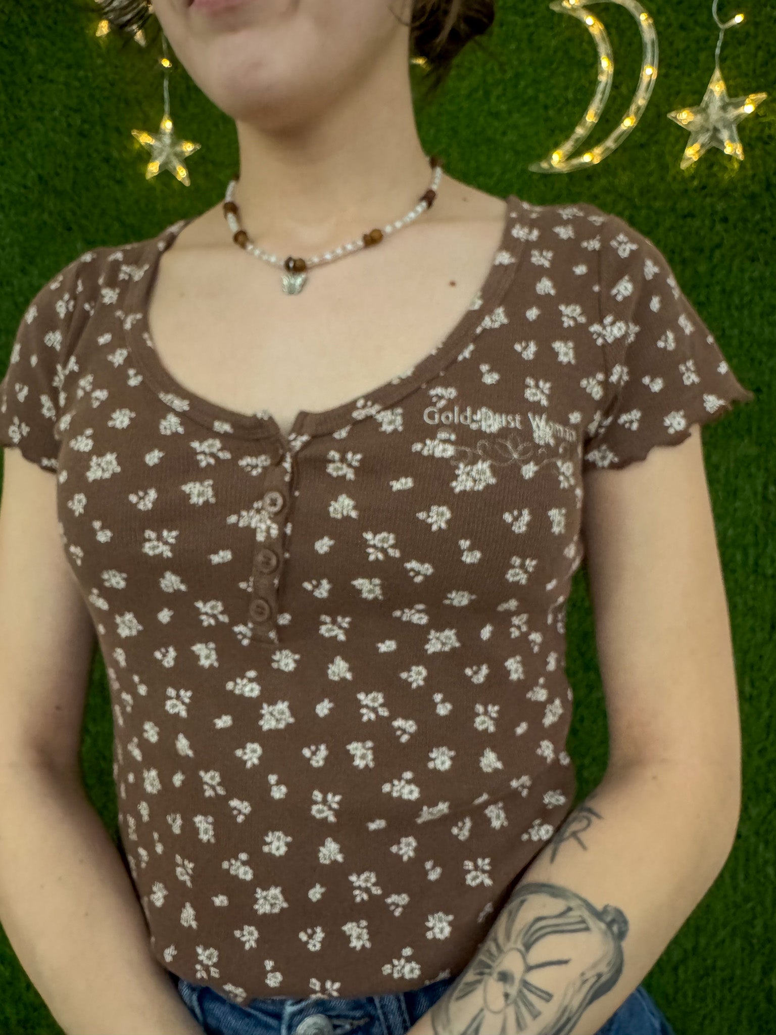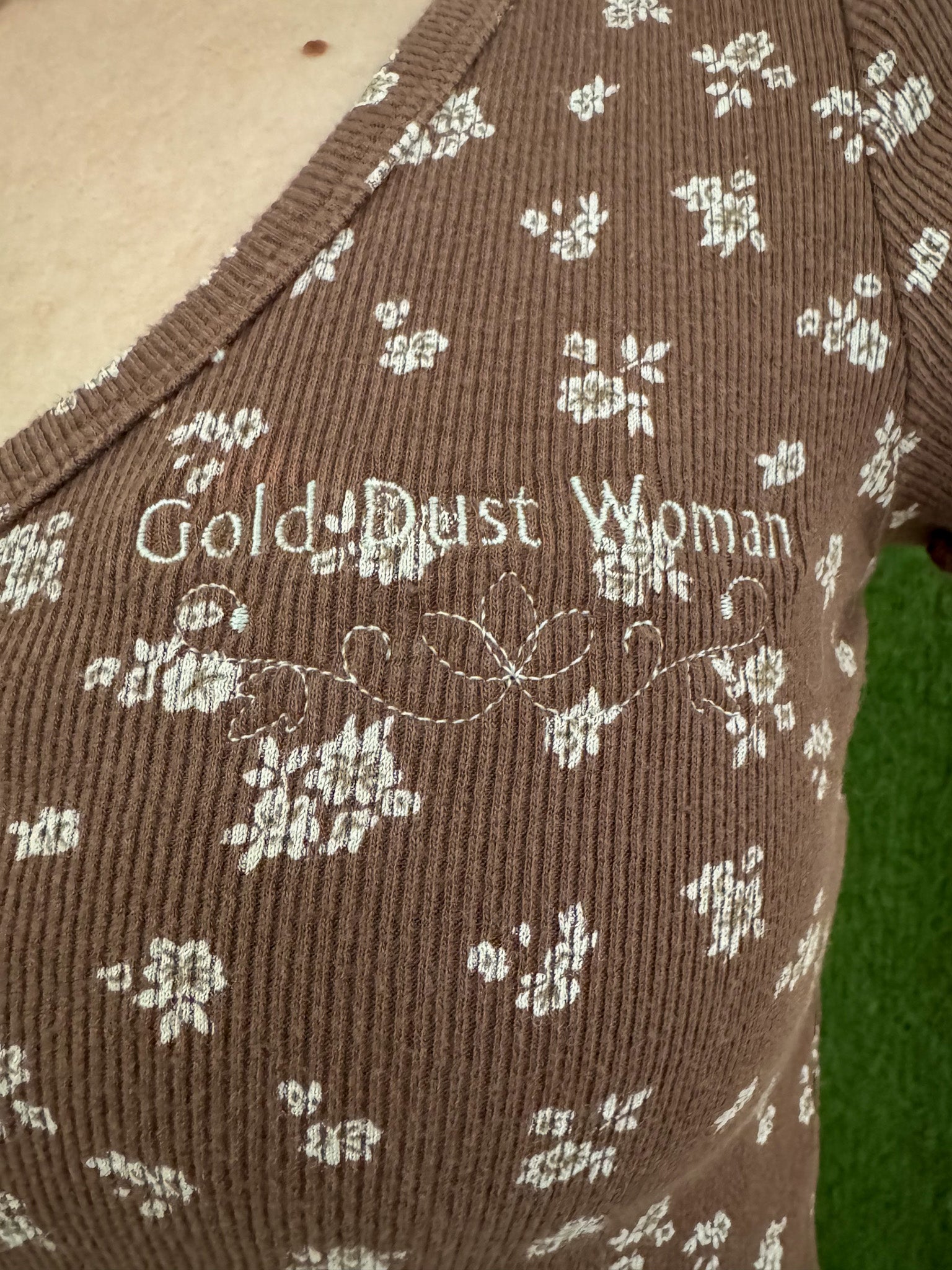 Gold Dust Woman Brown Floral Baby Tee S