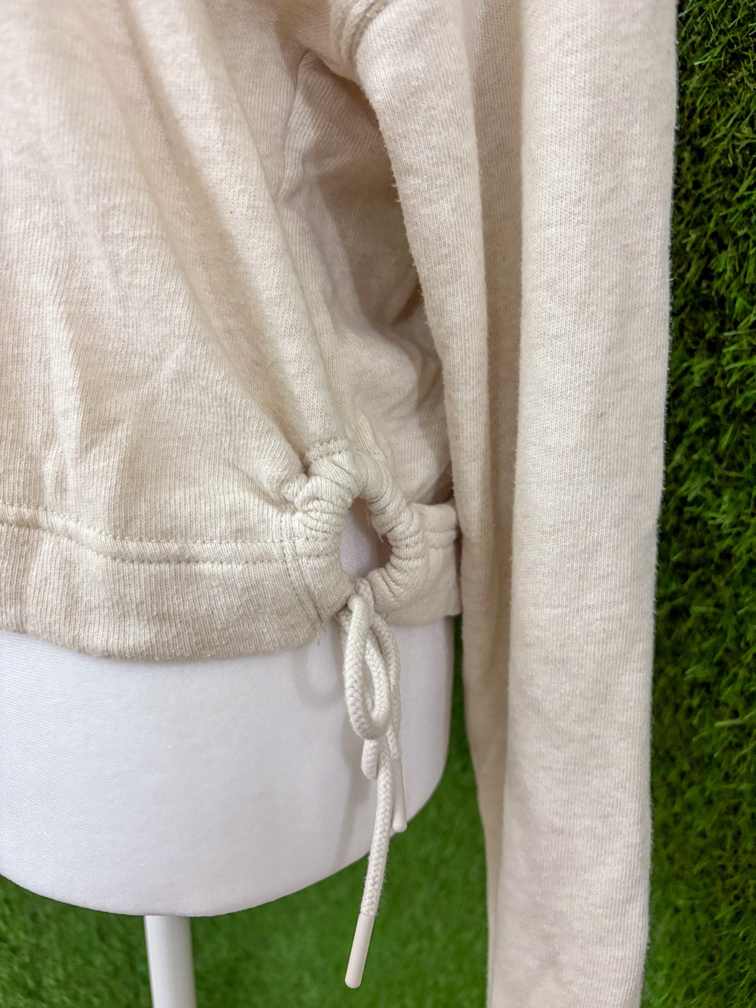 The Good Luck Babe Cropped Longsleeve features embroidered details and cinched sides, made from upcycled, secondhand materials. Support small businesses and embrace sustainable, slow fashion with this eco-friendly piece<3