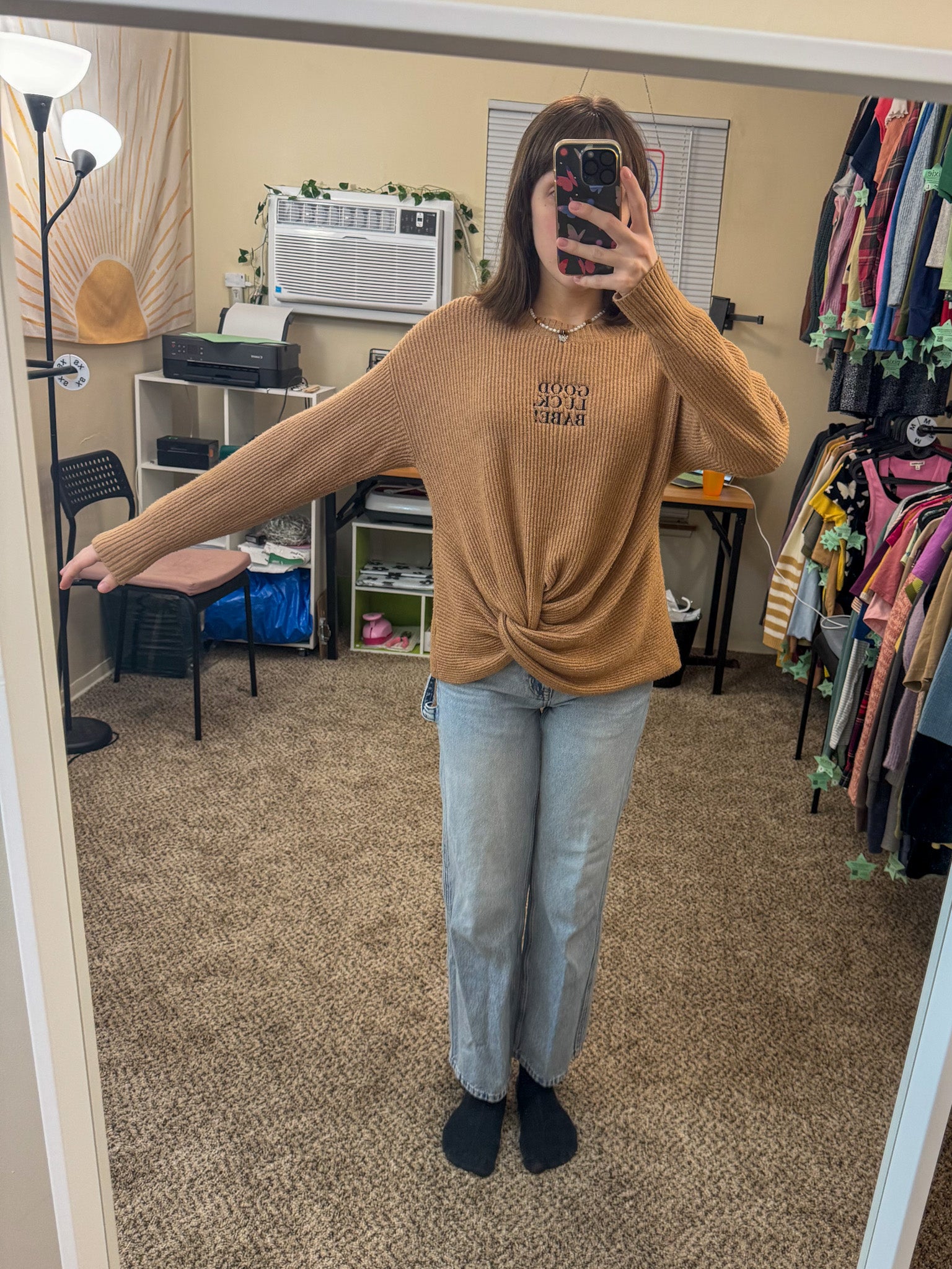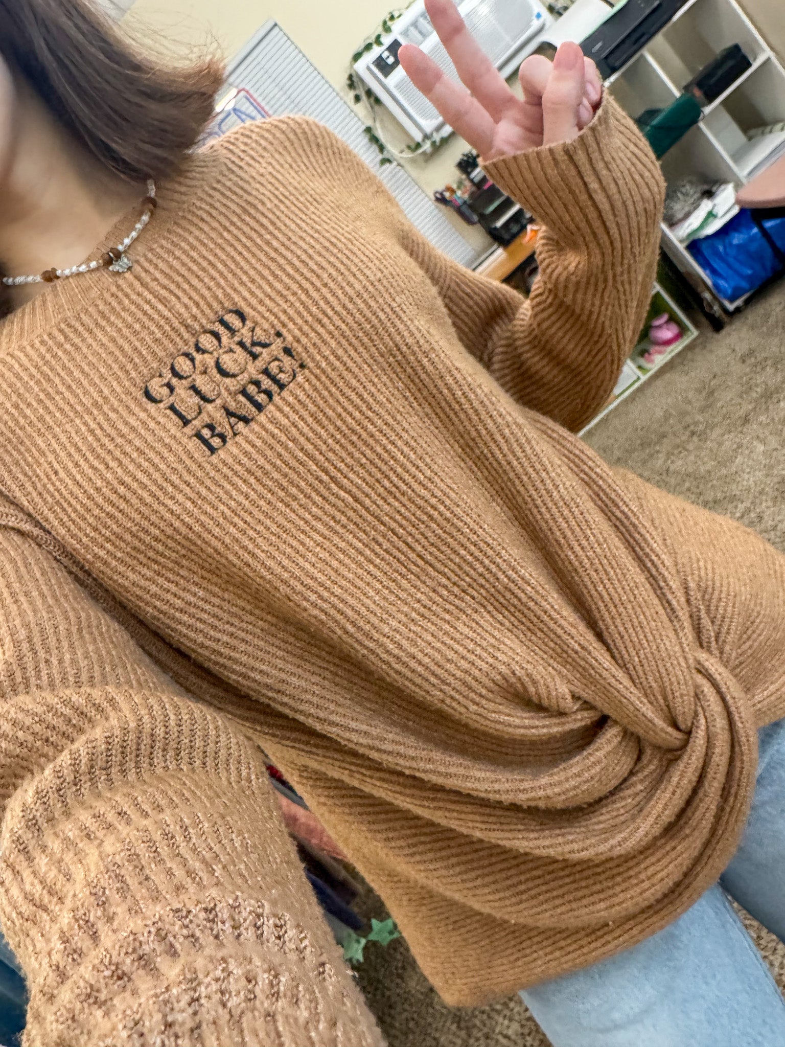 Good Luck Babe Twist Front Sweater L