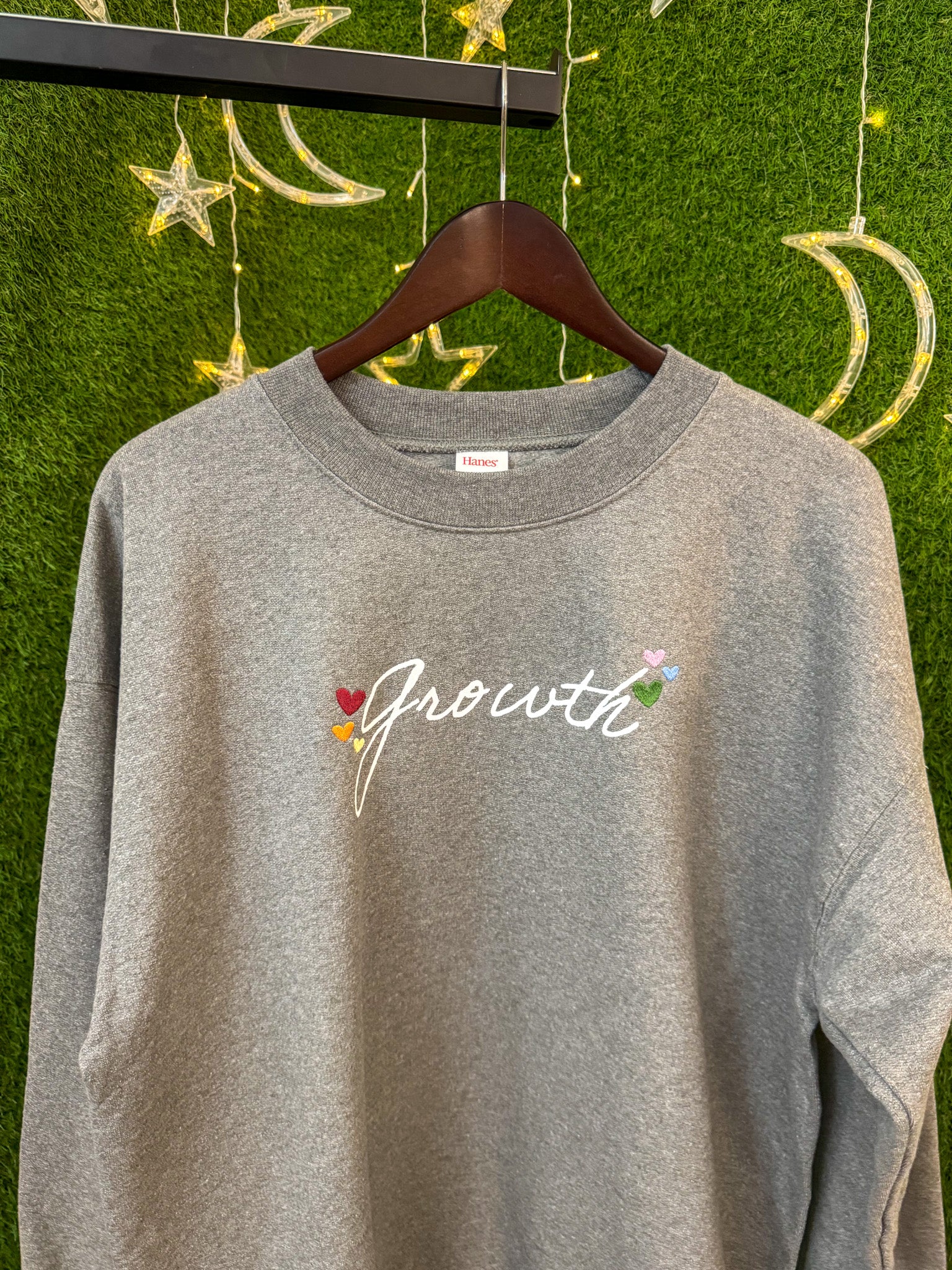 Embrace sustainable style with our Growth Grey Crewneck. This thoughtfully upcycled secondhand garment features beautiful embroidery, giving new life to pre-loved fashion. By choosing this piece, you're supporting our small business while participating in the slow fashion movement. This crewneck represents a step toward more conscious clothing choices without sacrificing comfort or style!