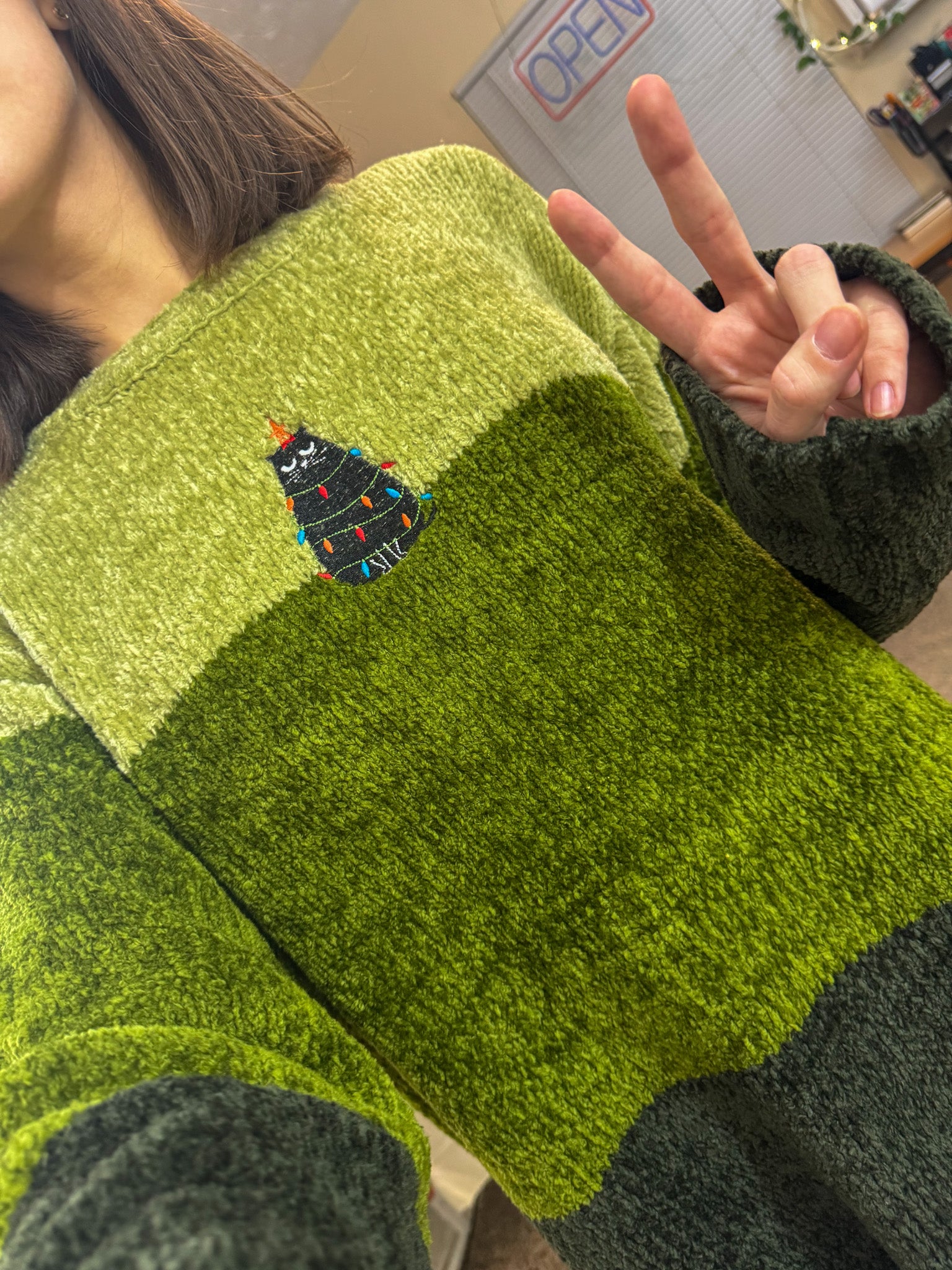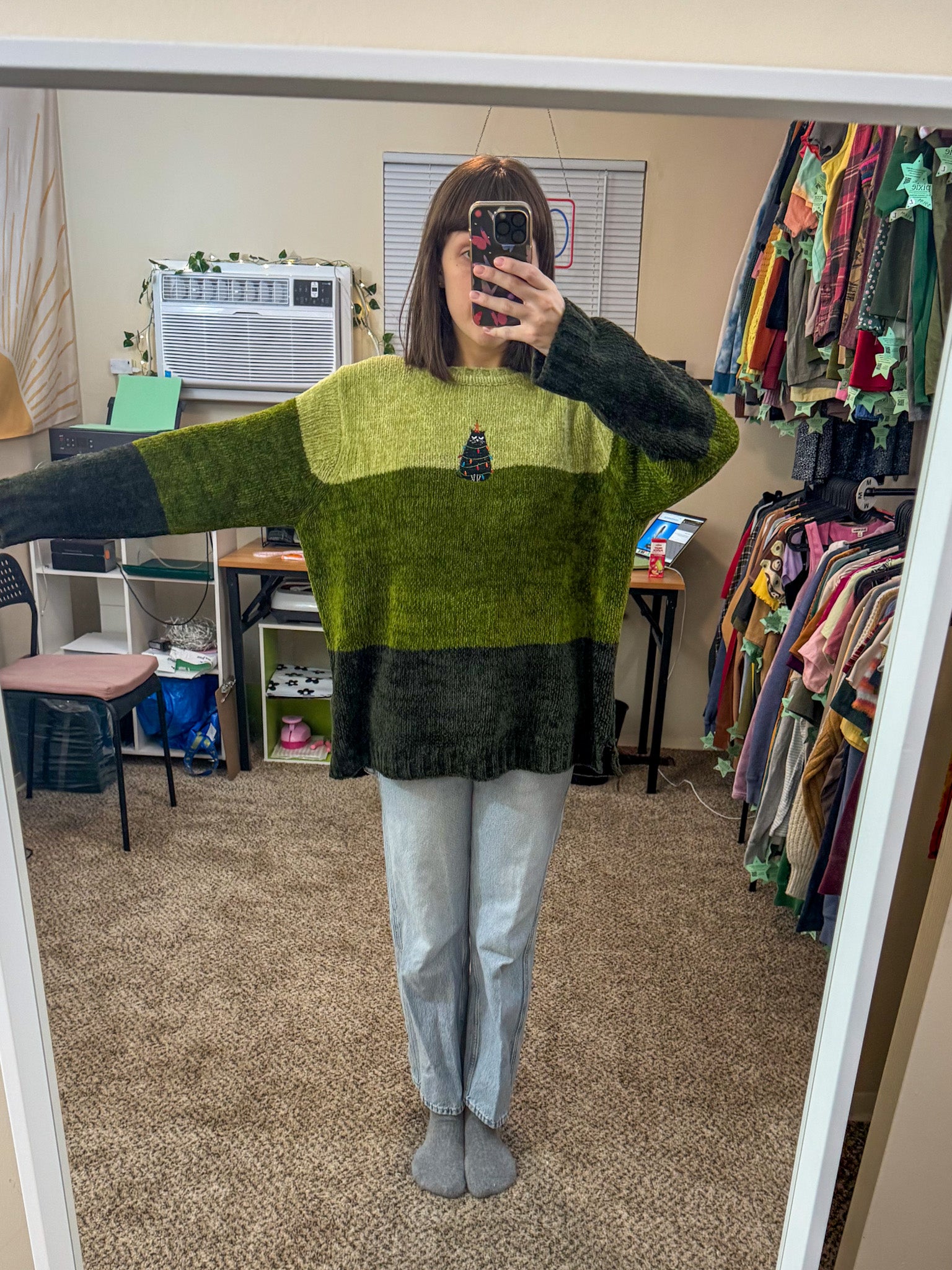 Grumpy Kitty Green Striped Sweater XL