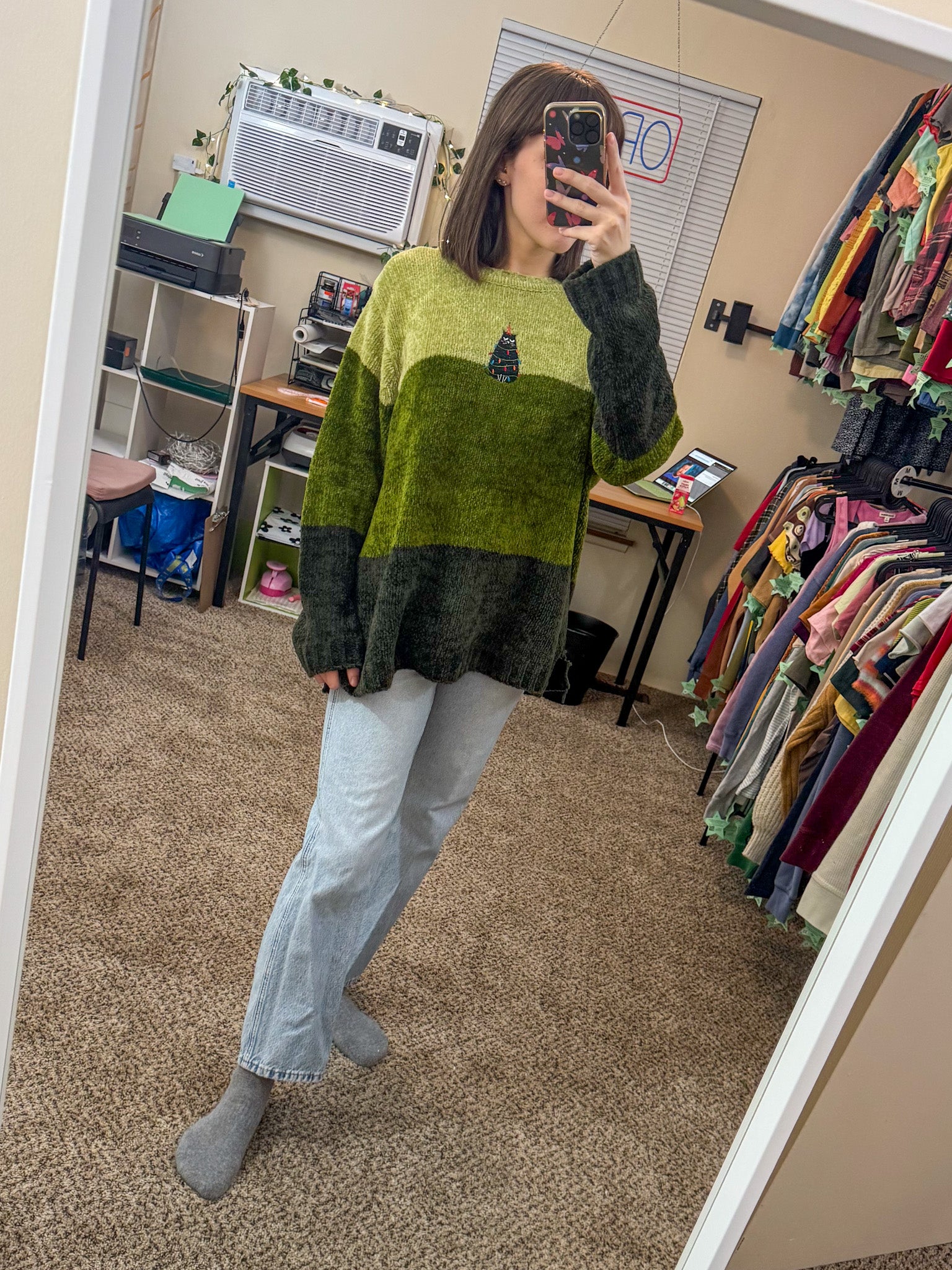 Introducing the Grumpy Kitty Green Striped Sweater, made with love and care by small biz. Each sweater is hand-embroidered and upcycled from discarded garments, making it a sustainable and slow fashion choice. Support our cause and rock this unique and cute sweater!