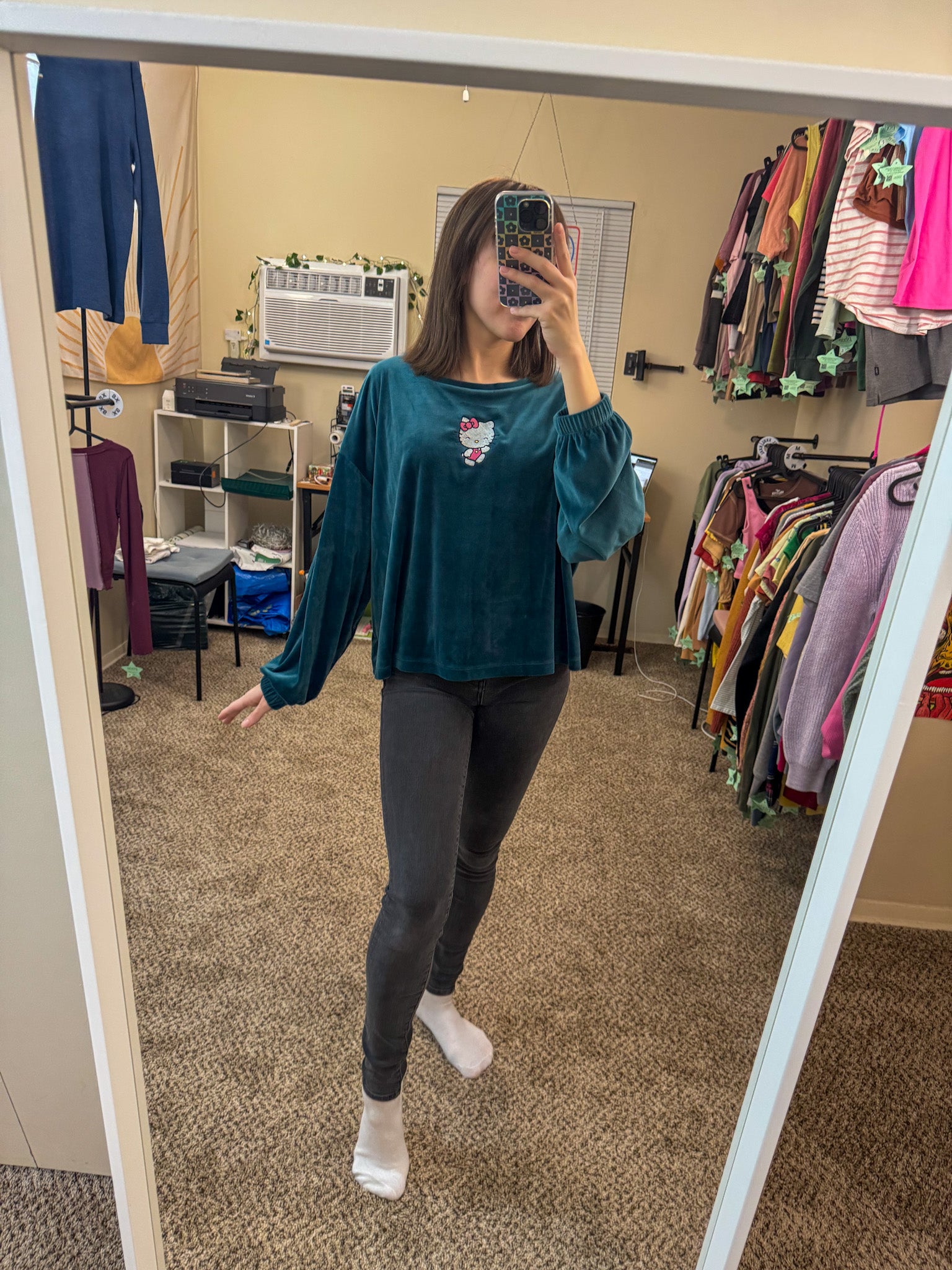 This velvet long sleeve is embroidered by us, making each piece unique. Support our small biz and sustainable fashion by choosing this upcycled, secondhand garment. Slow fashion never looked so cute!