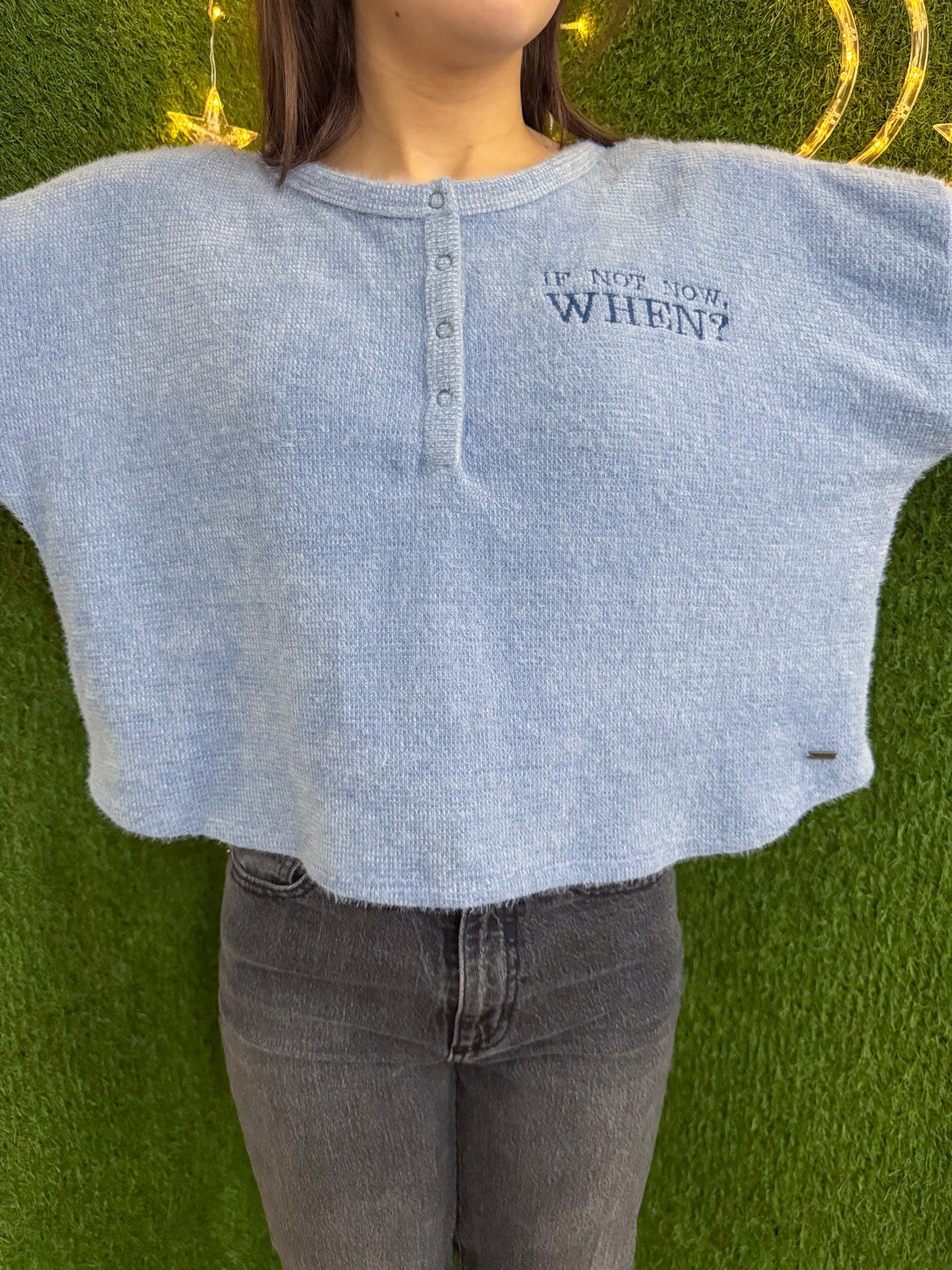 If Not Now When? Blue Cropped Long Sleeve L