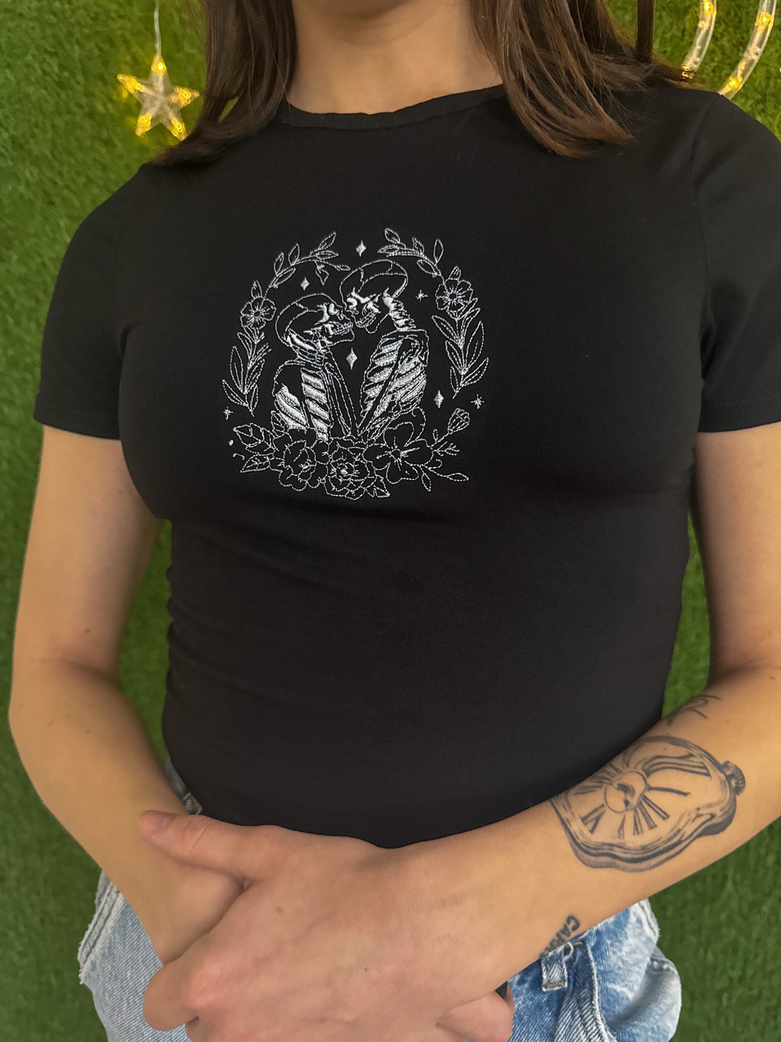 Introducing the Infinite Love Black Baby Tee - the perfect blend of sustainability and style. This tee is upcycled and embroidered with love, supporting our small biz and promoting slow fashion. Join the movement and show your love for the planet with this secondhand garment!
