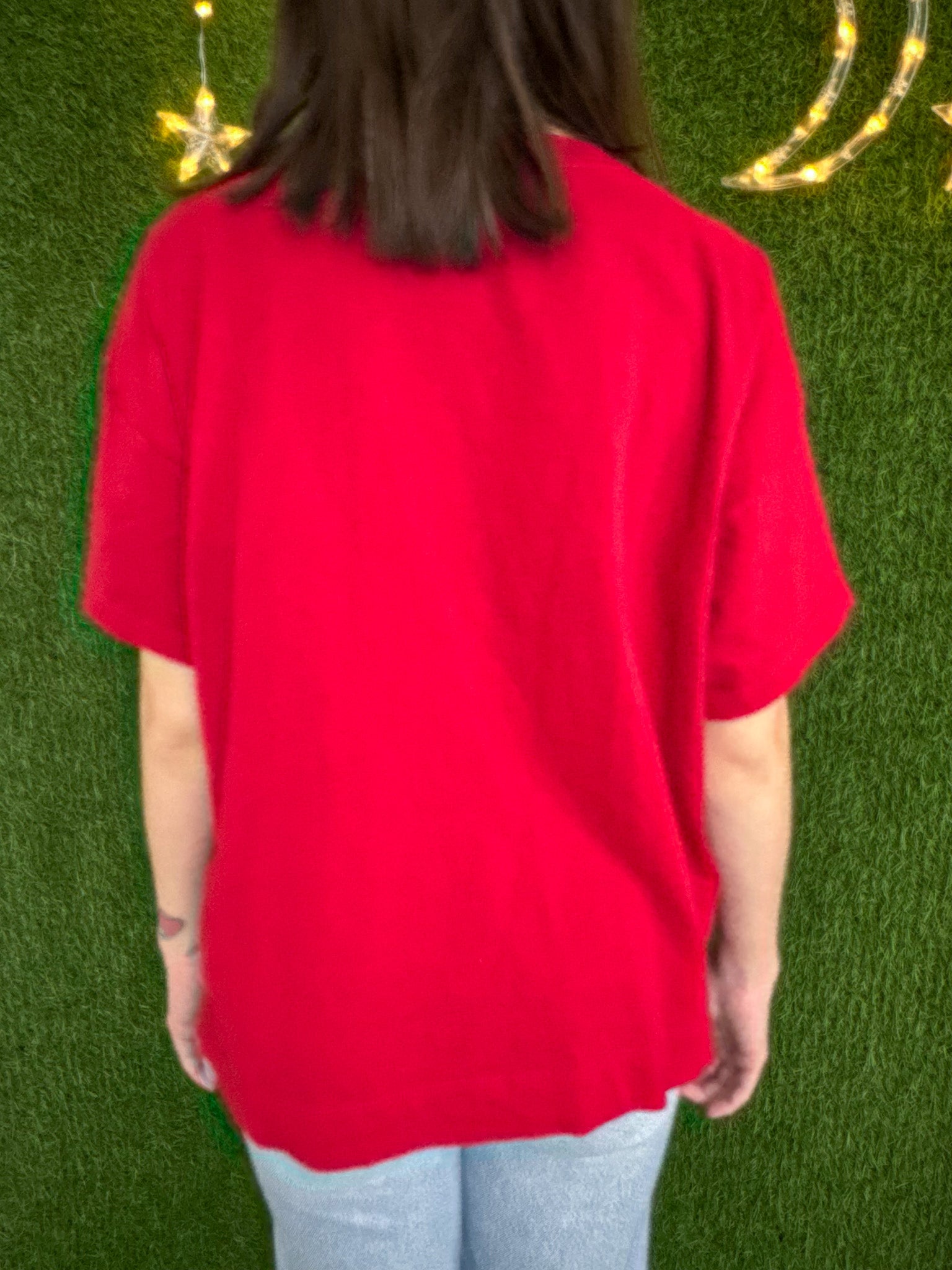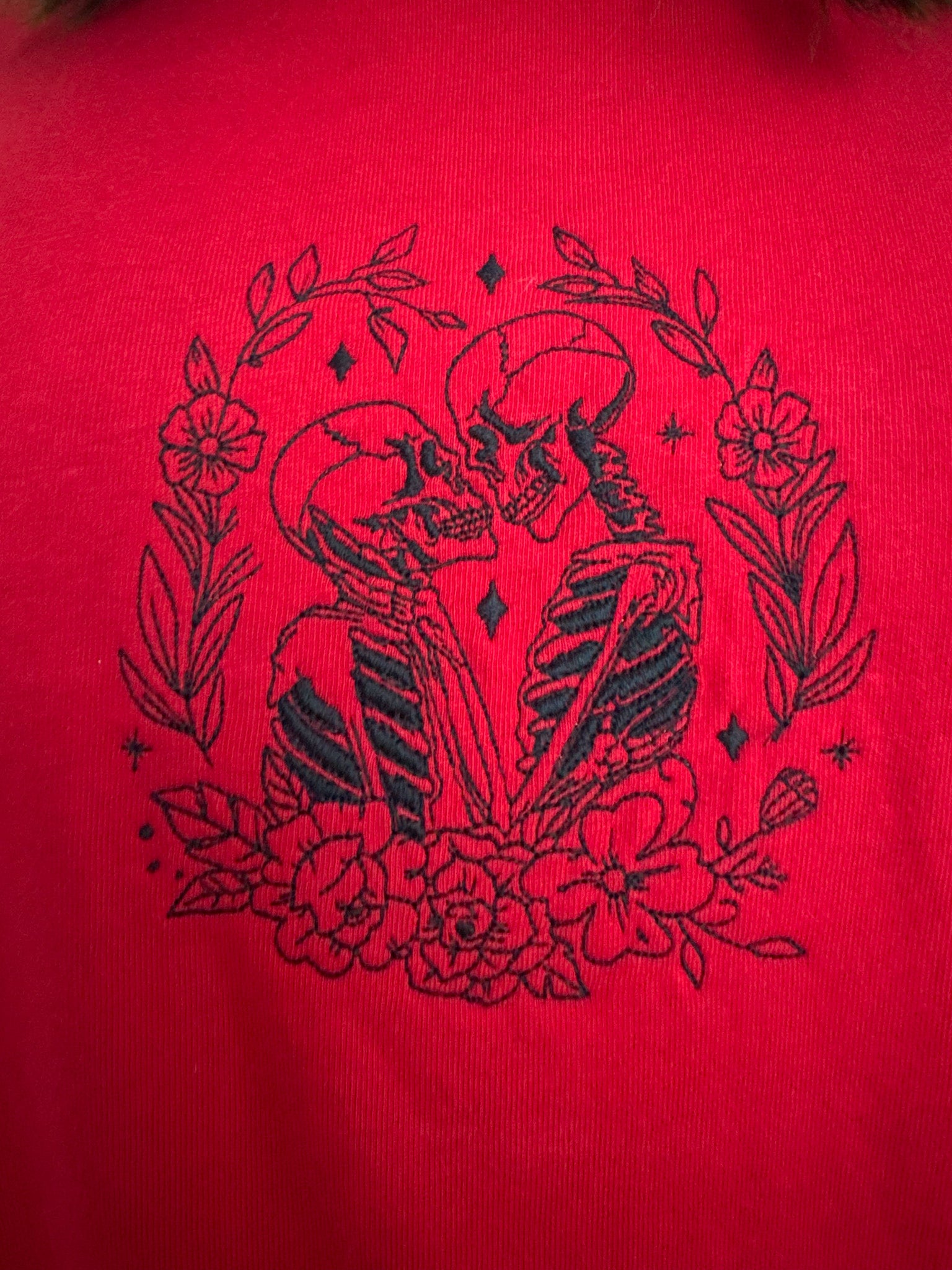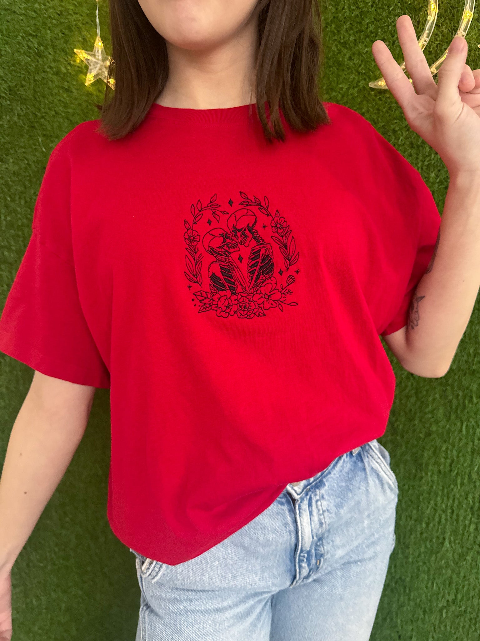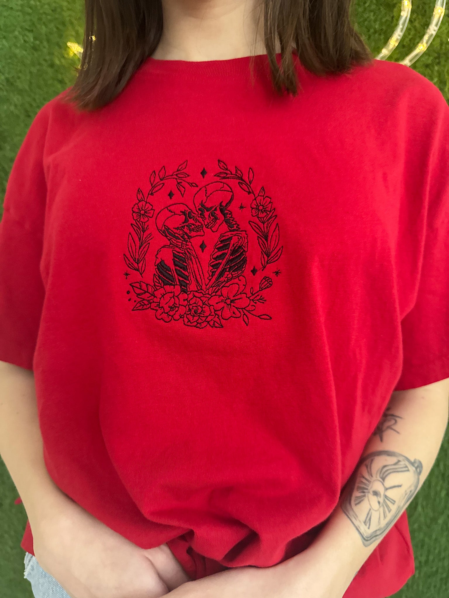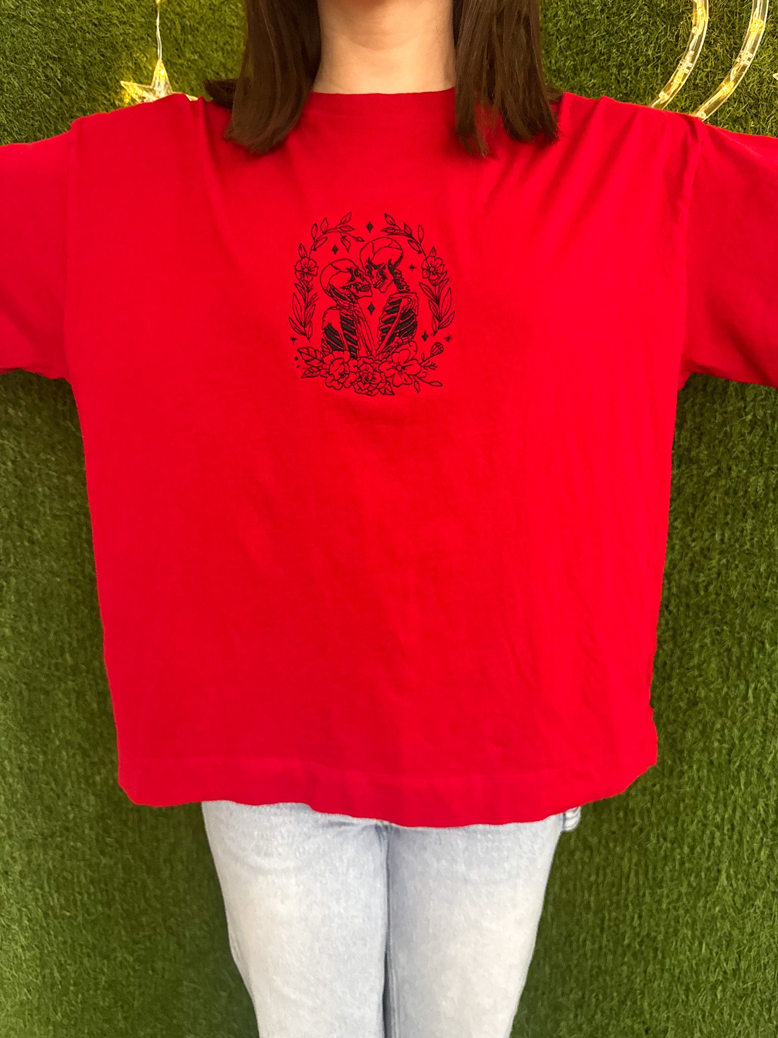 Spread positivity and style with our Infinite Love Red T-Shirt. It's not just a fashion statement, but a reflection of our commitment to sustainability. Made from an upcycled secondhand garment and embroidered with love, this slow fashion piece also supports our small biz!