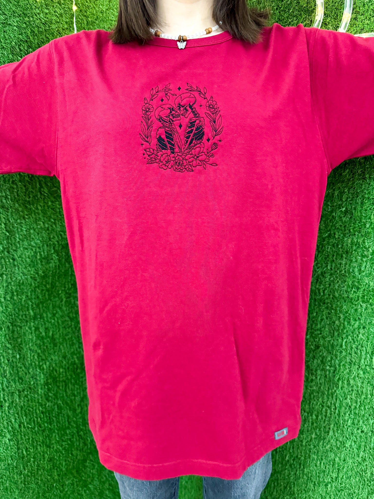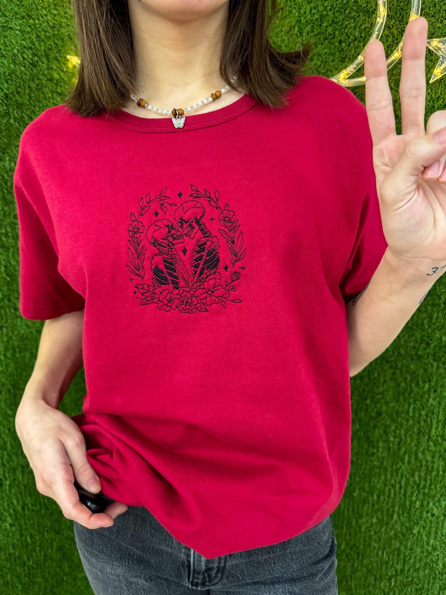 Get all the love with this Infinite Love Red Tee. It's not just embroidered, it's made to support our small biz. Upcycled from a secondhand garment, this sustainable and slow fashion piece will make you look good and feel good!